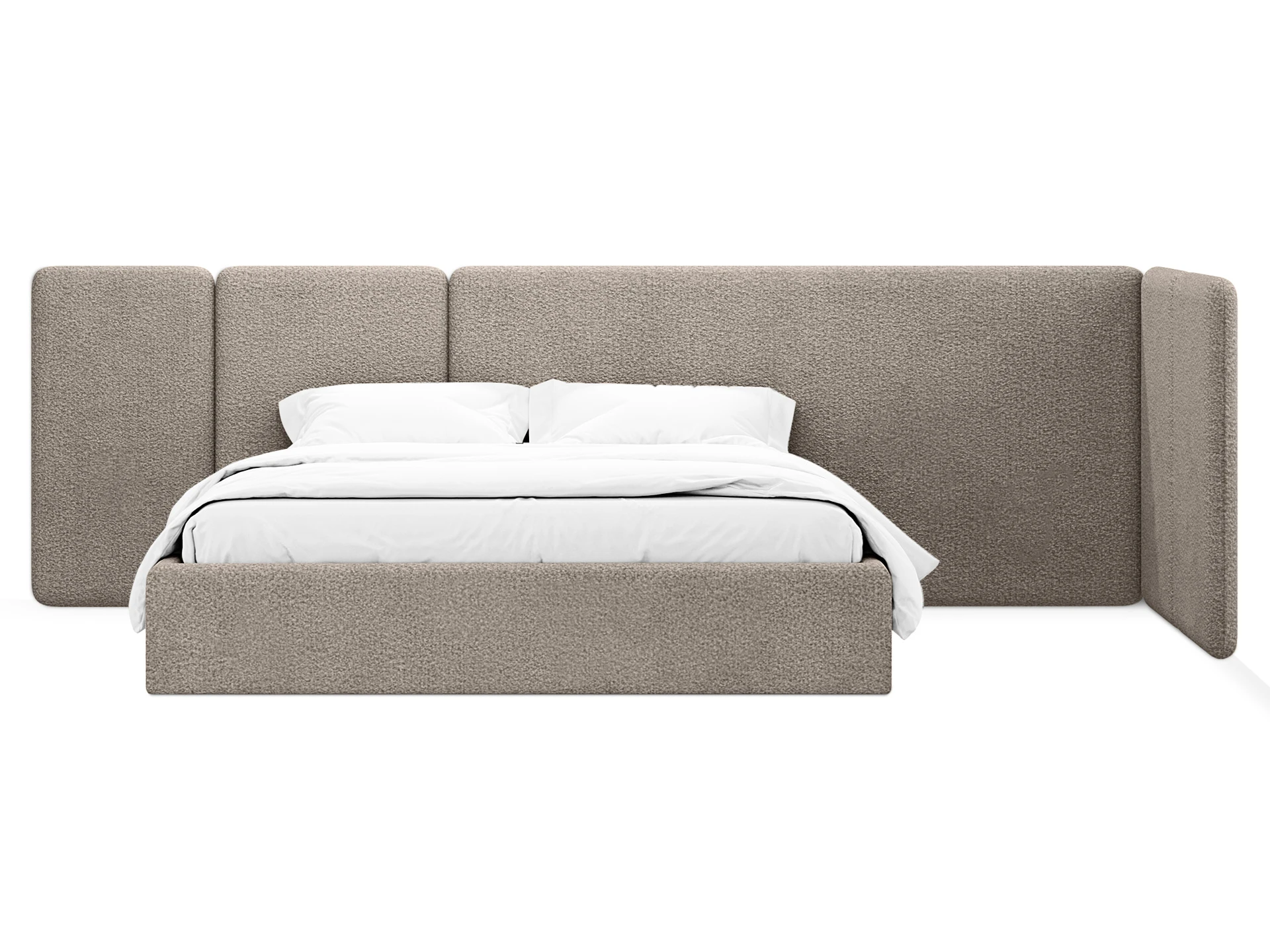 Кровать Atessa — модель с акцентной геометрией и мягкими панелями в изголовье. Широкое настенное изголовье состоит из отдельных модулей, что позволяет комбинировать оттенки обивки для создания уникальных цветовых решений. Мягкая обшивка царг обеспечивает тактильный комфорт по периметру спального места. Конструктив и материалы: • Каркас и основание: Корпус кровати — царги из ЛДСтП 22 мм. В основании установлены пластиковые опоры высотой 49 мм. • Изголовье: Мягкие настенные панели. Внутренний каркас панелей — березовая фанера. • Обивка: Панели изголовья: чехол несъемный. Царги: чехол съемный. • Опции: Доступна комплектация с подъемным механизмом или без него (стационарное основание). Функциональность: Модель рассчитана на стандартное спальное место 1800х2000 мм. Мягкое изголовье обеспечивает комфорт при отдыхе сидя (чтение, просмотр видео). Благодаря модульной структуре панелей кровать легко адаптируется под геометрию стены и интерьер, выступая центральным элементом спальни. Подходит для современных жилых пространств.