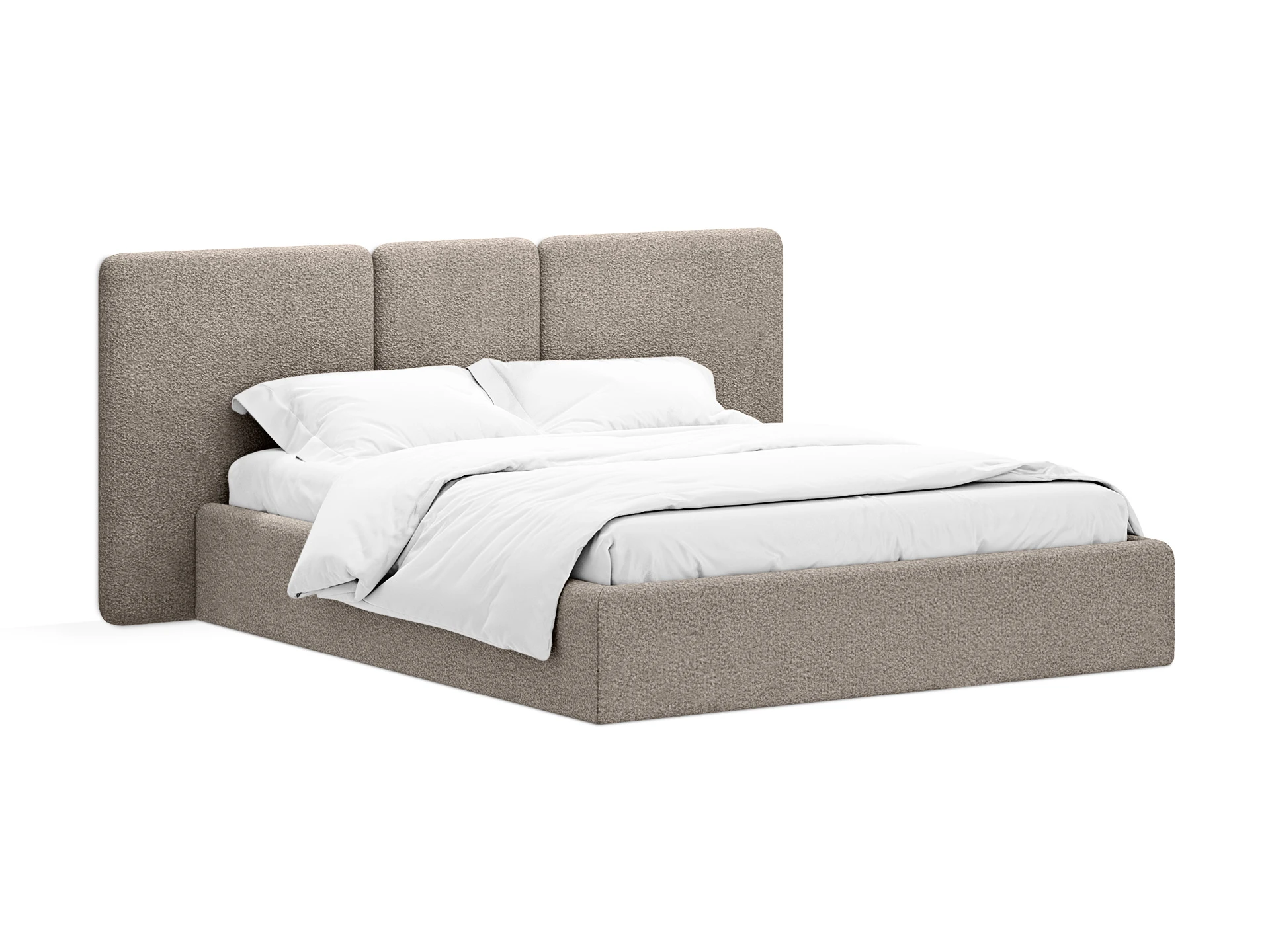 Кровать Atessa — модель с акцентной геометрией и мягкими панелями в изголовье. Широкое настенное изголовье состоит из отдельных модулей, что позволяет комбинировать оттенки обивки для создания уникальных цветовых решений. Мягкая обшивка царг обеспечивает тактильный комфорт по периметру спального места. Конструктив и материалы: • Каркас и основание: Корпус кровати — царги из ЛДСтП 22 мм. В основании установлены пластиковые опоры высотой 49 мм. • Изголовье: Мягкие настенные панели. Внутренний каркас панелей — березовая фанера. • Обивка: Панели изголовья: чехол несъемный. Царги: чехол съемный. • Опции: Доступна комплектация с подъемным механизмом или без него (стационарное основание). Функциональность: Модель рассчитана на стандартное спальное место 1600х2000 мм. Мягкое изголовье обеспечивает комфорт при отдыхе сидя (чтение, просмотр видео). Благодаря модульной структуре панелей кровать легко адаптируется под геометрию стены и интерьер, выступая центральным элементом спальни. Подходит для современных жилых пространств.