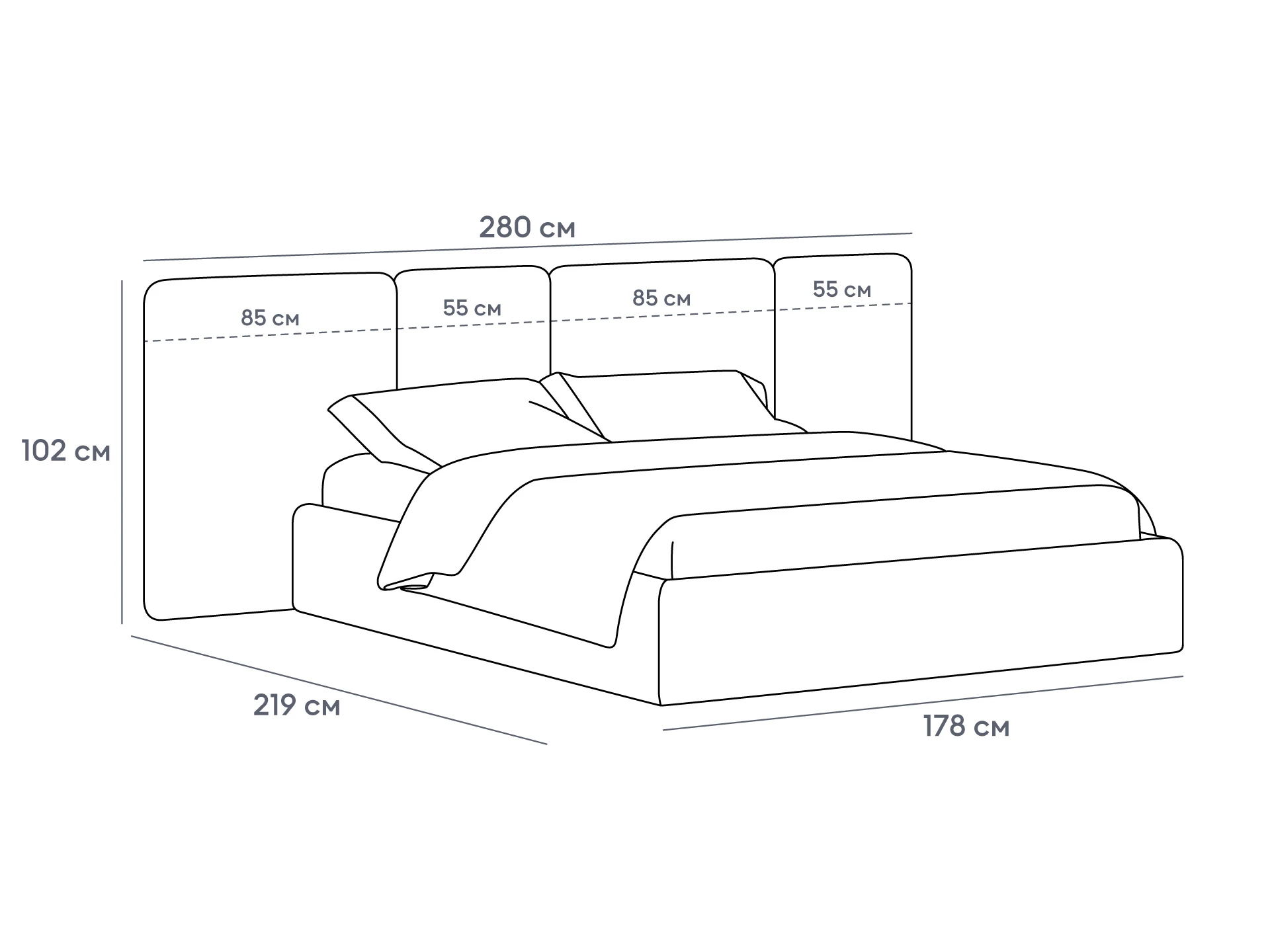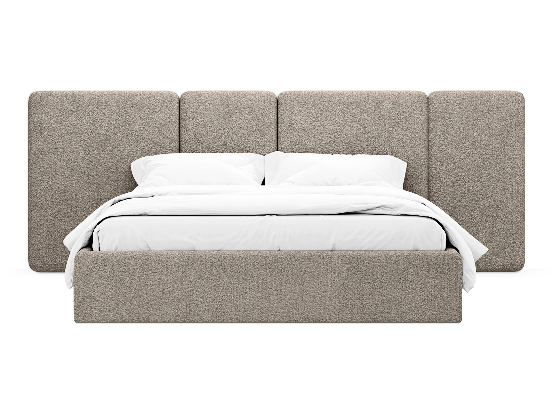 Кровать Atessa — модель с акцентной геометрией и мягкими панелями в изголовье. Широкое настенное изголовье состоит из отдельных модулей, что позволяет комбинировать оттенки обивки для создания уникальных цветовых решений. Мягкая обшивка царг обеспечивает тактильный комфорт по периметру спального места. Конструктив и материалы: • Каркас и основание: Корпус кровати — царги из ЛДСтП 22 мм. В основании установлены пластиковые опоры высотой 49 мм. • Изголовье: Мягкие настенные панели. Внутренний каркас панелей — березовая фанера. • Обивка: Панели изголовья: чехол несъемный. Царги: чехол съемный. • Опции: Доступна комплектация с подъемным механизмом или без него (стационарное основание). Функциональность: Модель рассчитана на стандартное спальное место 1600х2000 мм. Мягкое изголовье обеспечивает комфорт при отдыхе сидя (чтение, просмотр видео). Благодаря модульной структуре панелей кровать легко адаптируется под геометрию стены и интерьер, выступая центральным элементом спальни. Подходит для современных жилых пространств.