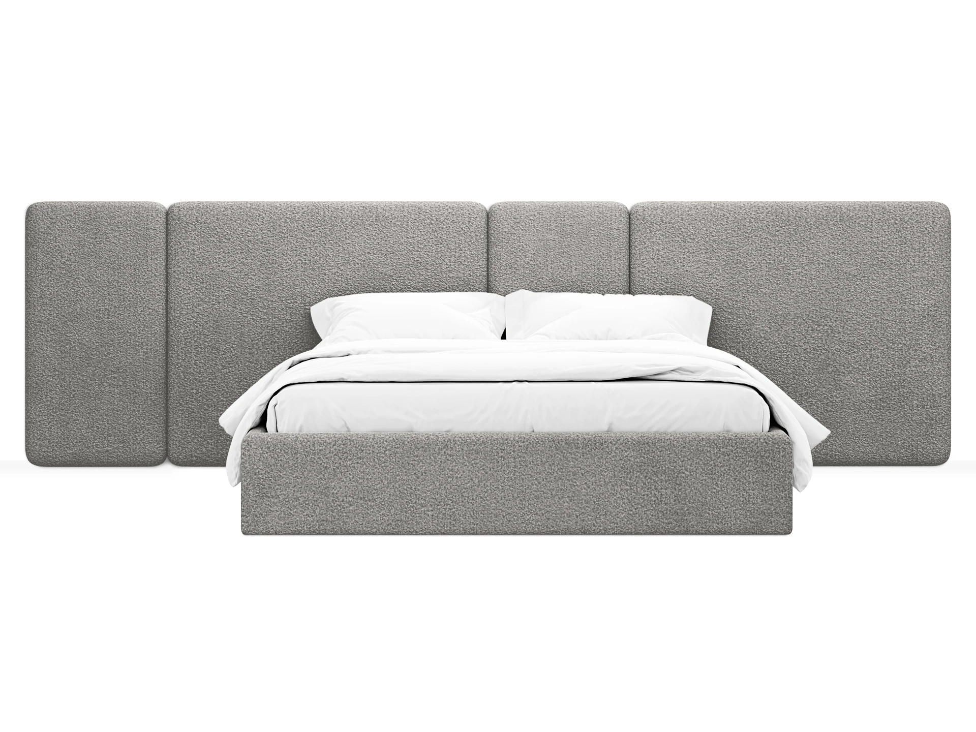 Кровать Atessa — модель с акцентной геометрией и мягкими панелями в изголовье. Широкое настенное изголовье состоит из отдельных модулей, что позволяет комбинировать оттенки обивки для создания уникальных цветовых решений. Мягкая обшивка царг обеспечивает тактильный комфорт по периметру спального места. Конструктив и материалы: • Каркас и основание: Корпус кровати — царги из ЛДСтП 22 мм. В основании установлены пластиковые опоры высотой 49 мм. • Изголовье: Мягкие настенные панели. Внутренний каркас панелей — березовая фанера. • Обивка: Панели изголовья: чехол несъемный. Царги: чехол съемный. • Опции: Доступна комплектация с подъемным механизмом или без него (стационарное основание). Функциональность: Модель рассчитана на стандартное спальное место 1600х2000 мм. Мягкое изголовье обеспечивает комфорт при отдыхе сидя (чтение, просмотр видео). Благодаря модульной структуре панелей кровать легко адаптируется под геометрию стены и интерьер, выступая центральным элементом спальни. Подходит для современных жилых пространств.