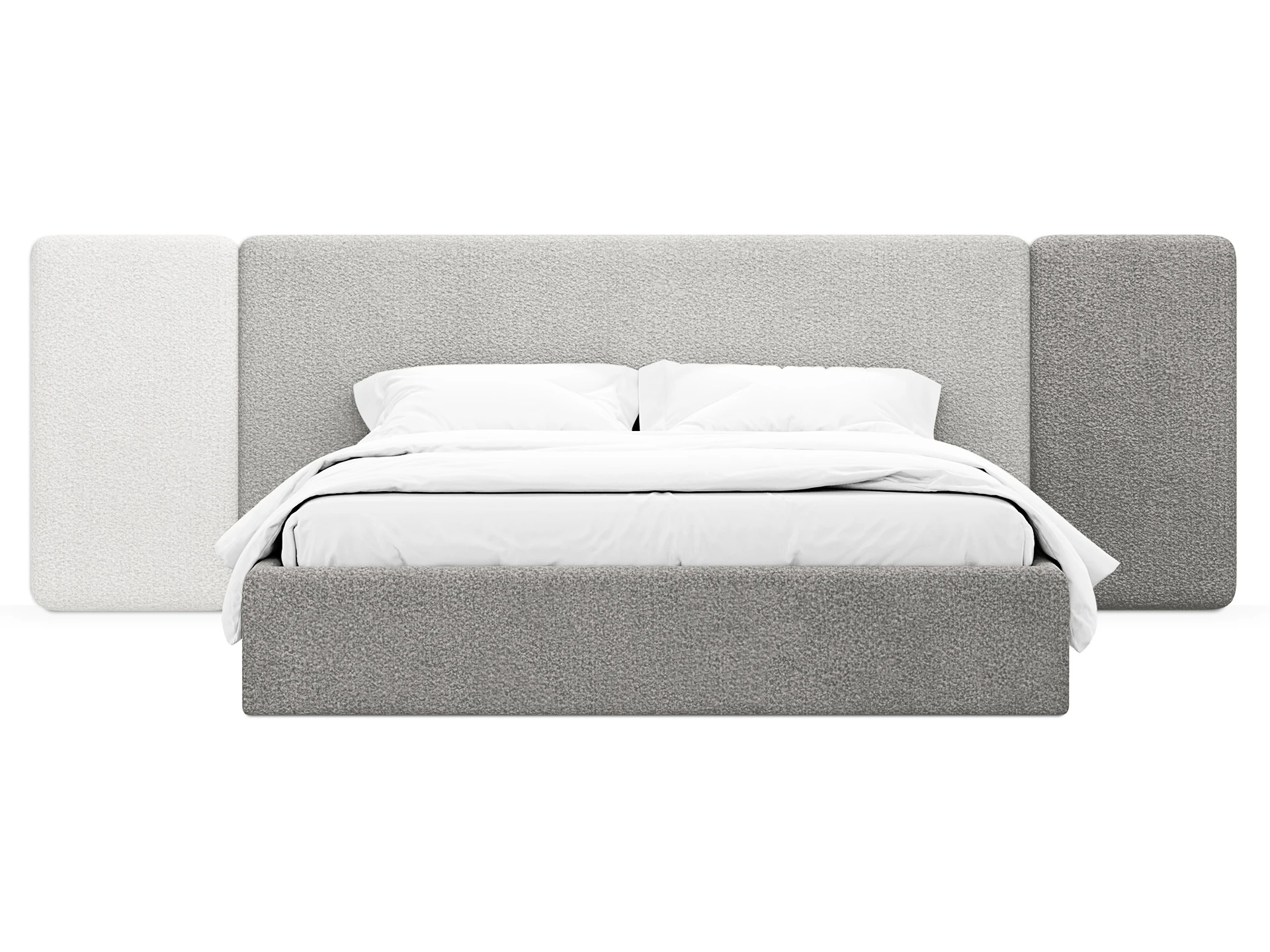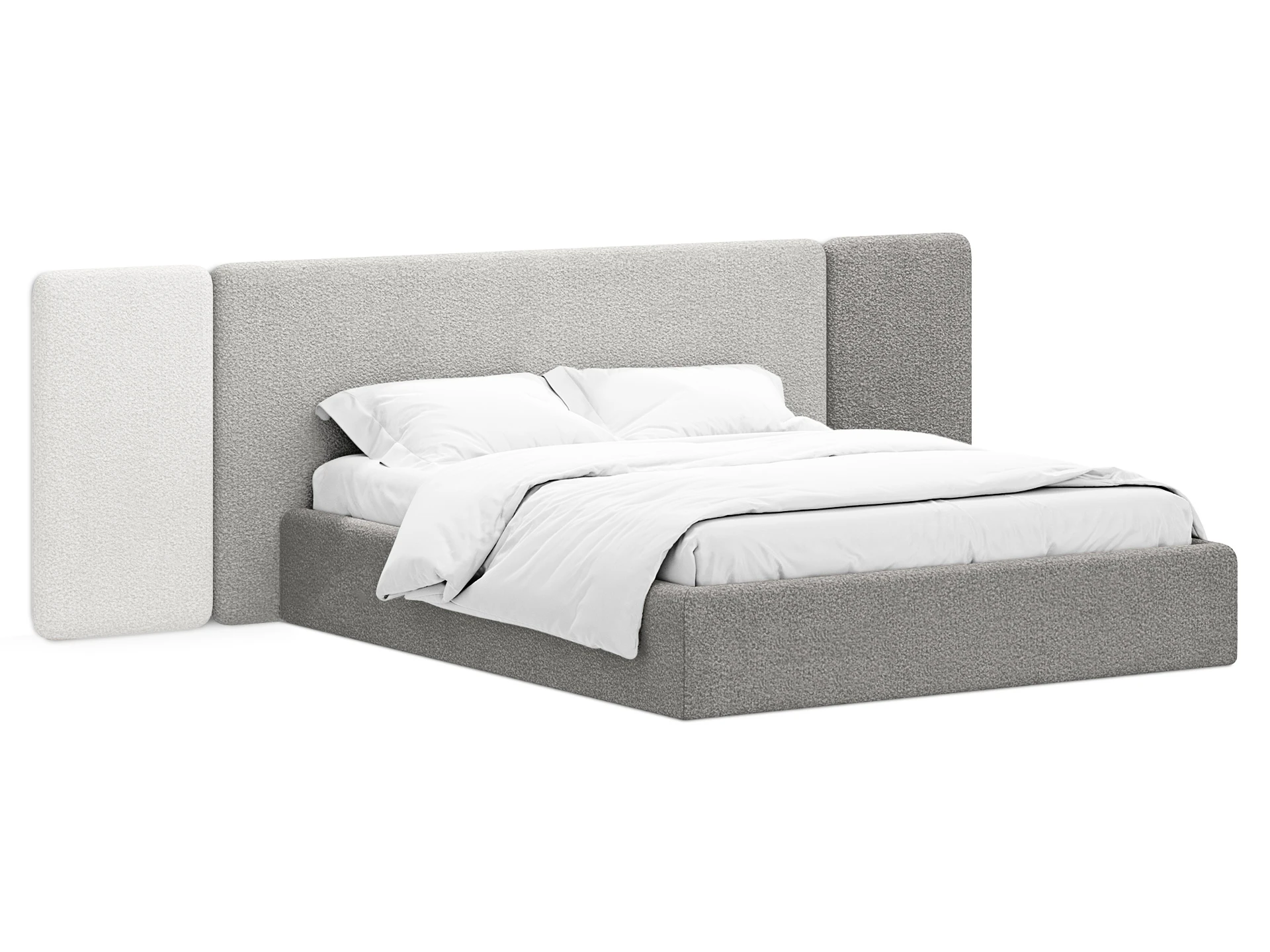 Кровать Atessa — модель с акцентной геометрией и мягкими панелями в изголовье. Широкое настенное изголовье состоит из отдельных модулей, что позволяет комбинировать оттенки обивки для создания уникальных цветовых решений. Мягкая обшивка царг обеспечивает тактильный комфорт по периметру спального места. Конструктив и материалы: • Каркас и основание: Корпус кровати — царги из ЛДСтП 22 мм. В основании установлены пластиковые опоры высотой 49 мм. • Изголовье: Мягкие настенные панели. Внутренний каркас панелей — березовая фанера. • Обивка: Панели изголовья: чехол несъемный. Царги: чехол съемный. • Опции: Доступна комплектация с подъемным механизмом или без него (стационарное основание). Функциональность: Модель рассчитана на стандартное спальное место 1600х2000 мм. Мягкое изголовье обеспечивает комфорт при отдыхе сидя (чтение, просмотр видео). Благодаря модульной структуре панелей кровать легко адаптируется под геометрию стены и интерьер, выступая центральным элементом спальни. Подходит для современных жилых пространств.
