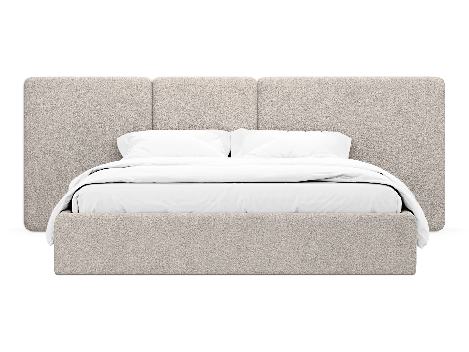 Кровать Atessa — модель с акцентной геометрией и мягкими панелями в изголовье. Широкое настенное изголовье состоит из отдельных модулей, что позволяет комбинировать оттенки обивки для создания уникальных цветовых решений. Мягкая обшивка царг обеспечивает тактильный комфорт по периметру спального места. Конструктив и материалы: • Каркас и основание: Корпус кровати — царги из ЛДСтП 22 мм. В основании установлены пластиковые опоры высотой 49 мм. • Изголовье: Мягкие настенные панели. Внутренний каркас панелей — березовая фанера. • Обивка: Панели изголовья: чехол несъемный. Царги: чехол съемный. • Опции: Доступна комплектация с подъемным механизмом или без него (стационарное основание). Функциональность: Модель рассчитана на стандартное спальное место 1800х2000 мм. Мягкое изголовье обеспечивает комфорт при отдыхе сидя (чтение, просмотр видео). Благодаря модульной структуре панелей кровать легко адаптируется под геометрию стены и интерьер, выступая центральным элементом спальни. Подходит для современных жилых пространств.