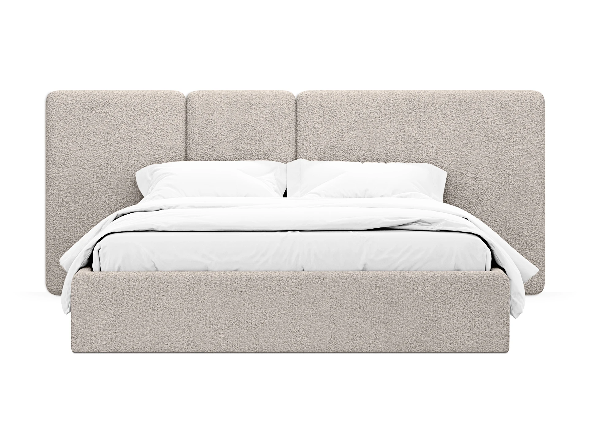 Кровать Atessa — модель с акцентной геометрией и мягкими панелями в изголовье. Широкое настенное изголовье состоит из отдельных модулей, что позволяет комбинировать оттенки обивки для создания уникальных цветовых решений. Мягкая обшивка царг обеспечивает тактильный комфорт по периметру спального места. Конструктив и материалы: • Каркас и основание: Корпус кровати — царги из ЛДСтП 22 мм. В основании установлены пластиковые опоры высотой 49 мм. • Изголовье: Мягкие настенные панели. Внутренний каркас панелей — березовая фанера. • Обивка: Панели изголовья: чехол несъемный. Царги: чехол съемный. • Опции: Доступна комплектация с подъемным механизмом или без него (стационарное основание). Функциональность: Модель рассчитана на стандартное спальное место 1600х2000 мм. Мягкое изголовье обеспечивает комфорт при отдыхе сидя (чтение, просмотр видео). Благодаря модульной структуре панелей кровать легко адаптируется под геометрию стены и интерьер, выступая центральным элементом спальни. Подходит для современных жилых пространств.