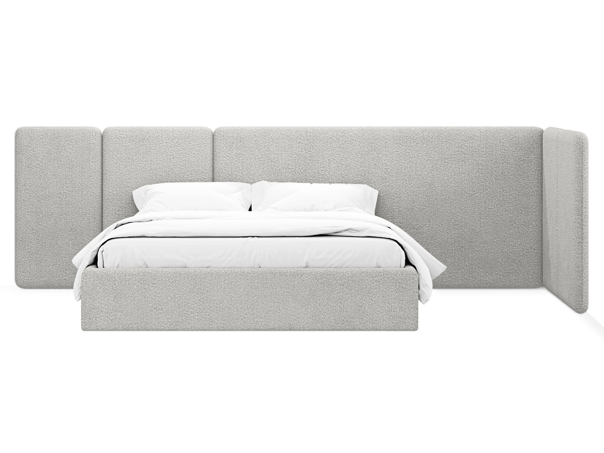 Кровать Atessa — модель с акцентной геометрией и мягкими панелями в изголовье. Широкое настенное изголовье состоит из отдельных модулей, что позволяет комбинировать оттенки обивки для создания уникальных цветовых решений. Мягкая обшивка царг обеспечивает тактильный комфорт по периметру спального места. Конструктив и материалы: • Каркас и основание: Корпус кровати — царги из ЛДСтП 22 мм. В основании установлены пластиковые опоры высотой 49 мм. • Изголовье: Мягкие настенные панели. Внутренний каркас панелей — березовая фанера. • Обивка: Панели изголовья: чехол несъемный. Царги: чехол съемный. • Опции: Доступна комплектация с подъемным механизмом или без него (стационарное основание). Функциональность: Модель рассчитана на стандартное спальное место 1600х2000 мм. Мягкое изголовье обеспечивает комфорт при отдыхе сидя (чтение, просмотр видео). Благодаря модульной структуре панелей кровать легко адаптируется под геометрию стены и интерьер, выступая центральным элементом спальни. Подходит для современных жилых пространств.