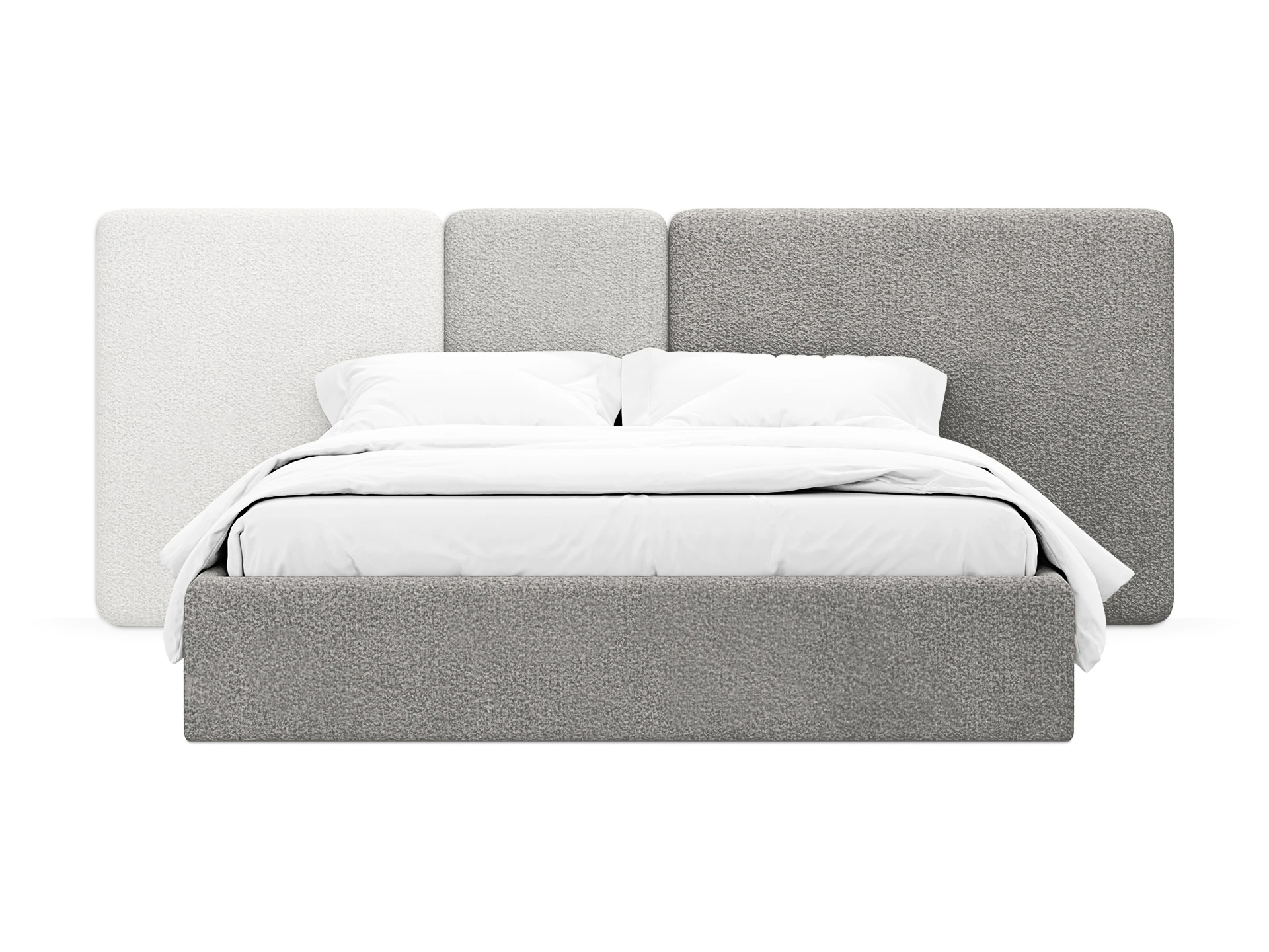 Кровать Atessa — модель с акцентной геометрией и мягкими панелями в изголовье. Широкое настенное изголовье состоит из отдельных модулей, что позволяет комбинировать оттенки обивки для создания уникальных цветовых решений. Мягкая обшивка царг обеспечивает тактильный комфорт по периметру спального места. Конструктив и материалы: • Каркас и основание: Корпус кровати — царги из ЛДСтП 22 мм. В основании установлены пластиковые опоры высотой 49 мм. • Изголовье: Мягкие настенные панели. Внутренний каркас панелей — березовая фанера. • Обивка: Панели изголовья: чехол несъемный. Царги: чехол съемный. • Опции: Доступна комплектация с подъемным механизмом или без него (стационарное основание). Функциональность: Модель рассчитана на стандартное спальное место 1600х2000 мм. Мягкое изголовье обеспечивает комфорт при отдыхе сидя (чтение, просмотр видео). Благодаря модульной структуре панелей кровать легко адаптируется под геометрию стены и интерьер, выступая центральным элементом спальни. Подходит для современных жилых пространств.