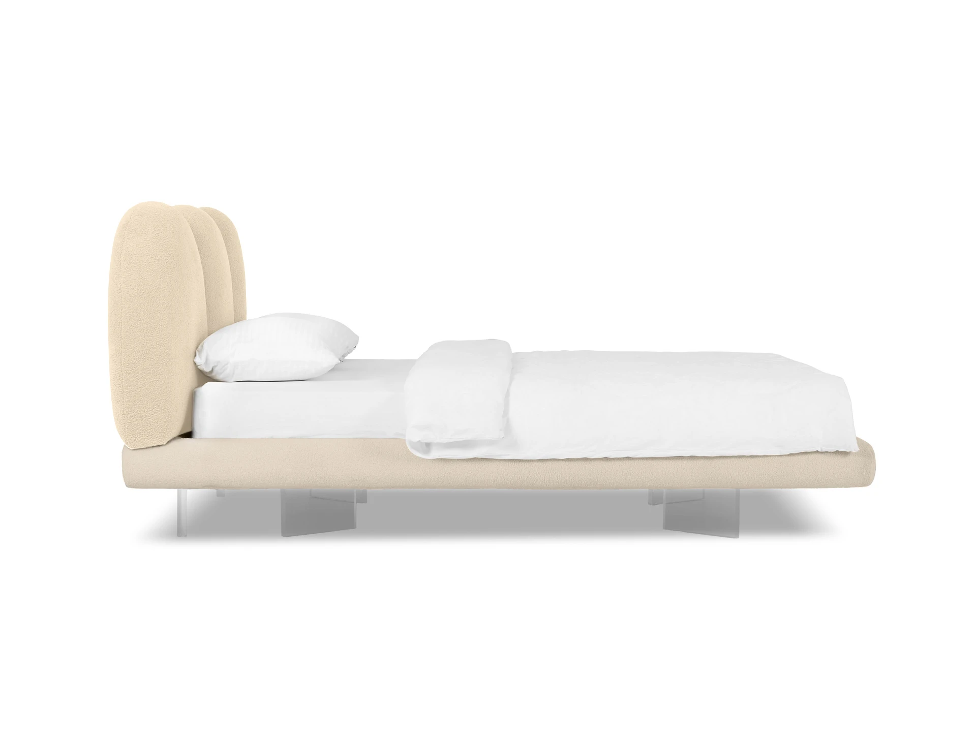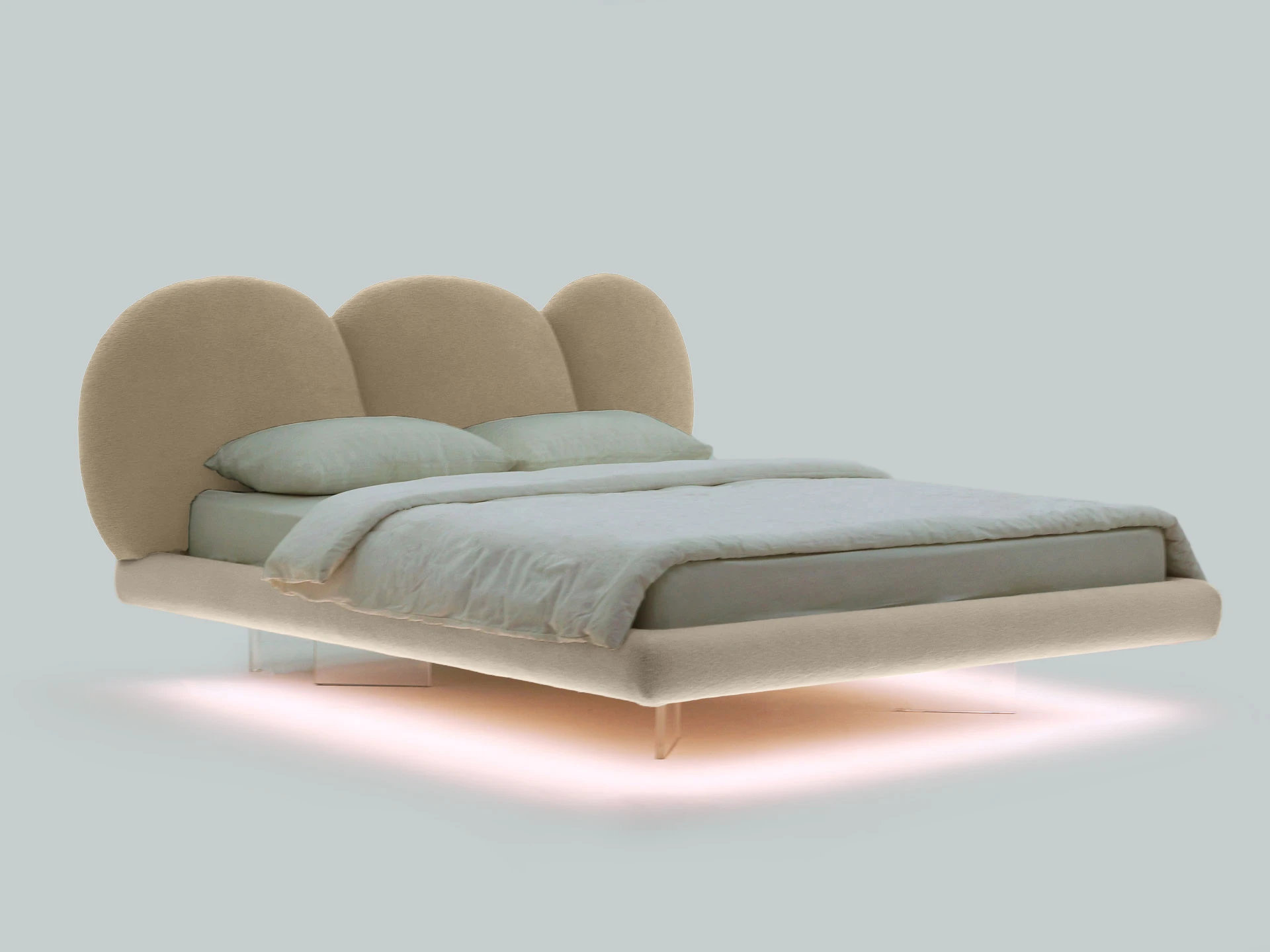 Кровать Targa приглашает вас к полётам во сне и наяву! Уникальный парящий дизайн станет центром внимания в любом интерьере. Щедрые пропорции, обволакивающие линии рисуют благородный внешний вид. Мягкое изголовье, состоящее из трех округлых секций, напоминает «стену из валунов». Которые надежно укроют вас от суеты и потока дел, дадут покой, превратятся в тайное убежище для перезагрузки. Фактурная обивка отвечает за приятные тактильные ощущения, уют, тепло и осязаемый комфорт. Парящий эффект создаётся прозрачными опорами из акрилового листа. Они незаметно приподнимают кровать, словно она левитирует в воздухе. Светодиодная лента, установленная на нижней поверхности царг, усиливает это впечатление. Она также служит дополнительным источником света, поддерживает камерный настрой на приятный отдых и глубокий сон. С помощью пульта вы можете выбрать цвет свечения: тёплый, холодный, нейтральный. Настраивайте по желанию эстетичную атмосферу с чувственным очарованием или лаконичный фон для внутреннего баланса. Кровать Targa — ваш личный источник сил и вдохновения! Лицевой чехол каркаса - несъемный. Опоры основания изготовлены из акрилового прозрачного бесцветного листа толщиной 20 мм. На нижние кромки опор установлены силиконовые подпятники. Основание кровати оснащено подсветкой – на нижней поверхности царг установлена светодиодная лента. Лента имеет три цвета свечения: теплый, холодный, нейтральный. Режимы свечения ленты регулируются контроллером с пультом управления. Основание – ортопедическое, металлическое, с фанерными латами. Максимальная нагрузка – 160 кг. на одно спальное место. Рекомендуемая высота матраса - 24 см.