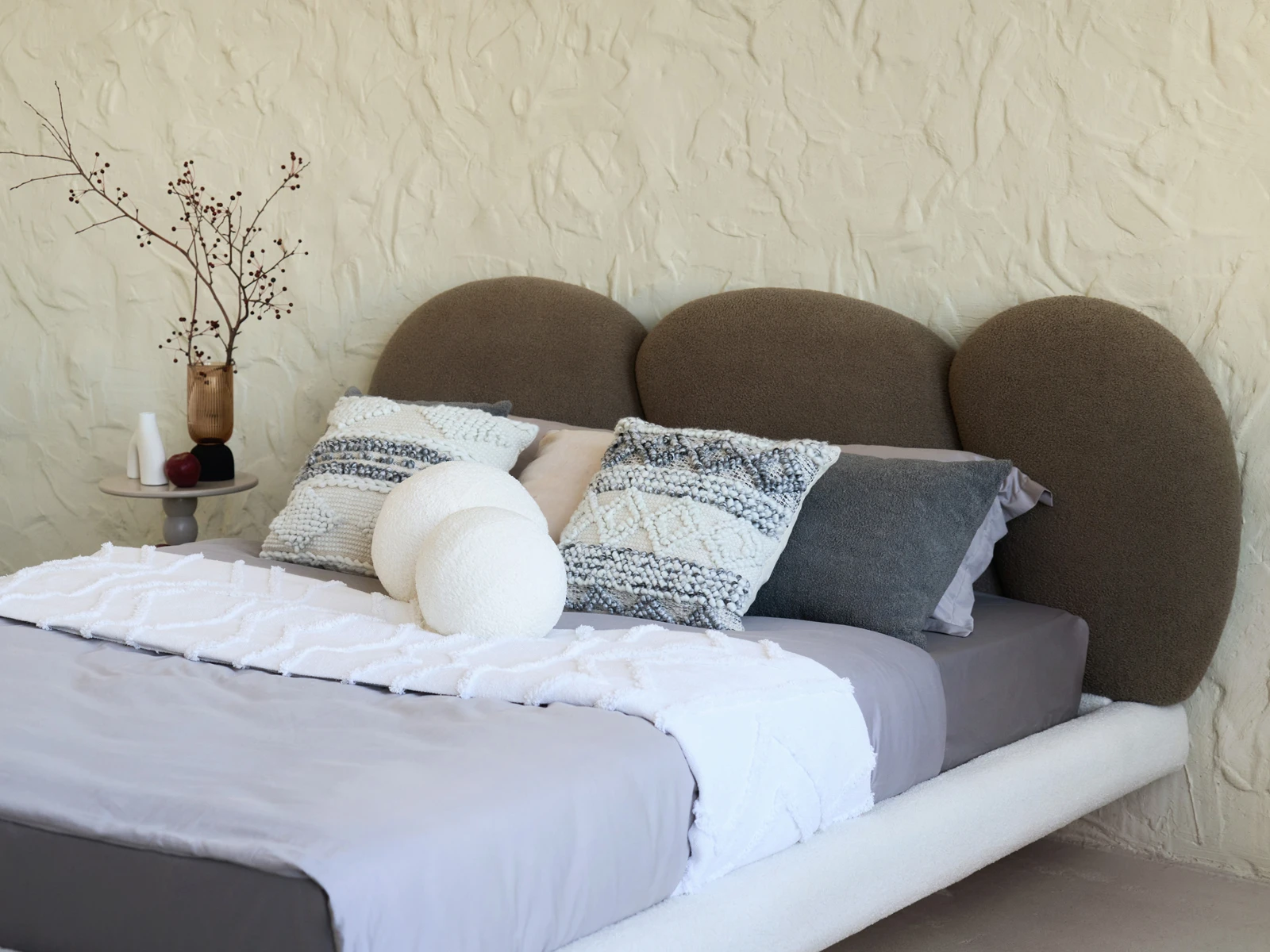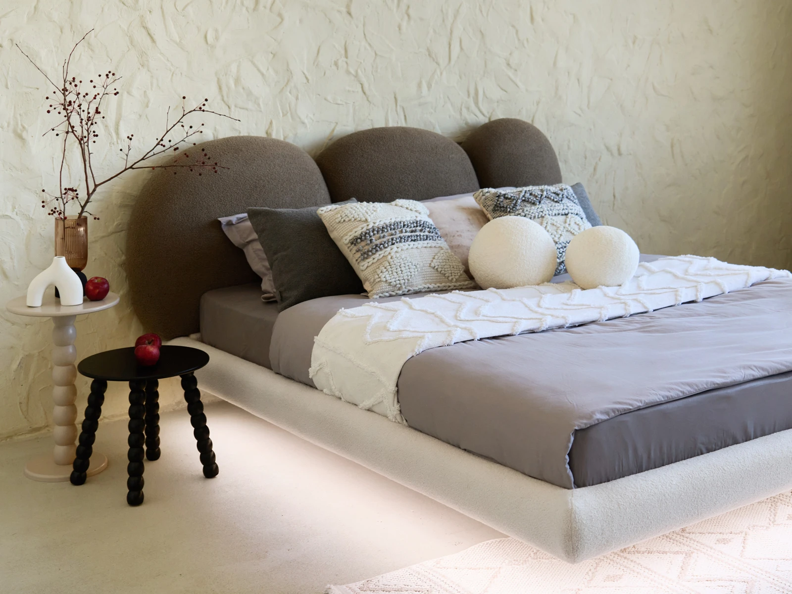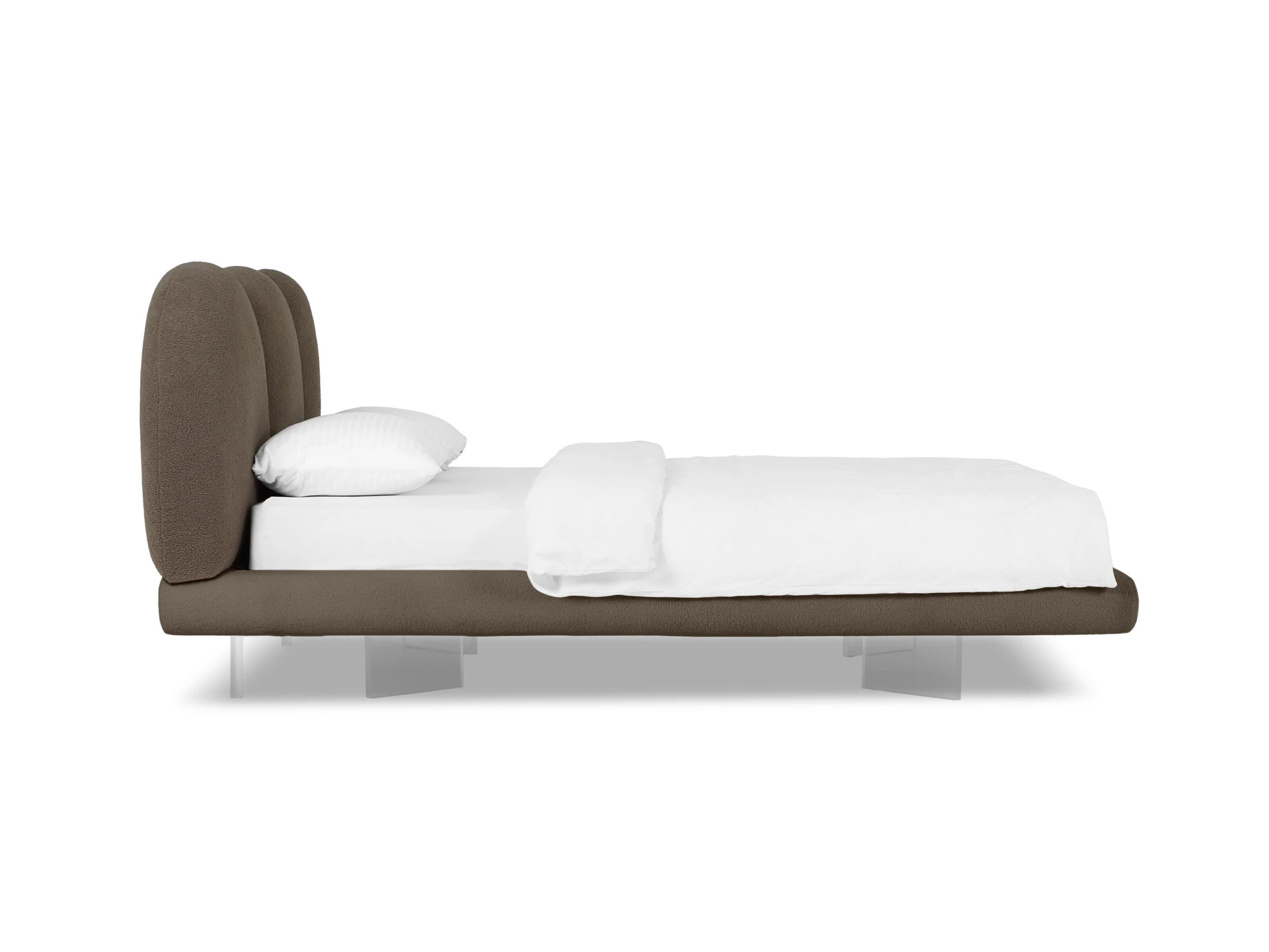 Кровать Targa приглашает вас к полётам во сне и наяву! Уникальный парящий дизайн станет центром внимания в любом интерьере. Щедрые пропорции, обволакивающие линии рисуют благородный внешний вид. Мягкое изголовье, состоящее из трех округлых секций, напоминает «стену из валунов». Которые надежно укроют вас от суеты и потока дел, дадут покой, превратятся в тайное убежище для перезагрузки. Фактурная обивка отвечает за приятные тактильные ощущения, уют, тепло и осязаемый комфорт. Парящий эффект создаётся прозрачными опорами из акрилового листа. Они незаметно приподнимают кровать, словно она левитирует в воздухе. Светодиодная лента, установленная на нижней поверхности царг, усиливает это впечатление. Она также служит дополнительным источником света, поддерживает камерный настрой на приятный отдых и глубокий сон. С помощью пульта вы можете выбрать цвет свечения: тёплый, холодный, нейтральный. Настраивайте по желанию эстетичную атмосферу с чувственным очарованием или лаконичный фон для внутреннего баланса. Кровать Targa — ваш личный источник сил и вдохновения! Лицевой чехол каркаса - несъемный. Опоры основания изготовлены из акрилового прозрачного бесцветного листа толщиной 20 мм. На нижние кромки опор установлены силиконовые подпятники. Основание кровати оснащено подсветкой – на нижней поверхности царг установлена светодиодная лента. Лента имеет три цвета свечения: теплый, холодный, нейтральный. Режимы свечения ленты регулируются контроллером с пультом управления. Основание – ортопедическое, металлическое, с фанерными латами. Максимальная нагрузка – 160 кг. на одно спальное место. Рекомендуемая высота матраса - 24 см.