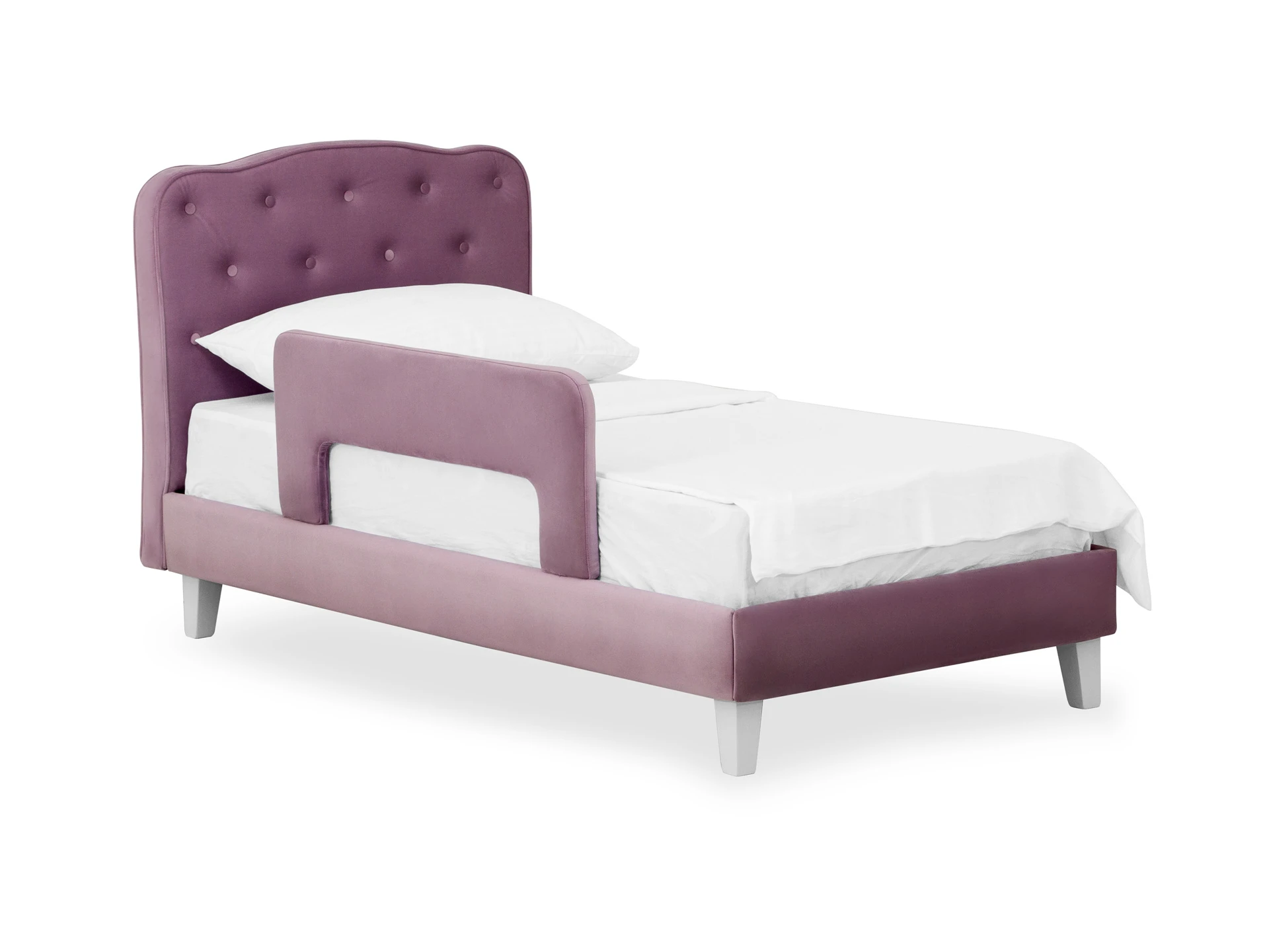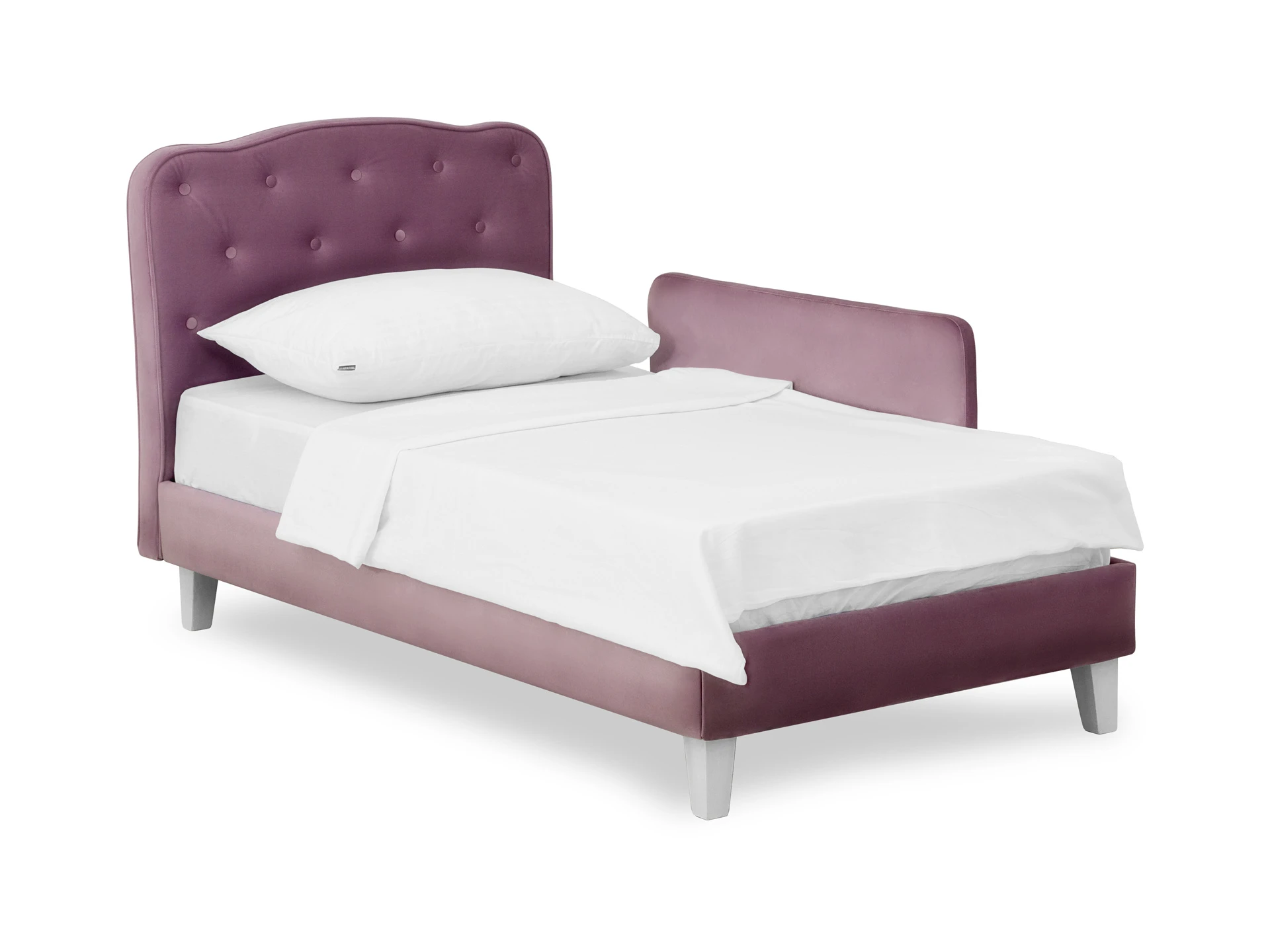 Линейка Candy — кровати для детей с высоким изголовьем и мягкими царгами. Изящное исполнение поможет воссоздать в интерьере картинку из сказки. Комната принцессы или спальня феи — Candy воплотит любую мечту! Воздушная и невесомая благодаря ножкам из массива дерева. Смотрится аккуратно и эстетично. Элегантное фигурное изголовье украшено текстильными пуговицами, напоминающими каретную стяжку «капитоне». Каркас состоит из брусков хвойных пород — экологичный и надежный материал. Настилочные материалы спинки и царг — пенополиуретан различных толщин и синтепон. Благодаря повышенной комфортности мягких элементов создается ощущение покоя и безмятежности. Размер спального места: 800х1600 мм. Кровать имеет несъёмный тканевый чехол. Максимальная нагрузка на спальное место — 60 кг. Рекомендуется для детей от 2-х до 10 лет. Можно заказать дополнительные боковые бортики для безопасности. Большой выбор фактур и оттенков обивочного материала позволяет создать модель с учетом любых индивидуальных предпочтений. Кровать односпальная. Размер спального места: 800х1600 мм. Кровать имеет несъёмный тканевый чехол. Максимальная нагрузка на спальное место - 60кг. Рекомендуется для детей от 2-х до 10 лет.