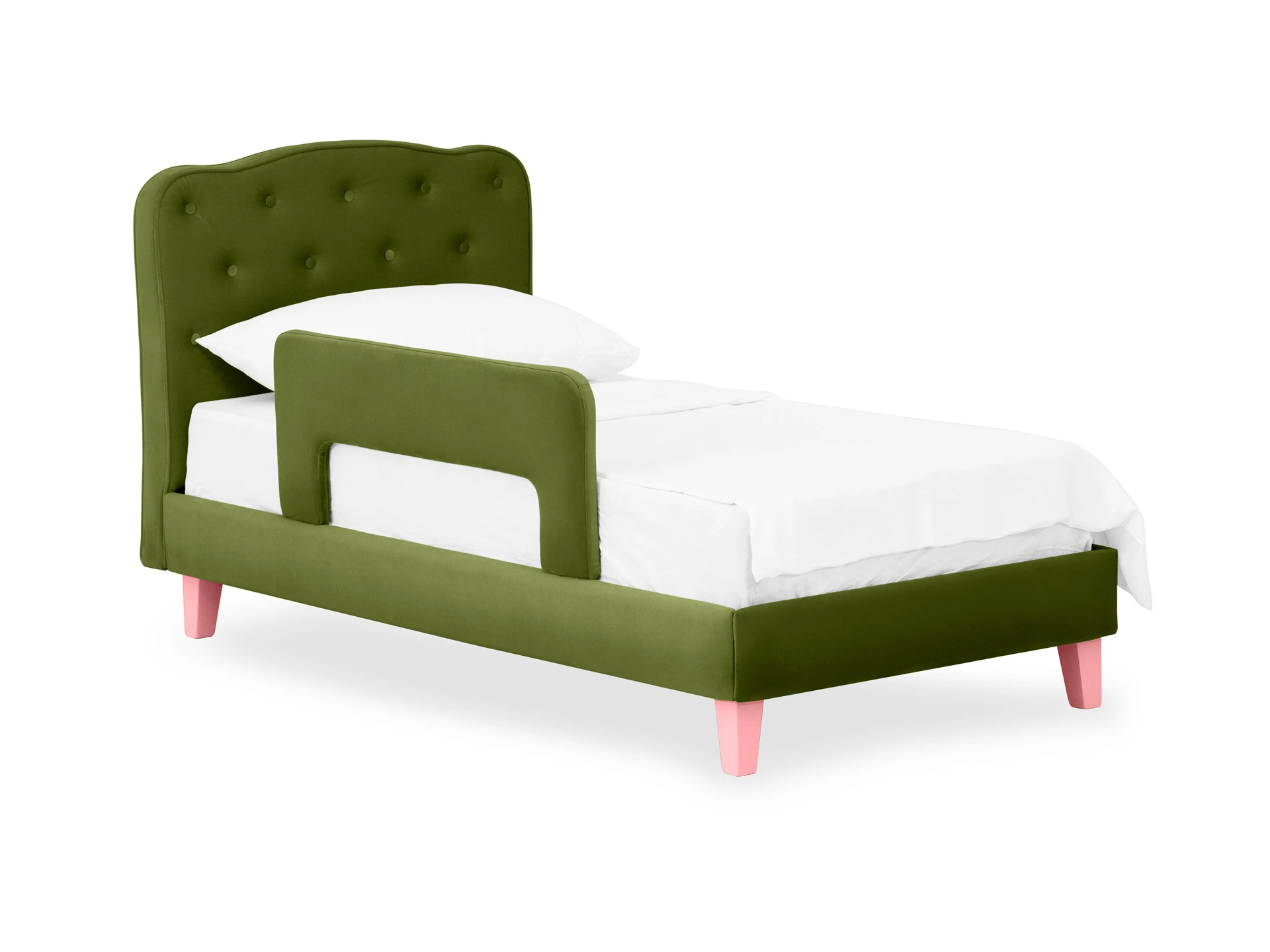 Линейка Candy — кровати для детей с высоким изголовьем и мягкими царгами. Изящное исполнение поможет воссоздать в интерьере картинку из сказки. Комната принцессы или спальня феи — Candy воплотит любую мечту! Воздушная и невесомая благодаря ножкам из массива дерева. Смотрится аккуратно и эстетично. Элегантное фигурное изголовье украшено текстильными пуговицами, напоминающими каретную стяжку «капитоне». Каркас состоит из брусков хвойных пород — экологичный и надежный материал. Настилочные материалы спинки и царг — пенополиуретан различных толщин и синтепон. Благодаря повышенной комфортности мягких элементов создается ощущение покоя и безмятежности. Размер спального места: 800х1600 мм. Кровать имеет несъёмный тканевый чехол. Максимальная нагрузка на спальное место — 60 кг. Рекомендуется для детей от 2-х до 10 лет. Можно заказать дополнительные боковые бортики для безопасности. Большой выбор фактур и оттенков обивочного материала позволяет создать модель с учетом любых индивидуальных предпочтений. Кровать односпальная. Размер спального места: 800х1600 мм. Кровать имеет несъёмный тканевый чехол. Максимальная нагрузка на спальное место - 60кг. Рекомендуется для детей от 2-х до 10 лет.