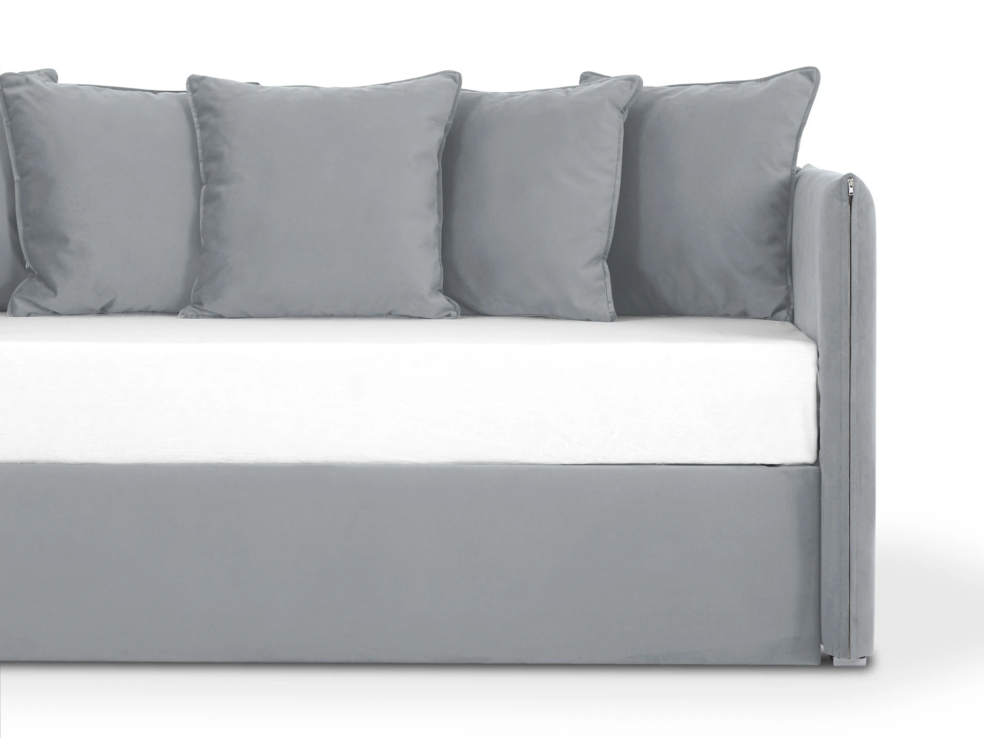 Серия Milano — функциональные кровати-кушетки с мягкими царгами. Идеальный вариант для детской или в качестве гостевого спального места. Днем может выполнять роль уютного диванчика, а ночью — комфортной кровати. Кушетка разработана с учетом регулярного сна и формирования правильной осанки. Отличная поддержка спины, равномерное распределение нагрузки. Также можно дополнить ортопедическим матрасом средней жесткости с блоком независимых пружин и натуральной кокосовой койрой, любым количеством подушек, выкатным ящиком, который можно использовать для хранения белья и в качестве ещё одного спального места. Лаконичный стиль модели подойдет для любого пространства. Персонализируйте Milano, выбирая нужный вам материал и цвет обивки. Кровать - кушетка Milano. Размер спального места: 1900х900 мм. Максимальная нагрузка на спальное место – 120 кг. Минимальная высота матраса: 170-180 мм. Может дополнительно комплектоваться выкатным ящиком, заглушкой, подушками (продаются отдельно). Максимальная нагрузка на дно ящика не должна превышать 100 кг, при условии ее равномерного распределения по площади основания. Ящик может использоваться как спальное место. Размеры матраса 1800х900 мм, максимальная толщина 140 мм. Лицевой чехол несъемный, декорирован застежками-молниями. Кушетка установлена на пластмассовые опоры, высотой 20 мм. Матрас в комплект не входит, приобретается отдельно. Декоративные подушки 600*600 в стоимость изделия не включены, приобретаются отдельно.