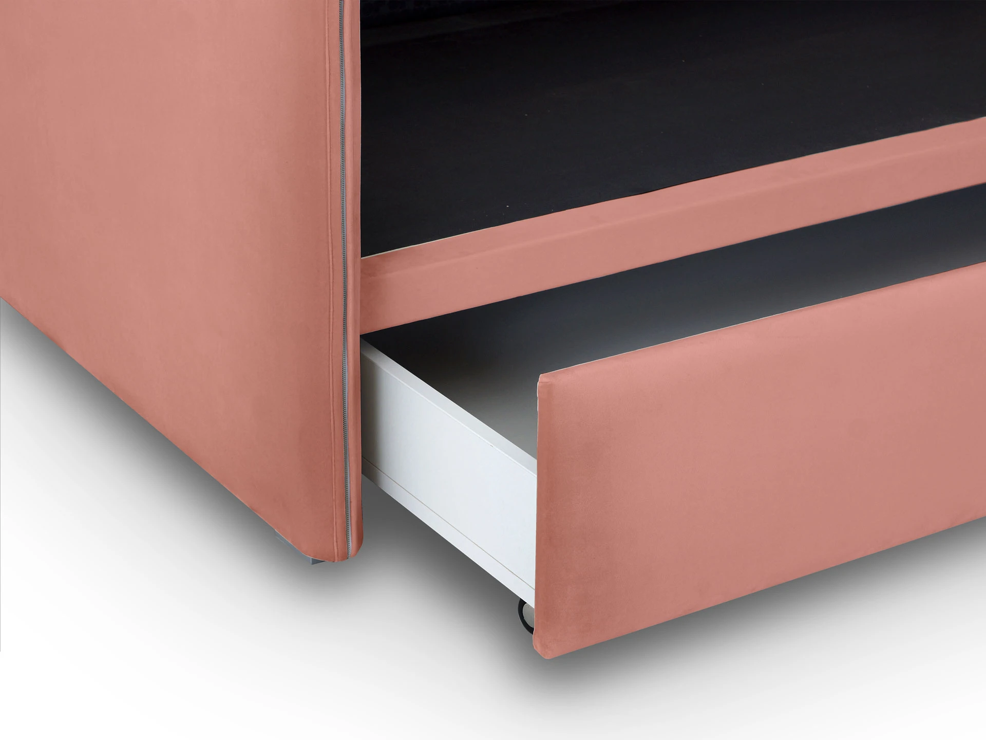 Серия Milano — функциональные кровати-кушетки с мягкими царгами. Идеальный вариант для детской или в качестве гостевого спального места. Днем может выполнять роль уютного диванчика, а ночью — комфортной кровати. Кушетка разработана с учетом регулярного сна и формирования правильной осанки. Отличная поддержка спины, равномерное распределение нагрузки. Также можно дополнить ортопедическим матрасом средней жесткости с блоком независимых пружин и натуральной кокосовой койрой, любым количеством подушек, выкатным ящиком, который можно использовать для хранения белья и в качестве ещё одного спального места. Лаконичный стиль модели подойдет для любого пространства. Персонализируйте Milano, выбирая нужный вам материал и цвет обивки. Кровать - кушетка Milano. Размер спального места: 1900х900 мм. Максимальная нагрузка на спальное место – 120 кг. Минимальная высота матраса: 170-180 мм. Может дополнительно комплектоваться выкатным ящиком, заглушкой, подушками (продаются отдельно). Максимальная нагрузка на дно ящика не должна превышать 100 кг, при условии ее равномерного распределения по площади основания. Ящик может использоваться как спальное место. Размеры матраса 1800х900 мм, максимальная толщина 140 мм. Лицевой чехол несъемный, декорирован застежками-молниями. Кушетка установлена на пластмассовые опоры, высотой 20 мм. Матрас в комплект не входит, приобретается отдельно. Декоративные подушки 600*600 в стоимость изделия не включены, приобретаются отдельно.