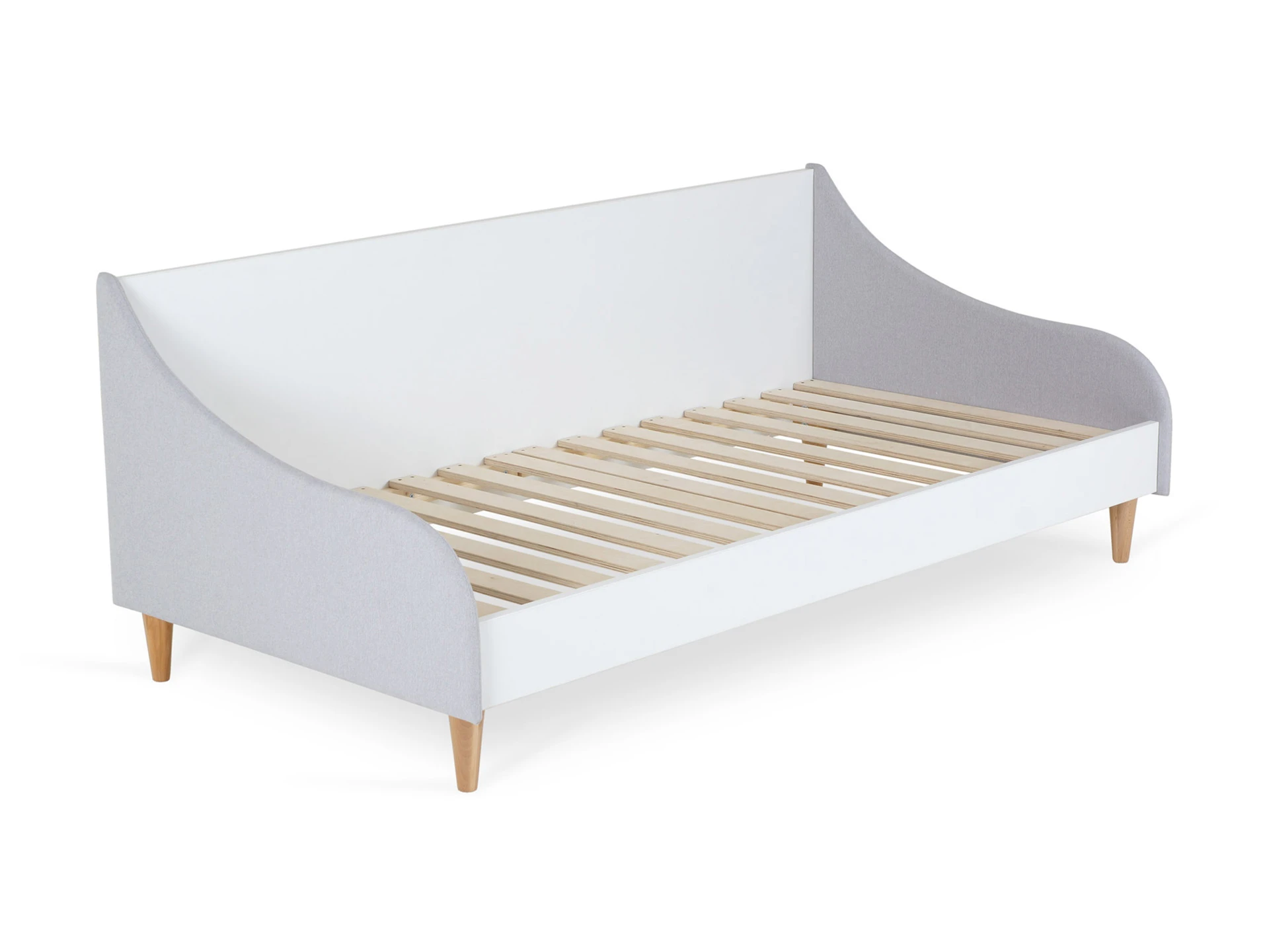 Rili — практичный дизайн, в основе которого скандинавская эстетика. Коллекция состоит из корпусной мебели: комодов, шкафов, стеллажей, сервантов, столов и мягких кушеток. Изделия привлекают гармоничным сочетанием функциональности, универсальности и эргономичности. В центре внимания — лаконичная геометрия, светлые тона, натуральные материалы, качественная фурнитура. Подходят для оформления гостиной, детской, спальни, рабочей зоны, прихожей. Визуально смотрятся легко за счет ножек из бука, которые упрощают процесс уборки и придают моделям воздушность. Мебель Rili поможет эффективно организовать площадь, рационально её зонировать. Будет смотреться уместно и аккуратно даже в небольшой локации. Из стильных предметов можно составлять индивидуальные композиции в зависимости от необходимого функционала. Они поддержат современный визуальный ряд интерьера, придадут ему свежесть, динамичность и подчеркнут комфортную атмосферу. Сбалансированно комбинируются с разными материалами и предметами других стилей. Каркас корпуса кушетки выполнен из белого гладкого ЛДСП толщиной 22 мм.. Подлокотники выполнены из МДФ толщиной 16 мм.. Мягкий элемент в изделии присутствует только в подлокотниках. Лицевой чехол подлокотников несъемный. Опоры кушетки из древесины бука и покрыты прозрачным лаком. Расстояние от пола до опорных планок основания кушетки - 270 мм.. Максимальная нагрузка на спальное место кровати - 120 кг. Размеры спального места: 1900х900 мм.. Рекомендуемые размеры матраса: 1900х900 мм, высота 160 мм.. * Подушки и матрас в стоимость кушетки не входят.