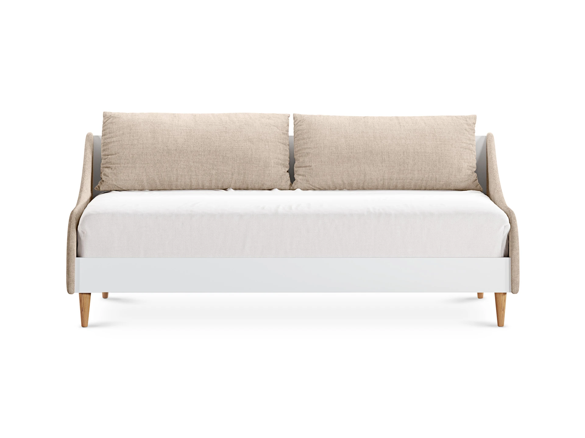 Rili — практичный дизайн, в основе которого скандинавская эстетика. Коллекция состоит из корпусной мебели: комодов, шкафов, стеллажей, сервантов, столов и мягких кушеток. Изделия привлекают гармоничным сочетанием функциональности, универсальности и эргономичности. В центре внимания — лаконичная геометрия, светлые тона, натуральные материалы, качественная фурнитура. Подходят для оформления гостиной, детской, спальни, рабочей зоны, прихожей. Визуально смотрятся легко за счет ножек из бука, которые упрощают процесс уборки и придают моделям воздушность. Мебель Rili поможет эффективно организовать площадь, рационально её зонировать. Будет смотреться уместно и аккуратно даже в небольшой локации. Из стильных предметов можно составлять индивидуальные композиции в зависимости от необходимого функционала. Они поддержат современный визуальный ряд интерьера, придадут ему свежесть, динамичность и подчеркнут комфортную атмосферу. Сбалансированно комбинируются с разными материалами и предметами других стилей. Каркас корпуса кушетки выполнен из белого гладкого ЛДСП толщиной 22 мм.. Подлокотники выполнены из МДФ толщиной 16 мм.. Мягкий элемент в изделии присутствует только в подлокотниках. Лицевой чехол подлокотников несъемный. Опоры кушетки из древесины бука и покрыты прозрачным лаком. Расстояние от пола до опорных планок основания кушетки - 270 мм.. Максимальная нагрузка на спальное место кровати - 120 кг. Размеры спального места: 1900х900 мм.. Рекомендуемые размеры матраса: 1900х900 мм, высота 160 мм.. * Подушки и матрас в стоимость кушетки не входят.