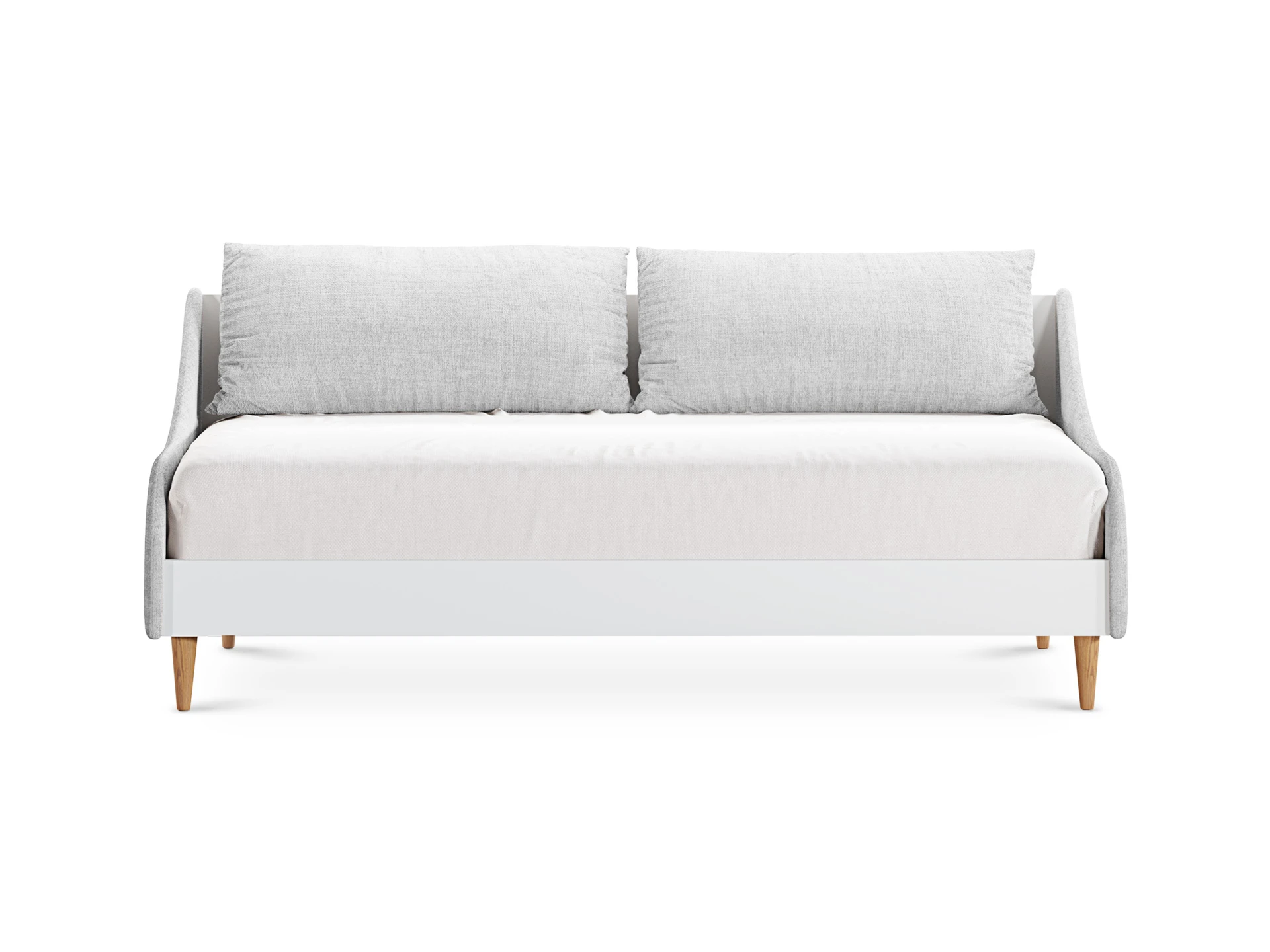Rili — практичный дизайн, в основе которого скандинавская эстетика. Коллекция состоит из корпусной мебели: комодов, шкафов, стеллажей, сервантов, столов и мягких кушеток. Изделия привлекают гармоничным сочетанием функциональности, универсальности и эргономичности. В центре внимания — лаконичная геометрия, светлые тона, натуральные материалы, качественная фурнитура. Подходят для оформления гостиной, детской, спальни, рабочей зоны, прихожей. Визуально смотрятся легко за счет ножек из бука, которые упрощают процесс уборки и придают моделям воздушность. Мебель Rili поможет эффективно организовать площадь, рационально её зонировать. Будет смотреться уместно и аккуратно даже в небольшой локации. Из стильных предметов можно составлять индивидуальные композиции в зависимости от необходимого функционала. Они поддержат современный визуальный ряд интерьера, придадут ему свежесть, динамичность и подчеркнут комфортную атмосферу. Сбалансированно комбинируются с разными материалами и предметами других стилей. Каркас корпуса кушетки выполнен из белого гладкого ЛДСП толщиной 22 мм.. Подлокотники выполнены из МДФ толщиной 16 мм.. Мягкий элемент в изделии присутствует только в подлокотниках. Лицевой чехол подлокотников несъемный. Опоры кушетки из древесины бука и покрыты прозрачным лаком. Расстояние от пола до опорных планок основания кушетки - 270 мм.. Максимальная нагрузка на спальное место кровати - 120 кг. Размеры спального места: 1900х900 мм.. Рекомендуемые размеры матраса: 1900х900 мм, высота 160 мм.. * Подушки и матрас в стоимость кушетки не входят.