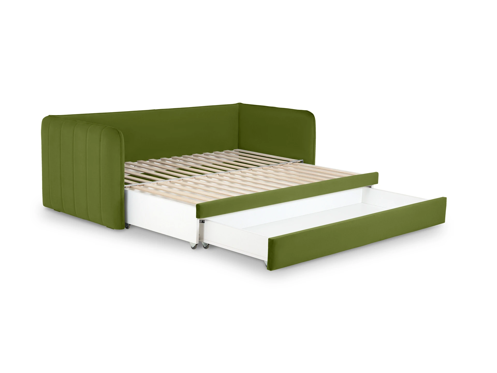 Todi — функциональная кушетка-кровать с двумя опциональными модулями. В собранном виде — это компактный диван, а в разложенном — спальное место размером 2000х1590х100 мм. Механизм трансформации — выкатной: при раскладывании достаточно выкатить вспомогательную секцию из-под сиденья и установить на нее блок ламелей. Конструкция проста и надежна для ежедневного использования. Также есть второй выкатной модуль, который можно использовать в качестве емкости для хранения или дополнительного спального места. Кушетка Todi — идеальный выбор для пространств средних и компактных размеров. Она гармонично впишется в гостиную, детскую, спальню, кухню. Каркас из деревянного бруса, в основе — породы хвойных: ель и сосна, влагостойкая березовая фанера. Мебель из этих материалов экологична, надежна и долговечна. В дизайне сделана ставка на лаконичность и универсальность. Мягкая высокая спинка и подлокотники находятся на одном уровне и имеют одинаковую толщину, что создаёт чувство уединения, безопасности. Пышные декоратиные подушки спинки подчеркивают комфорт, уют, позволяют максимально расслабить корпус. Рельефности добавляет спокойный декор в виде вертикальных линий строчки на боковинах и канта, который проходит по всему периметру изделия. Что придает ему целостный и завершенный вид. Благодаря ненавязчивому экстерьеру эта модель подружится с любым интерьерным стилем, главное — подобрать нужный цвет обивки. Todi — современная мебель с широким практическим спектром и безупречным исполнением. Кушетка установлена на пластмассовые опоры, высотой 20 мм. Имеют регулировку по высоте. Максимальная нагрузка на дно выдвижной секции - 100 кг, при условии ее равномерного распределения по площади основания (грузоподъемность в 100 кг регламентируется колесными опорами – 6 шт. по 25 кг на опору.). При использовании кушетки «Todi», в качестве раскладной 2-х спальной кровати, рекомендуется применять матрас раскладной конструкции, состоящий из двух частей. Размеры матраса в сложенном виде 2000 х 800 х 200 мм. Размеры матраса в разложенном виде 2000 х 1590 х 100 мм. Секция выкатная может использоваться как емкость для хранения, так и для организации спального места с матрасом размером 1800 х700 мм и высотой не более 140 мм. Матрасы покупаются отдельно. Кушетку можно приобрести без подушек. Цена указана со стоимостью подушек.