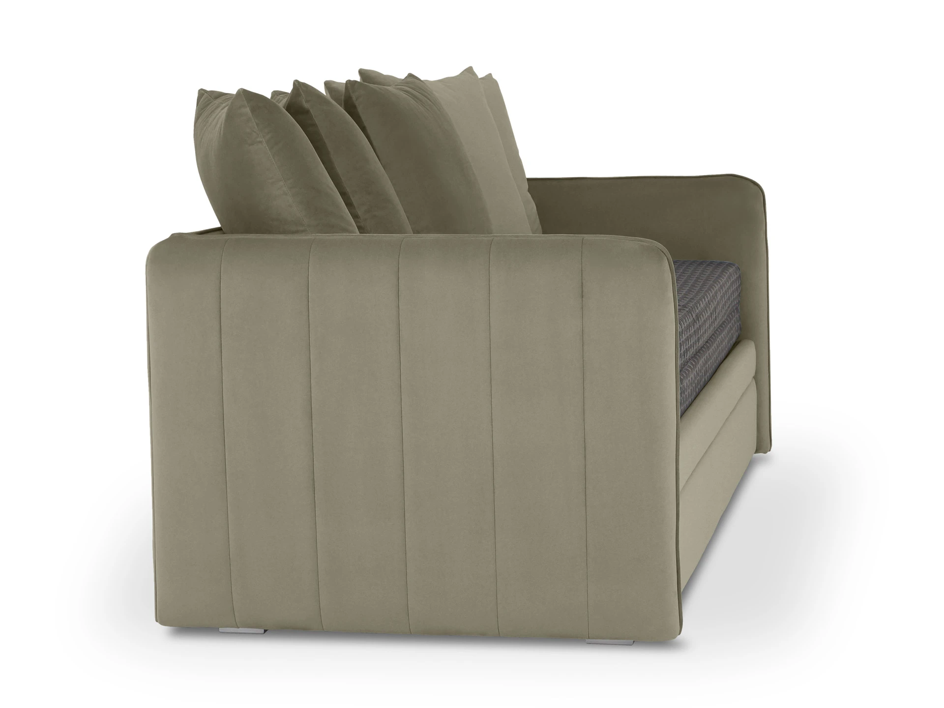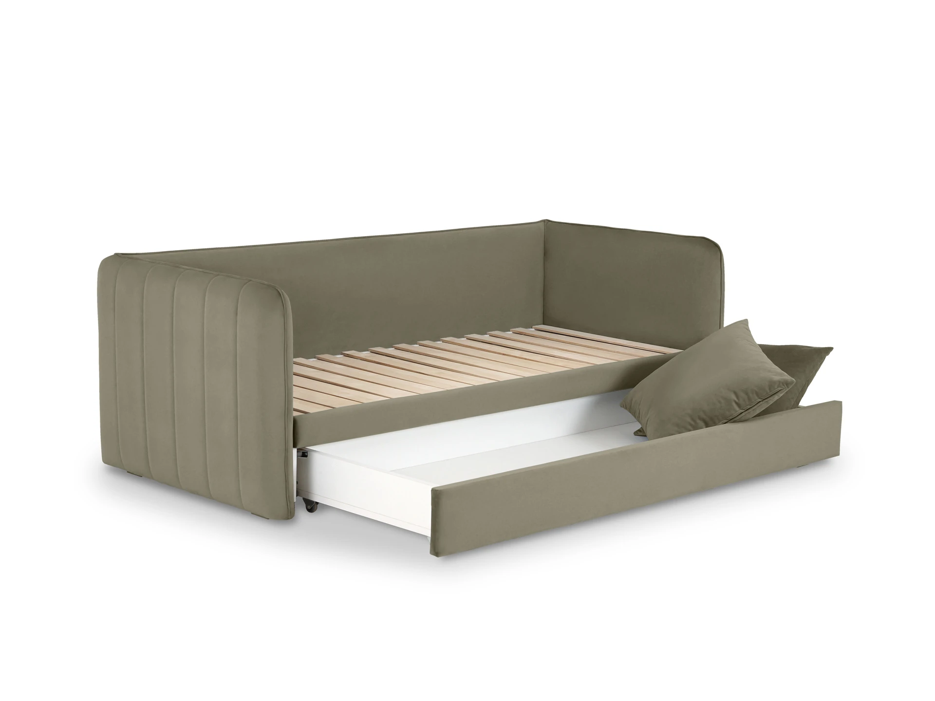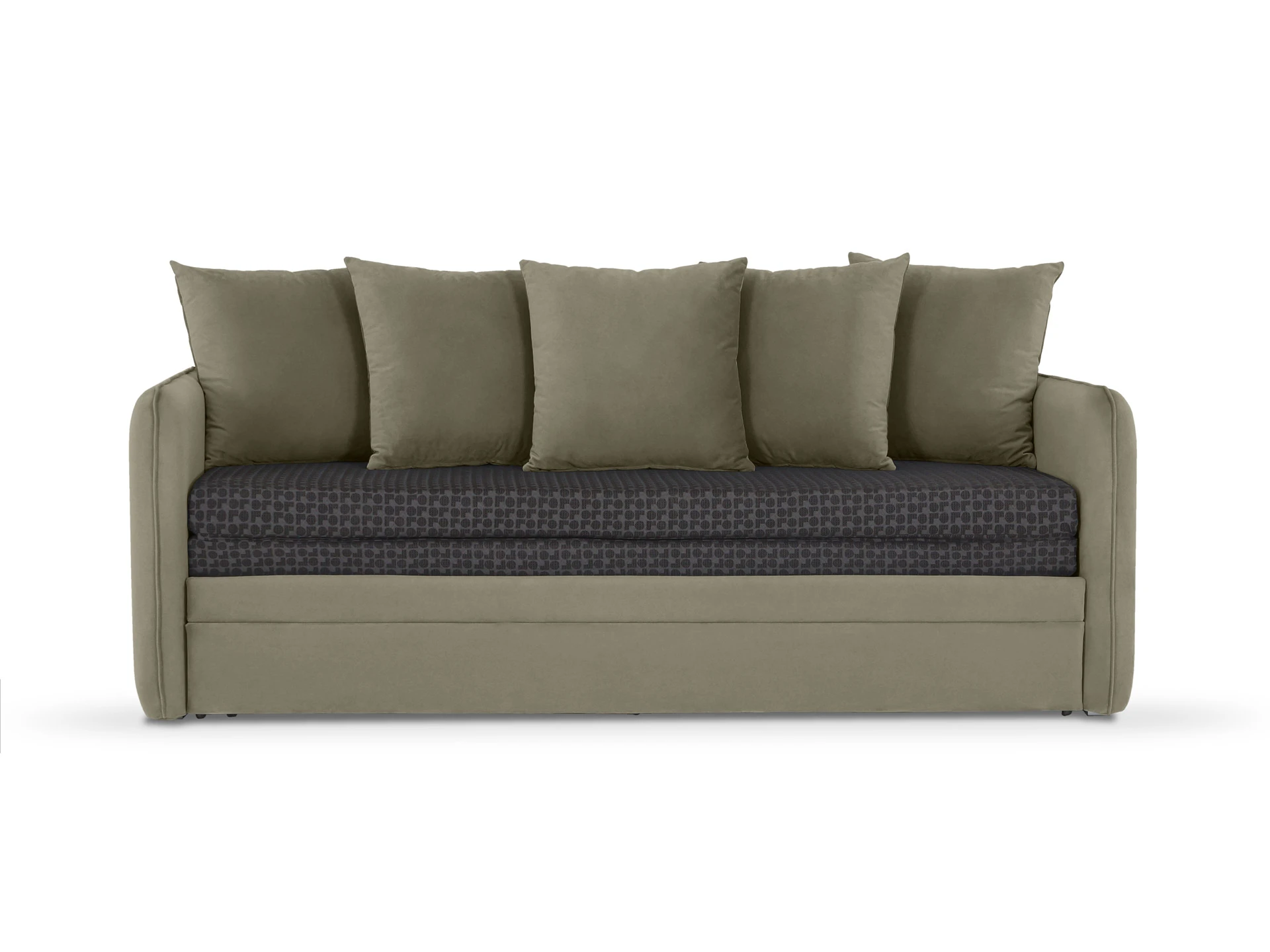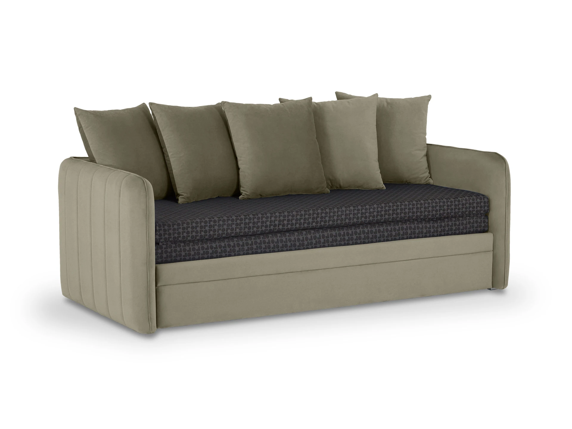 Todi — функциональная кушетка-кровать с двумя опциональными модулями. В собранном виде — это компактный диван, а в разложенном — спальное место размером 2000х1590х100 мм. Механизм трансформации — выкатной: при раскладывании достаточно выкатить вспомогательную секцию из-под сиденья и установить на нее блок ламелей. Конструкция проста и надежна для ежедневного использования. Также есть второй выкатной модуль, который можно использовать в качестве емкости для хранения или дополнительного спального места. Кушетка Todi — идеальный выбор для пространств средних и компактных размеров. Она гармонично впишется в гостиную, детскую, спальню, кухню. Каркас из деревянного бруса, в основе — породы хвойных: ель и сосна, влагостойкая березовая фанера. Мебель из этих материалов экологична, надежна и долговечна. В дизайне сделана ставка на лаконичность и универсальность. Мягкая высокая спинка и подлокотники находятся на одном уровне и имеют одинаковую толщину, что создаёт чувство уединения, безопасности. Пышные декоратиные подушки спинки подчеркивают комфорт, уют, позволяют максимально расслабить корпус. Рельефности добавляет спокойный декор в виде вертикальных линий строчки на боковинах и канта, который проходит по всему периметру изделия. Что придает ему целостный и завершенный вид. Благодаря ненавязчивому экстерьеру эта модель подружится с любым интерьерным стилем, главное — подобрать нужный цвет обивки. Todi — современная мебель с широким практическим спектром и безупречным исполнением. Кушетка установлена на пластмассовые опоры, высотой 20 мм. Имеют регулировку по высоте. Максимальная нагрузка на дно выдвижной секции - 100 кг, при условии ее равномерного распределения по площади основания (грузоподъемность в 100 кг регламентируется колесными опорами – 6 шт. по 25 кг на опору.). При использовании кушетки «Todi», в качестве раскладной 2-х спальной кровати, рекомендуется применять матрас раскладной конструкции, состоящий из двух частей. Размеры матраса в сложенном виде 2000 х 800 х 200 мм. Размеры матраса в разложенном виде 2000 х 1590 х 100 мм. Секция выкатная может использоваться как емкость для хранения, так и для организации спального места с матрасом размером 1800 х700 мм и высотой не более 140 мм. Матрасы покупаются отдельно. Кушетку можно приобрести без подушек. Цена указана со стоимостью подушек.