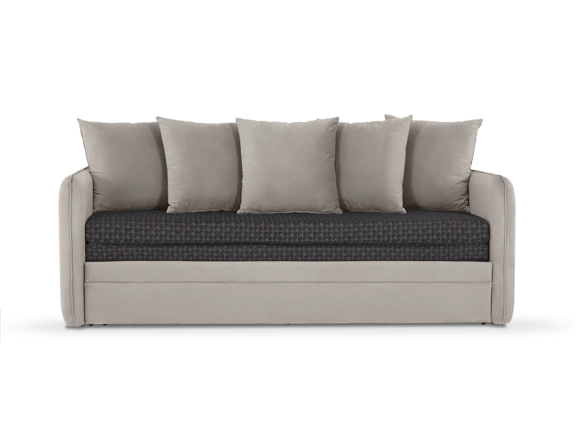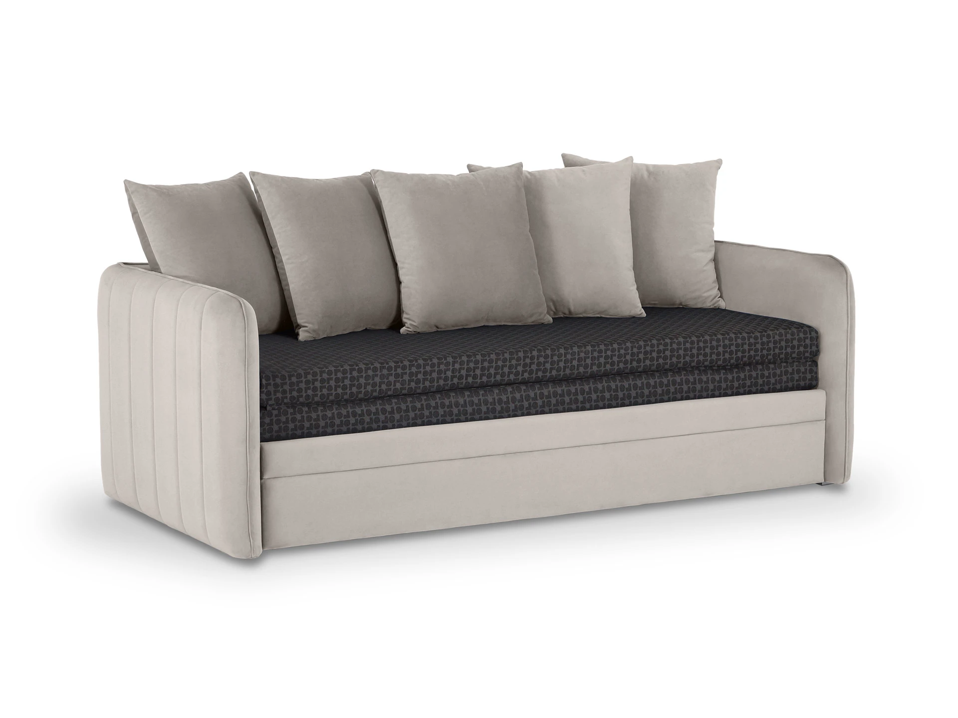 Todi — функциональная кушетка-кровать с двумя опциональными модулями. В собранном виде — это компактный диван, а в разложенном — спальное место размером 2000х1590х100 мм. Механизм трансформации — выкатной: при раскладывании достаточно выкатить вспомогательную секцию из-под сиденья и установить на нее блок ламелей. Конструкция проста и надежна для ежедневного использования. Также есть второй выкатной модуль, который можно использовать в качестве емкости для хранения или дополнительного спального места. Кушетка Todi — идеальный выбор для пространств средних и компактных размеров. Она гармонично впишется в гостиную, детскую, спальню, кухню. Каркас из деревянного бруса, в основе — породы хвойных: ель и сосна, влагостойкая березовая фанера. Мебель из этих материалов экологична, надежна и долговечна. В дизайне сделана ставка на лаконичность и универсальность. Мягкая высокая спинка и подлокотники находятся на одном уровне и имеют одинаковую толщину, что создаёт чувство уединения, безопасности. Пышные декоратиные подушки спинки подчеркивают комфорт, уют, позволяют максимально расслабить корпус. Рельефности добавляет спокойный декор в виде вертикальных линий строчки на боковинах и канта, который проходит по всему периметру изделия. Что придает ему целостный и завершенный вид. Благодаря ненавязчивому экстерьеру эта модель подружится с любым интерьерным стилем, главное — подобрать нужный цвет обивки. Todi — современная мебель с широким практическим спектром и безупречным исполнением. Кушетка установлена на пластмассовые опоры, высотой 20 мм. Имеют регулировку по высоте. Максимальная нагрузка на дно выдвижной секции - 100 кг, при условии ее равномерного распределения по площади основания (грузоподъемность в 100 кг регламентируется колесными опорами – 6 шт. по 25 кг на опору.). При использовании кушетки «Todi», в качестве раскладной 2-х спальной кровати, рекомендуется применять матрас раскладной конструкции, состоящий из двух частей. Размеры матраса в сложенном виде 2000 х 800 х 200 мм. Размеры матраса в разложенном виде 2000 х 1590 х 100 мм. Секция выкатная может использоваться как емкость для хранения, так и для организации спального места с матрасом размером 1800 х700 мм и высотой не более 140 мм. Матрасы покупаются отдельно. Кушетку можно приобрести без подушек. Цена указана со стоимостью подушек.
