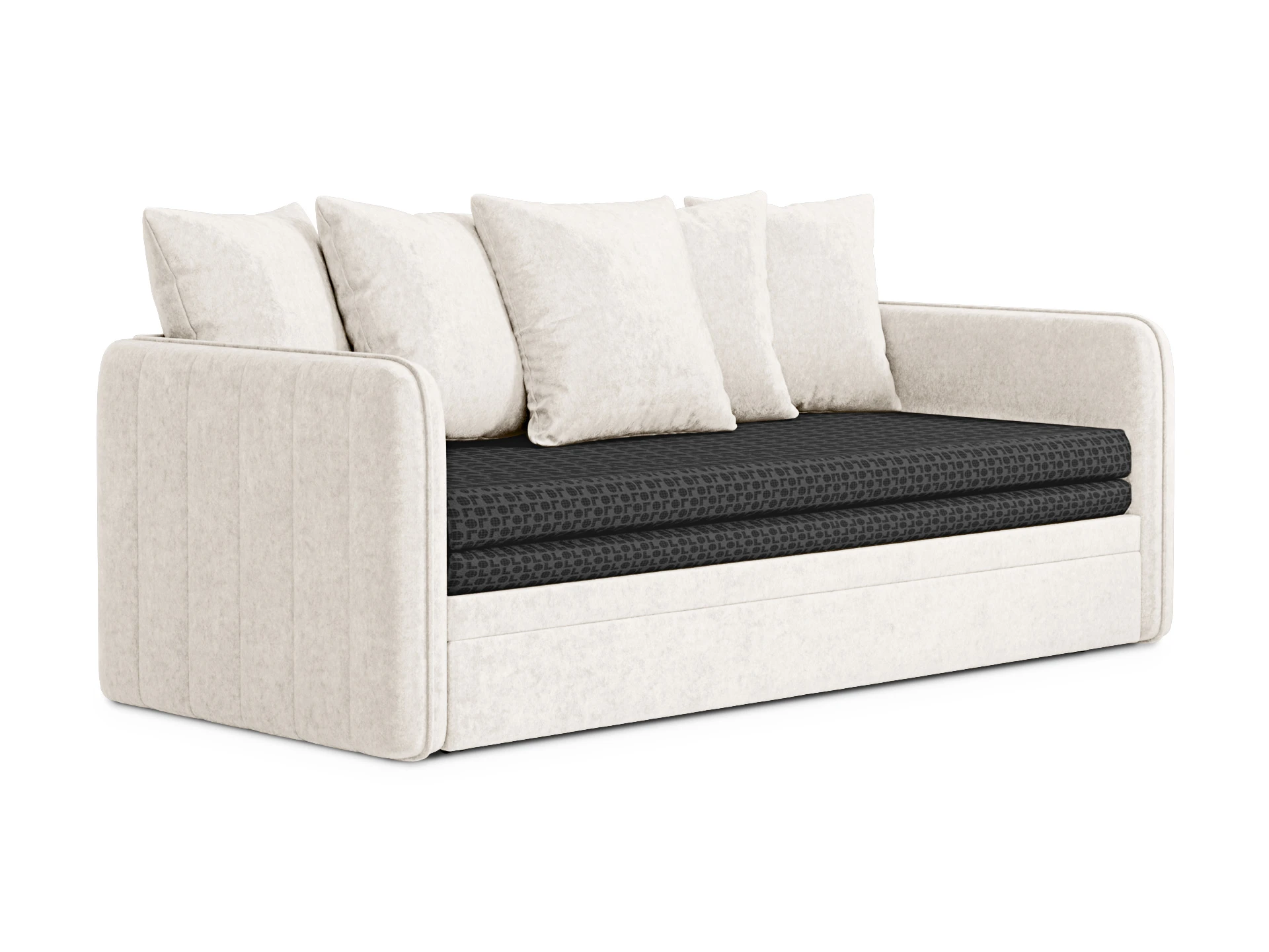 Todi — функциональная кушетка-кровать с двумя опциональными модулями. В собранном виде — это компактный диван, а в разложенном — спальное место размером 2000х1590х100 мм. Механизм трансформации — выкатной: при раскладывании достаточно выкатить вспомогательную секцию из-под сиденья и установить на нее блок ламелей. Конструкция проста и надежна для ежедневного использования. Также есть второй выкатной модуль, который можно использовать в качестве емкости для хранения или дополнительного спального места. Кушетка Todi — идеальный выбор для пространств средних и компактных размеров. Она гармонично впишется в гостиную, детскую, спальню, кухню. Каркас из деревянного бруса, в основе — породы хвойных: ель и сосна, влагостойкая березовая фанера. Мебель из этих материалов экологична, надежна и долговечна. В дизайне сделана ставка на лаконичность и универсальность. Мягкая высокая спинка и подлокотники находятся на одном уровне и имеют одинаковую толщину, что создаёт чувство уединения, безопасности. Пышные декоратиные подушки спинки подчеркивают комфорт, уют, позволяют максимально расслабить корпус. Рельефности добавляет спокойный декор в виде вертикальных линий строчки на боковинах и канта, который проходит по всему периметру изделия. Что придает ему целостный и завершенный вид. Благодаря ненавязчивому экстерьеру эта модель подружится с любым интерьерным стилем, главное — подобрать нужный цвет обивки. Todi — современная мебель с широким практическим спектром и безупречным исполнением. Кушетка установлена на пластмассовые опоры, высотой 20 мм. Имеют регулировку по высоте. Максимальная нагрузка на дно выдвижной секции - 100 кг, при условии ее равномерного распределения по площади основания (грузоподъемность в 100 кг регламентируется колесными опорами – 6 шт. по 25 кг на опору.). При использовании кушетки «Todi», в качестве раскладной 2-х спальной кровати, рекомендуется применять матрас раскладной конструкции, состоящий из двух частей. Размеры матраса в сложенном виде 2000 х 800 х 200 мм. Размеры матраса в разложенном виде 2000 х 1590 х 100 мм. Секция выкатная может использоваться как емкость для хранения, так и для организации спального места с матрасом размером 1800 х700 мм и высотой не более 140 мм. Матрасы покупаются отдельно. Кушетку можно приобрести без подушек. Цена указана со стоимостью подушек.
