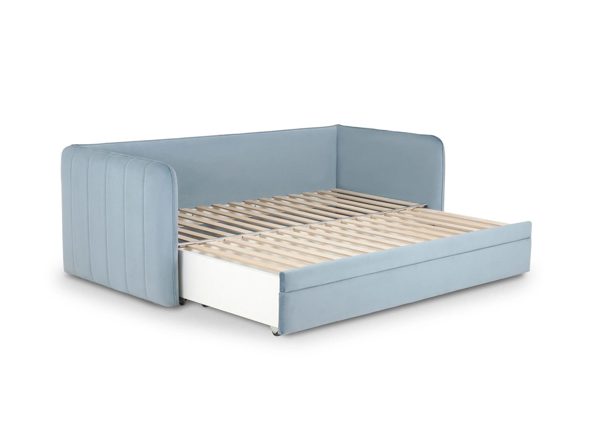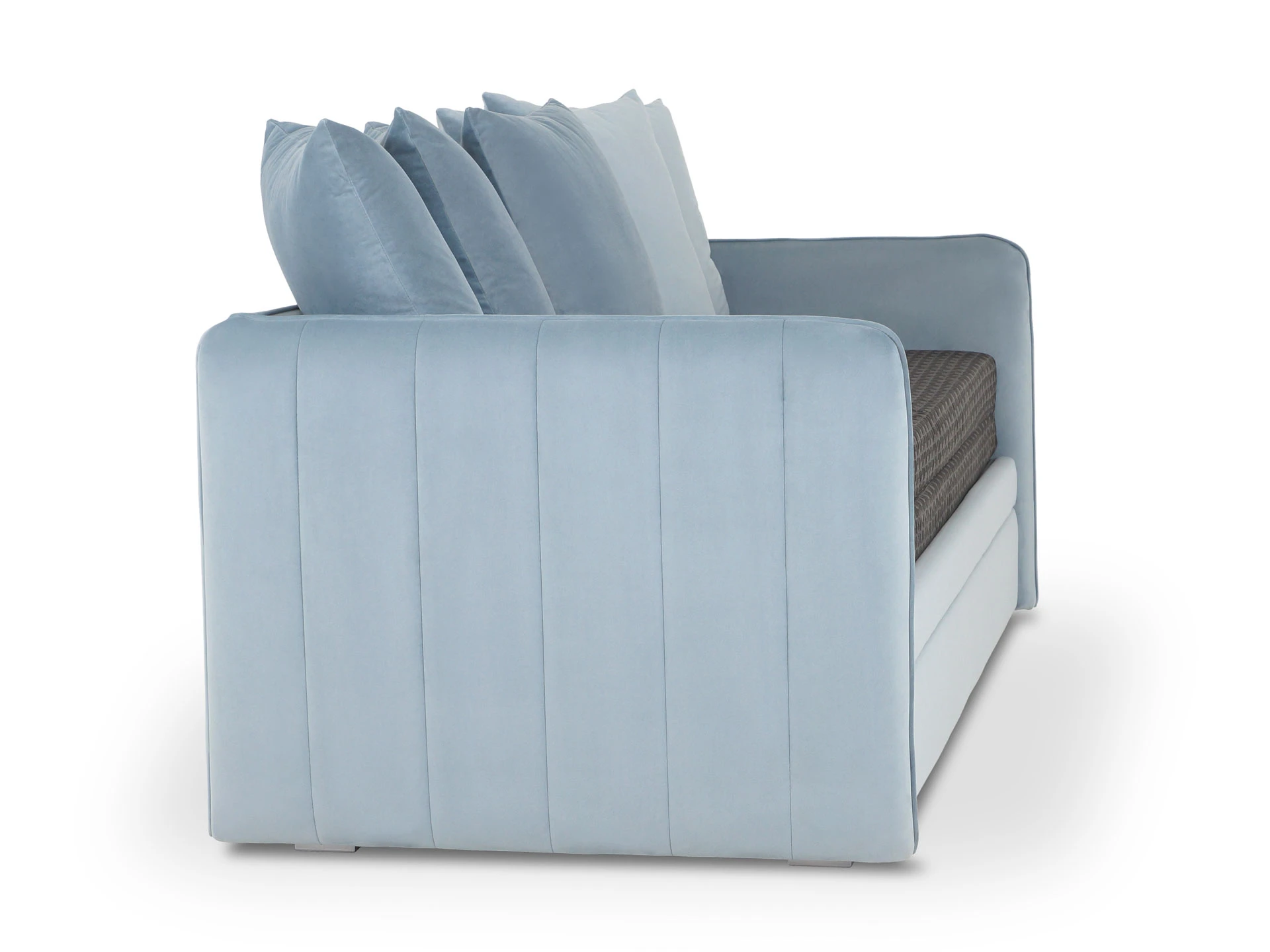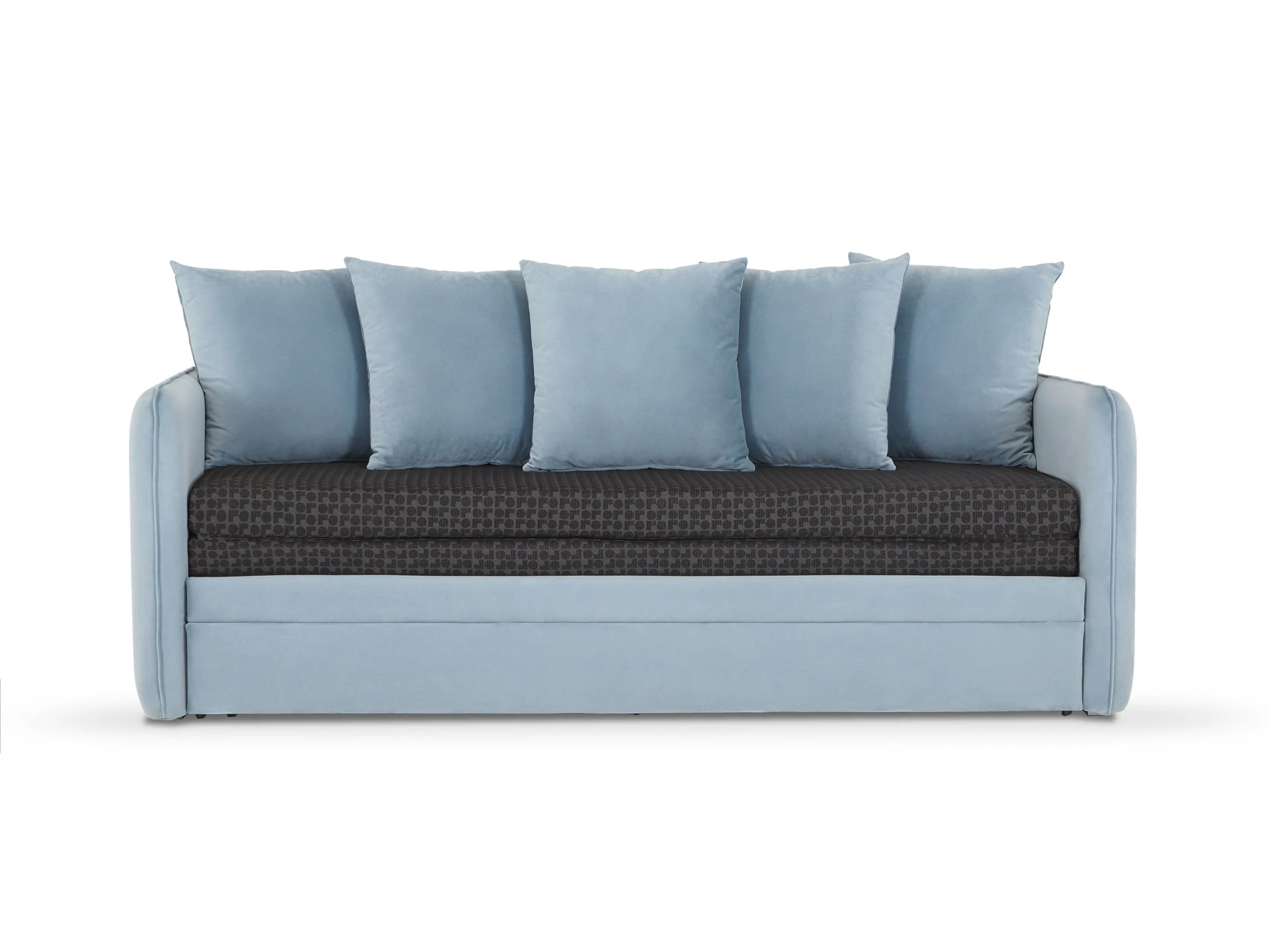 Todi — функциональная кушетка-кровать с двумя опциональными модулями. В собранном виде — это компактный диван, а в разложенном — спальное место размером 2000х1590х100 мм. Механизм трансформации — выкатной: при раскладывании достаточно выкатить вспомогательную секцию из-под сиденья и установить на нее блок ламелей. Конструкция проста и надежна для ежедневного использования. Также есть второй выкатной модуль, который можно использовать в качестве емкости для хранения или дополнительного спального места. Кушетка Todi — идеальный выбор для пространств средних и компактных размеров. Она гармонично впишется в гостиную, детскую, спальню, кухню. Каркас из деревянного бруса, в основе — породы хвойных: ель и сосна, влагостойкая березовая фанера. Мебель из этих материалов экологична, надежна и долговечна. В дизайне сделана ставка на лаконичность и универсальность. Мягкая высокая спинка и подлокотники находятся на одном уровне и имеют одинаковую толщину, что создаёт чувство уединения, безопасности. Пышные декоратиные подушки спинки подчеркивают комфорт, уют, позволяют максимально расслабить корпус. Рельефности добавляет спокойный декор в виде вертикальных линий строчки на боковинах и канта, который проходит по всему периметру изделия. Что придает ему целостный и завершенный вид. Благодаря ненавязчивому экстерьеру эта модель подружится с любым интерьерным стилем, главное — подобрать нужный цвет обивки. Todi — современная мебель с широким практическим спектром и безупречным исполнением. Кушетка установлена на пластмассовые опоры, высотой 20 мм. Имеют регулировку по высоте. Максимальная нагрузка на дно выдвижной секции - 100 кг, при условии ее равномерного распределения по площади основания (грузоподъемность в 100 кг регламентируется колесными опорами – 6 шт. по 25 кг на опору.). При использовании кушетки «Todi», в качестве раскладной 2-х спальной кровати, рекомендуется применять матрас раскладной конструкции, состоящий из двух частей. Размеры матраса в сложенном виде 2000 х 800 х 200 мм. Размеры матраса в разложенном виде 2000 х 1590 х 100 мм. Секция выкатная может использоваться как емкость для хранения, так и для организации спального места с матрасом размером 1800 х700 мм и высотой не более 140 мм. Матрасы покупаются отдельно. Кушетку можно приобрести без подушек. Цена указана со стоимостью подушек.