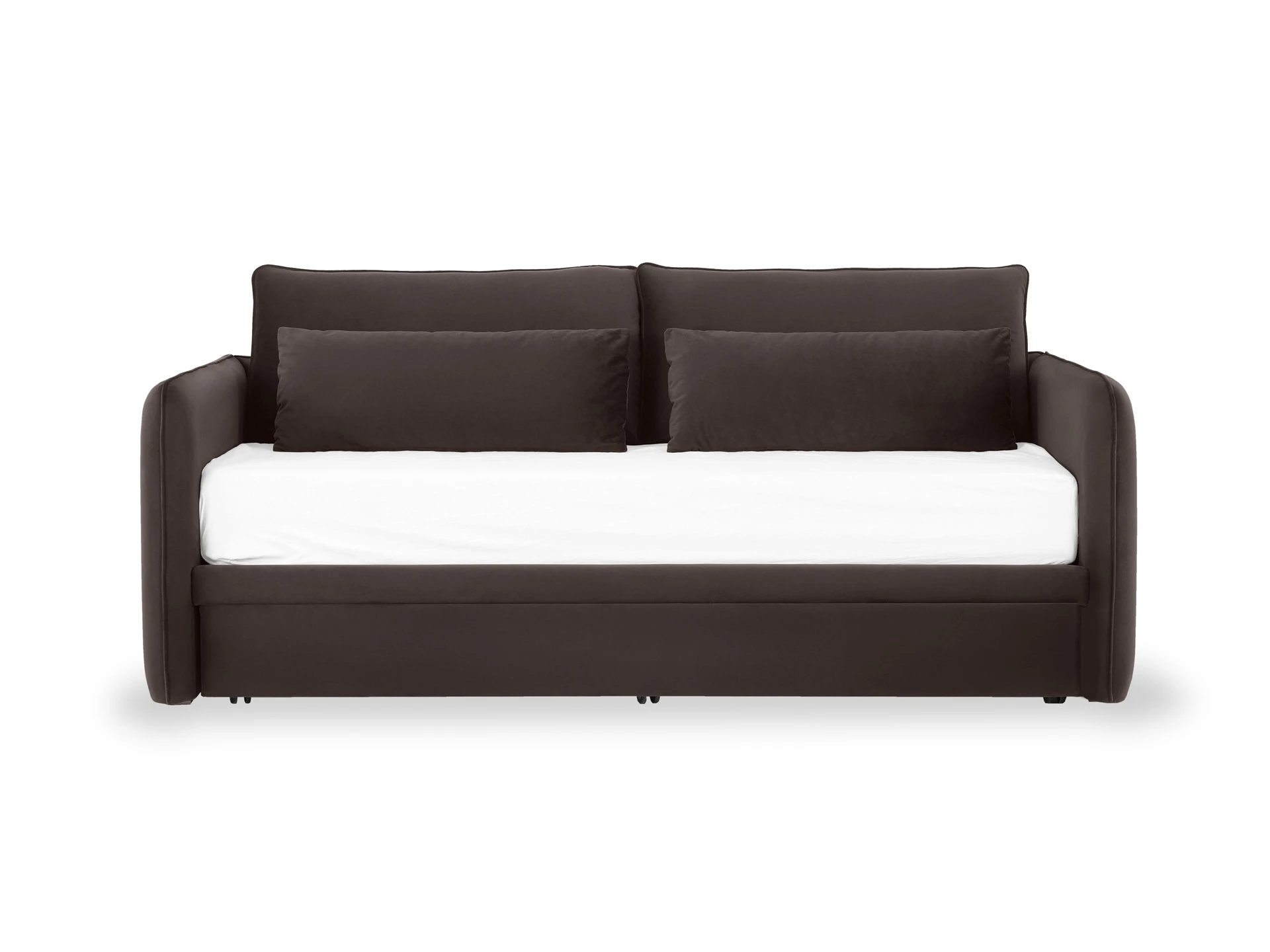 Кушетка Vicari — идеальный вариант для тех, кто любит лаконичный и современный стиль, а также ценит функциональные возможности. Кушетка может выполнять роль дивана, кровати, ёмкости для хранения. Подходит для размещения в любой локации. Практичное решение для детской или молодежной комнаты. Конструкция отличается четкой геометрий, главенством прямых линий с плавным закруглением углов. Что делает модель эргономичной и безопасной. Сиденье имеет комфортную глубину и высоту, спинка оснащена двумя большими подушками из мягкого пенополиуретана, что даёт дополнительную поддержку корпусу и обеспечивает максимально расслабленные ощущения. Подлокотники также укомплектованы прямоугольными подушками из синтепуха, расположение которых можно менять по желанию. Подушки и декоративные вертикальные строчки боковин придают кушетке уютный, объёмный и многослойный вид. Выкатная секция может быть дополнительным спальным местом с нагрузкой до 100 кг. и ящиком для хранения текстиля, сезонных вещей. Можно выбрать цвет и фактуру обивки, которая будет соответствовать вашим индивидуальным предпочтениям. Стилистически нейтральная и практичная кушетка Vicari поможет в реализации разных интерьерных решений и станет элегантным дополнением домашнего пространства. Кушетка установлена на пластмассовые опоры, высотой 20 мм. Имеют регулировку по высоте. Выкатной ящик установлен на колесные опоры. Может использоваться как дополнительное спальное место, размером 1900х900 мм. Выдвижение ящика производится за нижнюю кромку фасада. Лицевой чехол несъемный. Кушетка комплектуется набором подушек, состоящим из двух больших подушек и двух малых. Состав наполнения больших подушек: пенополиуретан (супермягкий), холлофайбер. Состав наполнения малых подушек: синтепух. Лицевые чехлы подушек – съемные. Матрасы приобретаются отдельно. Размер верхнего спального места: 2000х900мм. Максимальная нагрузка на спальное место – 120 кг. Рекомендуемая высота матраса верхнего спального места: 160 — 230 мм. Размер спального места нижнего выкатного ящика: 1900х900мм. Максимальная нагрузка на нижнее спальное место – 100 кг. Максимальная высота матраса нижнего выкатного ящика: 140 мм. Подушки входят в стоимость кушетки.