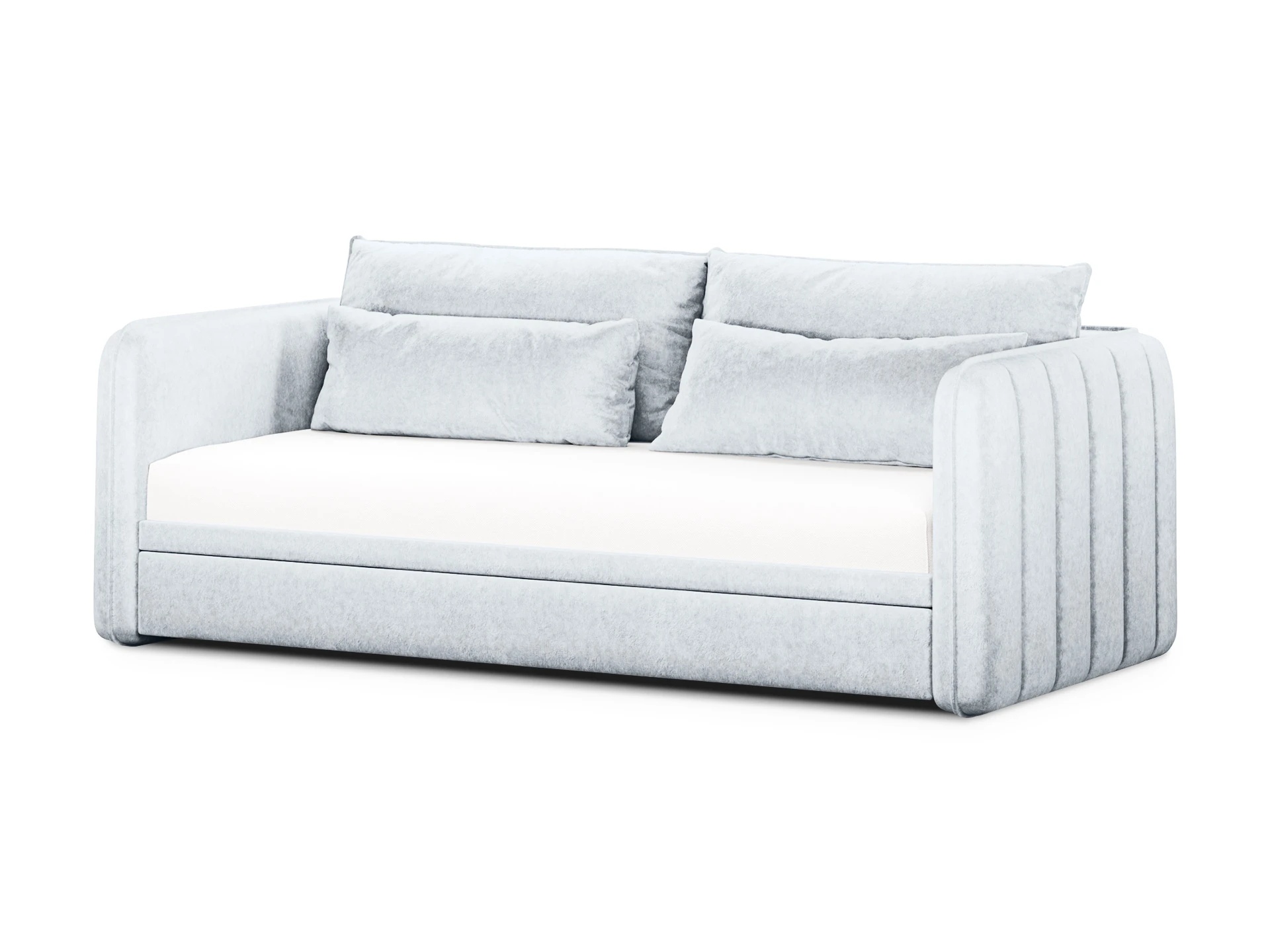Кушетка Vicari — идеальный вариант для тех, кто любит лаконичный и современный стиль, а также ценит функциональные возможности. Кушетка может выполнять роль дивана, кровати, ёмкости для хранения. Подходит для размещения в любой локации. Практичное решение для детской или молодежной комнаты. Конструкция отличается четкой геометрий, главенством прямых линий с плавным закруглением углов. Что делает модель эргономичной и безопасной. Сиденье имеет комфортную глубину и высоту, спинка оснащена двумя большими подушками из мягкого пенополиуретана, что даёт дополнительную поддержку корпусу и обеспечивает максимально расслабленные ощущения. Подлокотники также укомплектованы прямоугольными подушками из синтепуха, расположение которых можно менять по желанию. Подушки и декоративные вертикальные строчки боковин придают кушетке уютный, объёмный и многослойный вид. Выкатная секция может быть дополнительным спальным местом с нагрузкой до 100 кг. и ящиком для хранения текстиля, сезонных вещей. Можно выбрать цвет и фактуру обивки, которая будет соответствовать вашим индивидуальным предпочтениям. Стилистически нейтральная и практичная кушетка Vicari поможет в реализации разных интерьерных решений и станет элегантным дополнением домашнего пространства. Кушетка установлена на пластмассовые опоры, высотой 20 мм. Имеют регулировку по высоте. Выкатной ящик установлен на колесные опоры. Может использоваться как дополнительное спальное место, размером 1900х900 мм. Выдвижение ящика производится за нижнюю кромку фасада. Лицевой чехол несъемный. Кушетка комплектуется набором подушек, состоящим из двух больших подушек и двух малых. Состав наполнения больших подушек: пенополиуретан (супермягкий), холлофайбер. Состав наполнения малых подушек: синтепух. Лицевые чехлы подушек – съемные. Матрасы приобретаются отдельно. Размер верхнего спального места: 2000х900мм. Максимальная нагрузка на спальное место – 120 кг. Рекомендуемая высота матраса верхнего спального места: 160 — 230 мм. Размер спального места нижнего выкатного ящика: 1900х900мм. Максимальная нагрузка на нижнее спальное место – 100 кг. Максимальная высота матраса нижнего выкатного ящика: 140 мм. Подушки входят в стоимость кушетки.