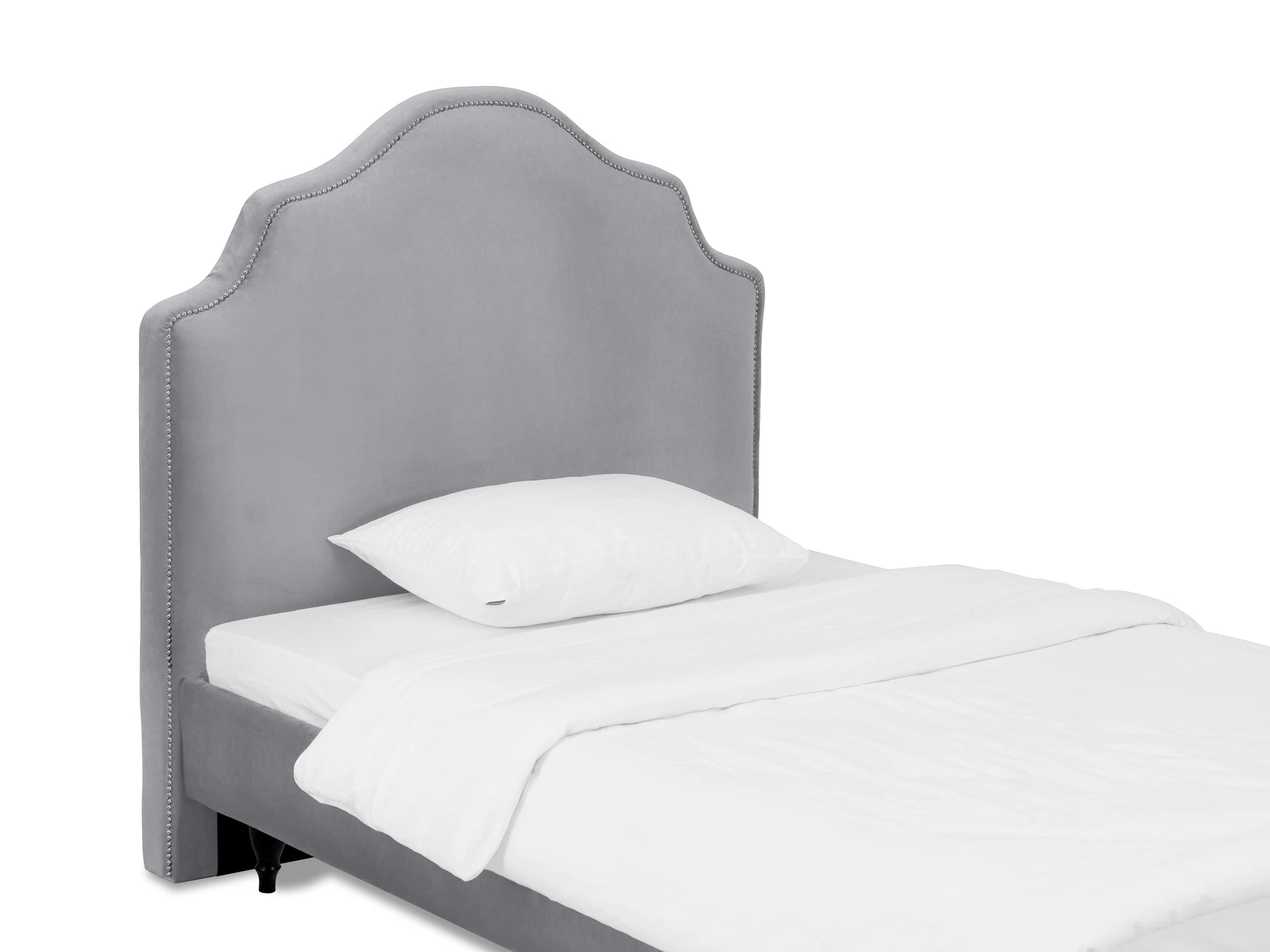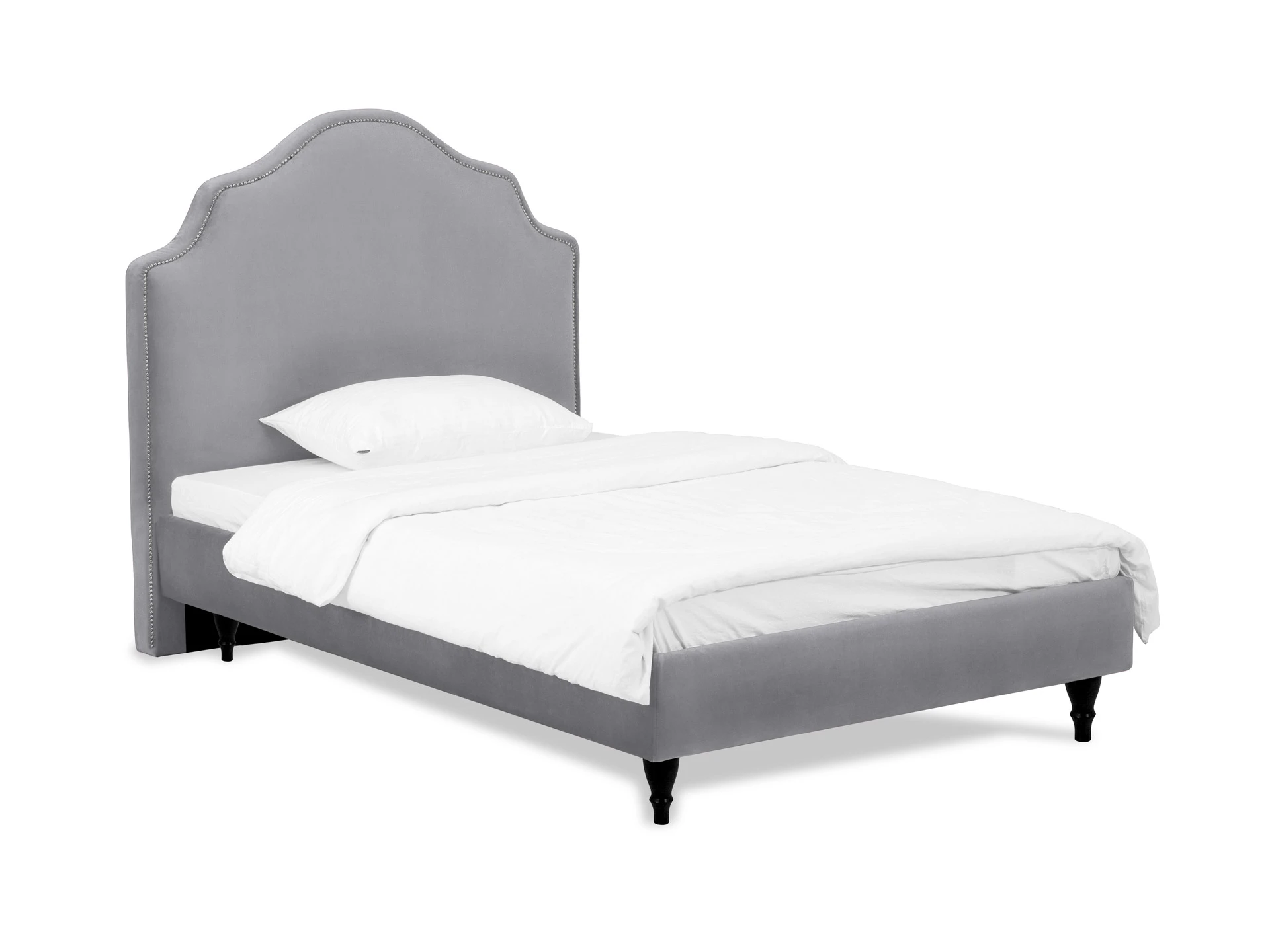 Кровать односпальная. Спинка кровати декорирована молдингом, установлена на пластмассовые опоры. Основание установлено на ножки из массива дерева и обрамлено мягкими царгами. Размер спального места: 1200х2000 мм.