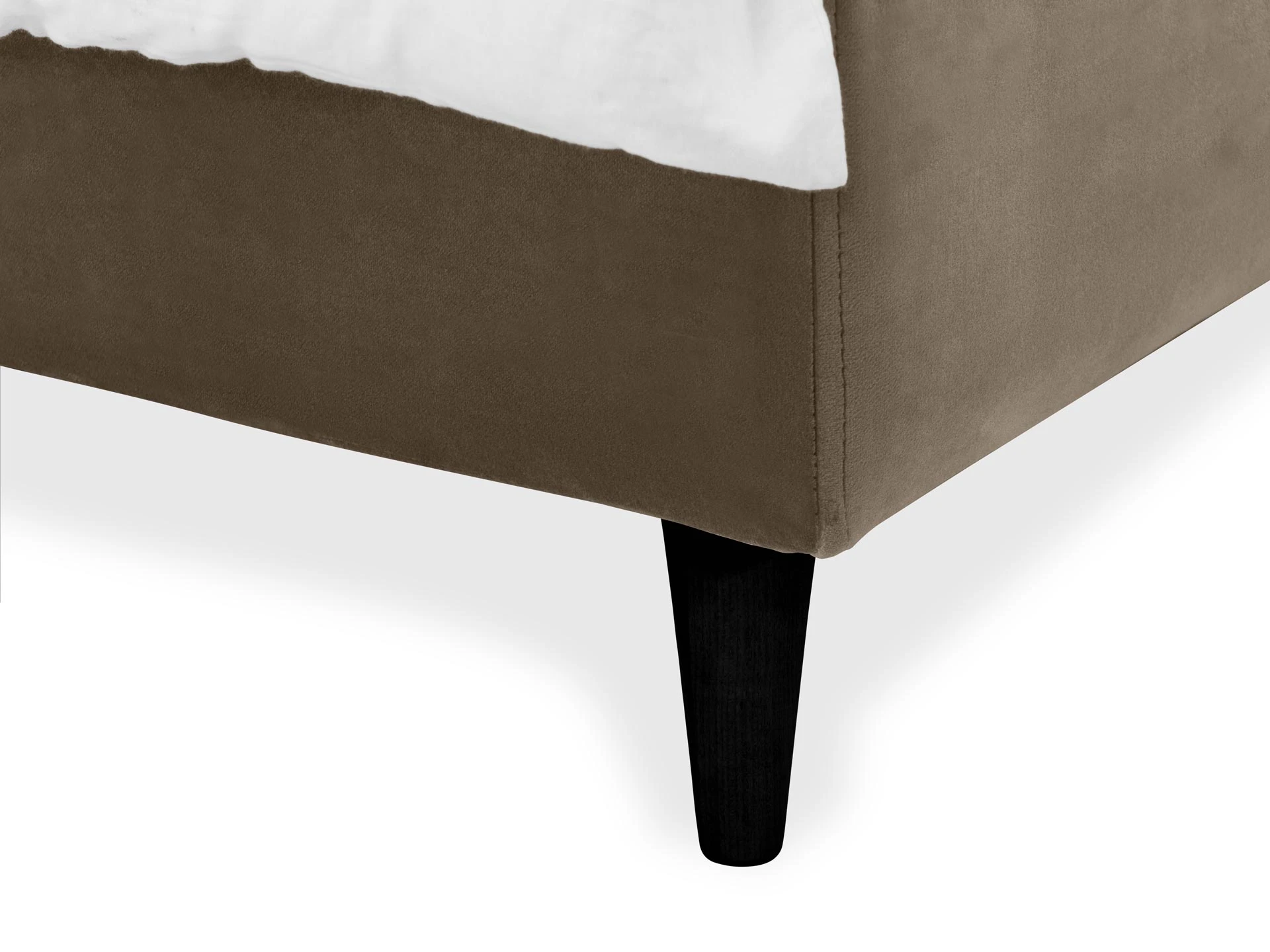Кровать односпальная. Спинка кровати декорирована молдингом, установлена на пластмассовые опоры. Основание установлено на ножки из массива дерева и обрамлено мягкими царгами. Размер спального места: 1200х2000 мм.