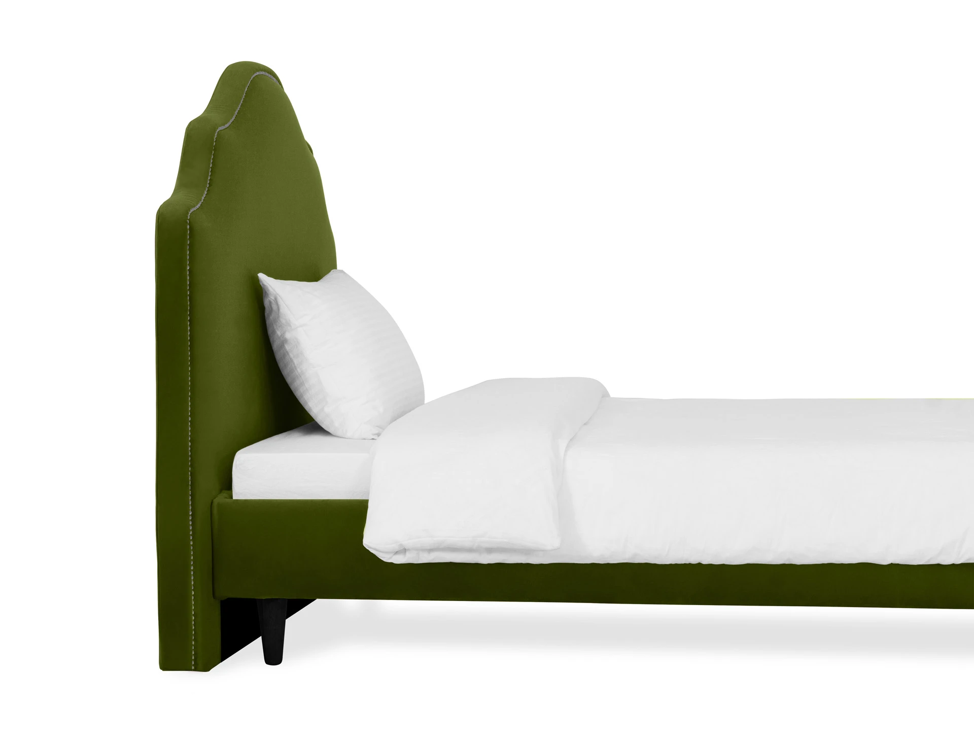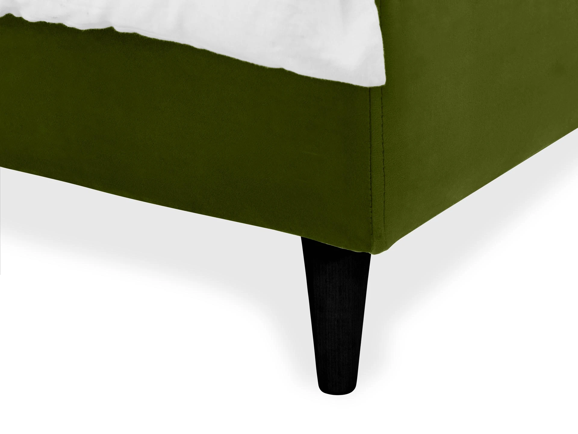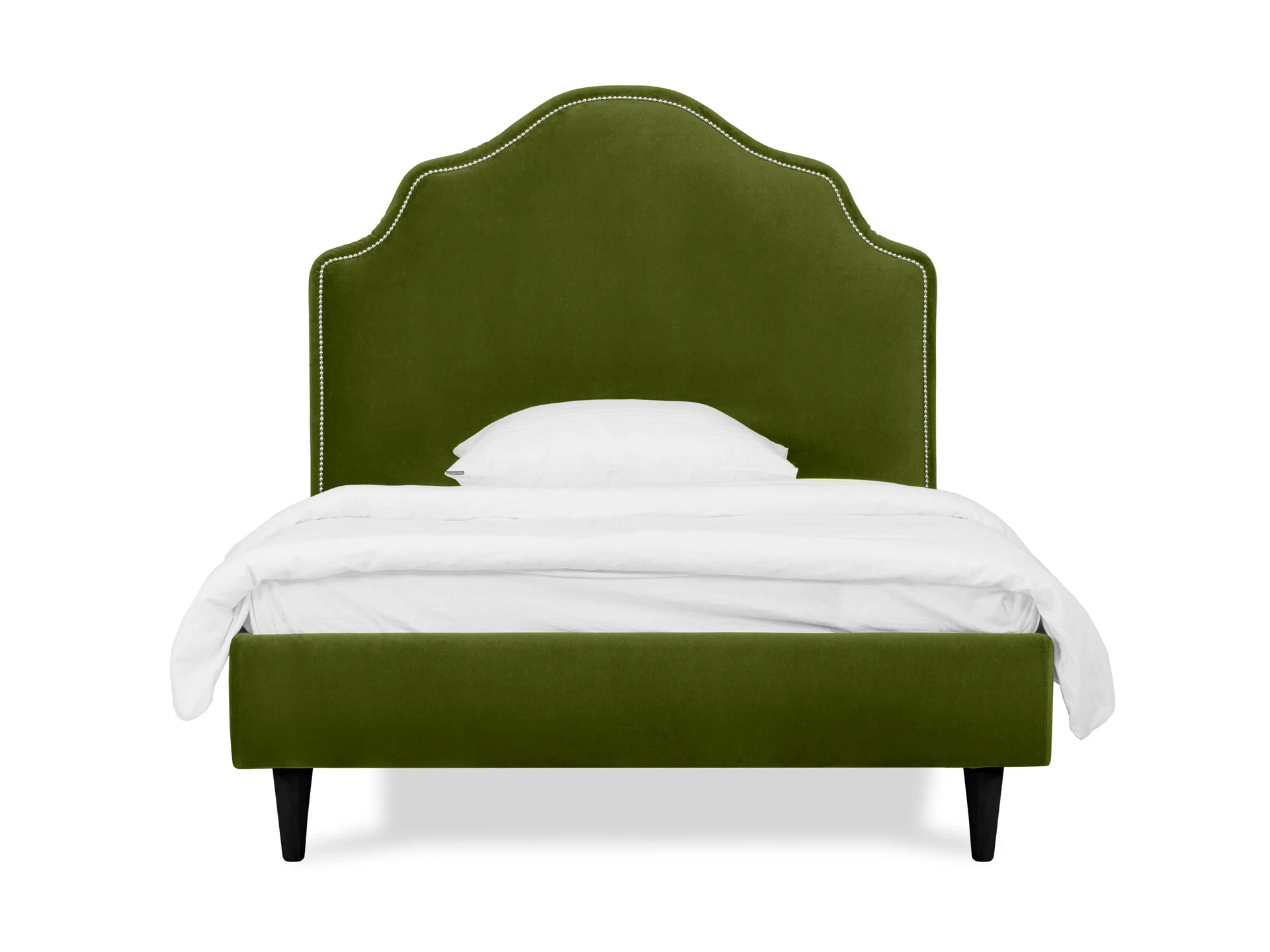 Кровать односпальная. Спинка кровати декорирована молдингом, установлена на пластмассовые опоры. Основание установлено на ножки из массива дерева и обрамлено мягкими царгами. Размер спального места: 1200х2000 мм.