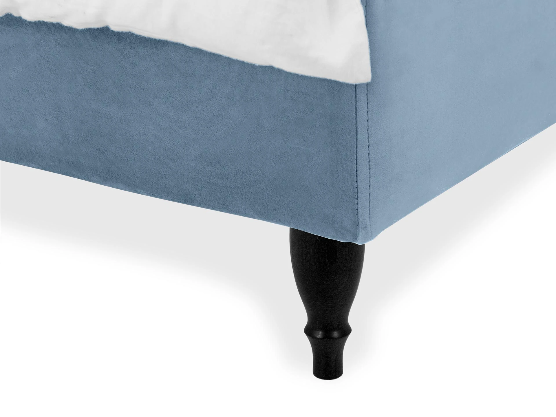 Кровать односпальная. Спинка кровати декорирована молдингом, установлена на пластмассовые опоры. Основание установлено на ножки из массива дерева и обрамлено мягкими царгами. Размер спального места: 1200х2000 мм.