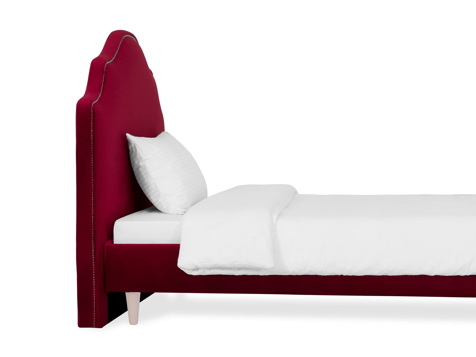 Кровать односпальная. Спинка кровати декорирована молдингом, установлена на пластмассовые опоры. Основание установлено на ножки из массива дерева и обрамлено мягкими царгами. Размер спального места: 1200х2000 мм.