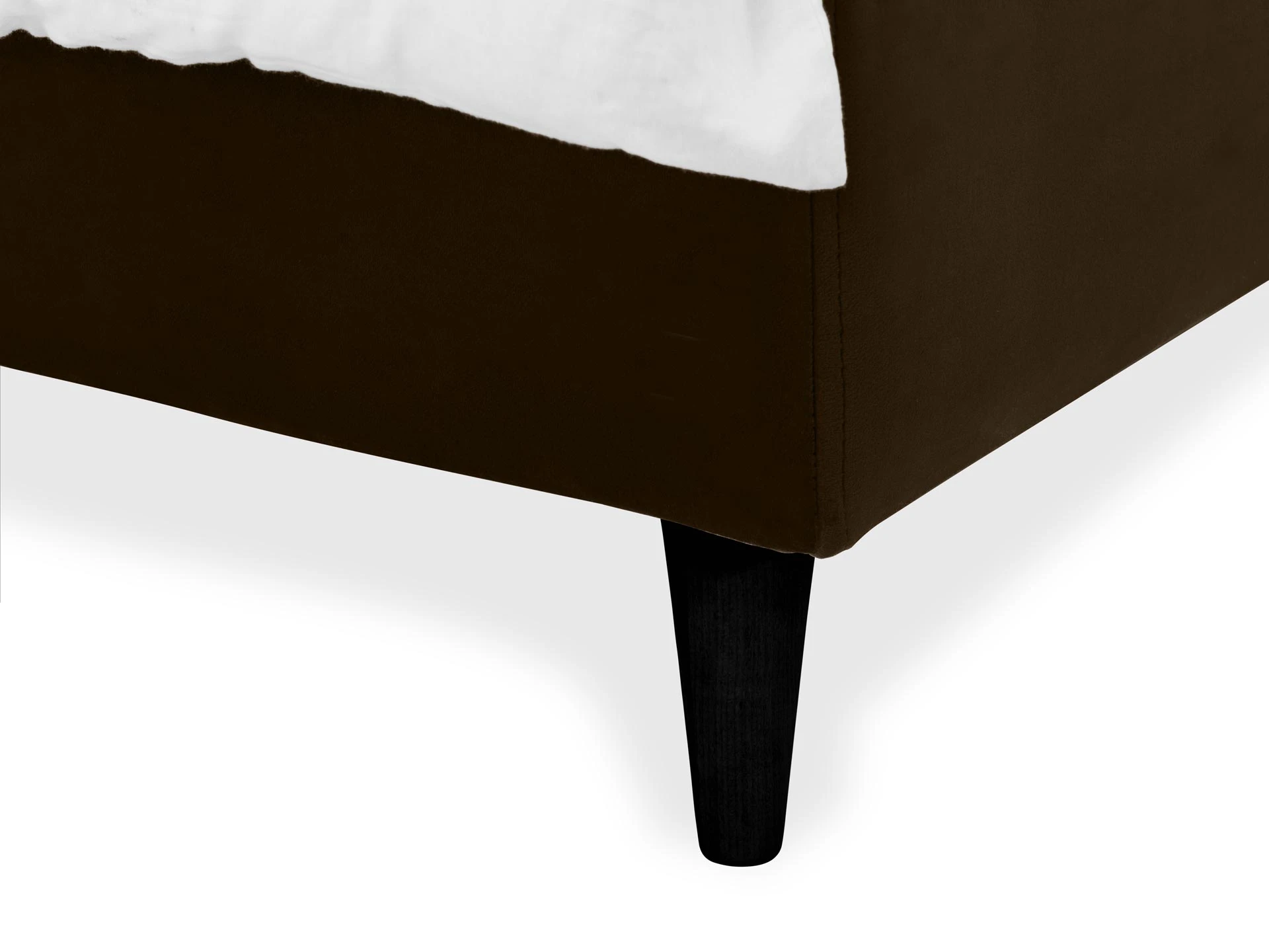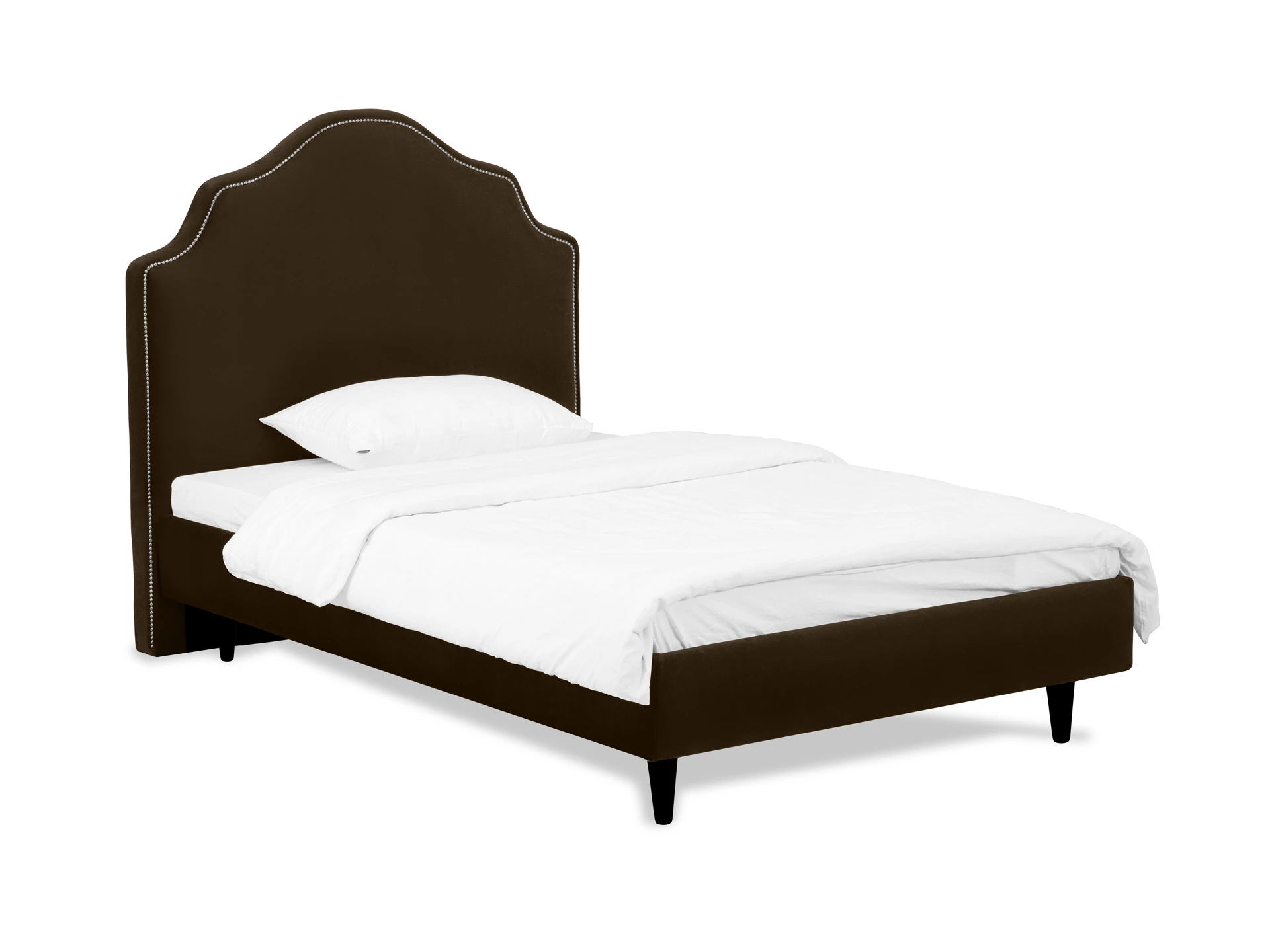 Кровать односпальная. Спинка кровати декорирована молдингом, установлена на пластмассовые опоры. Основание установлено на ножки из массива дерева и обрамлено мягкими царгами. Размер спального места: 1200х2000 мм.