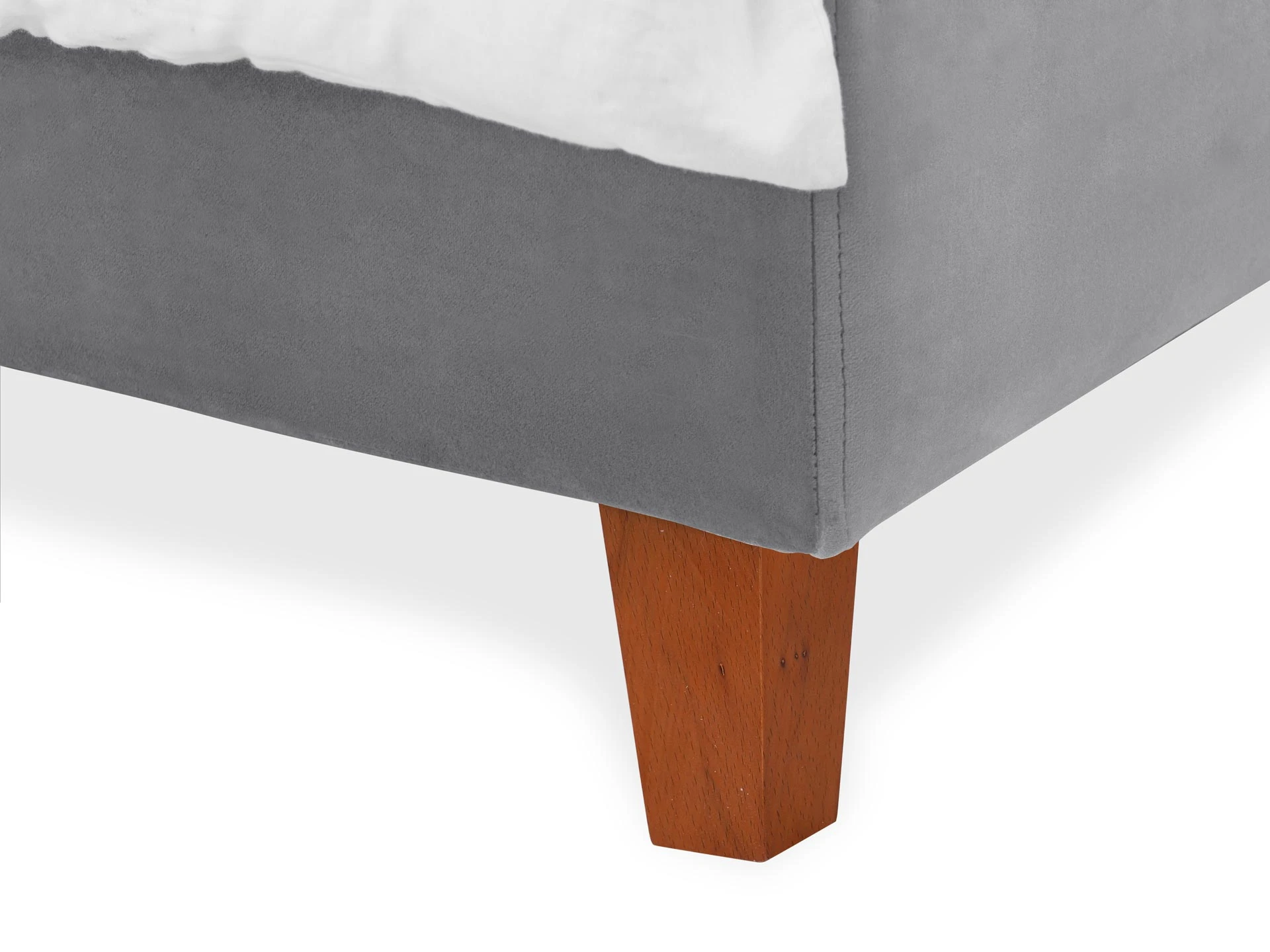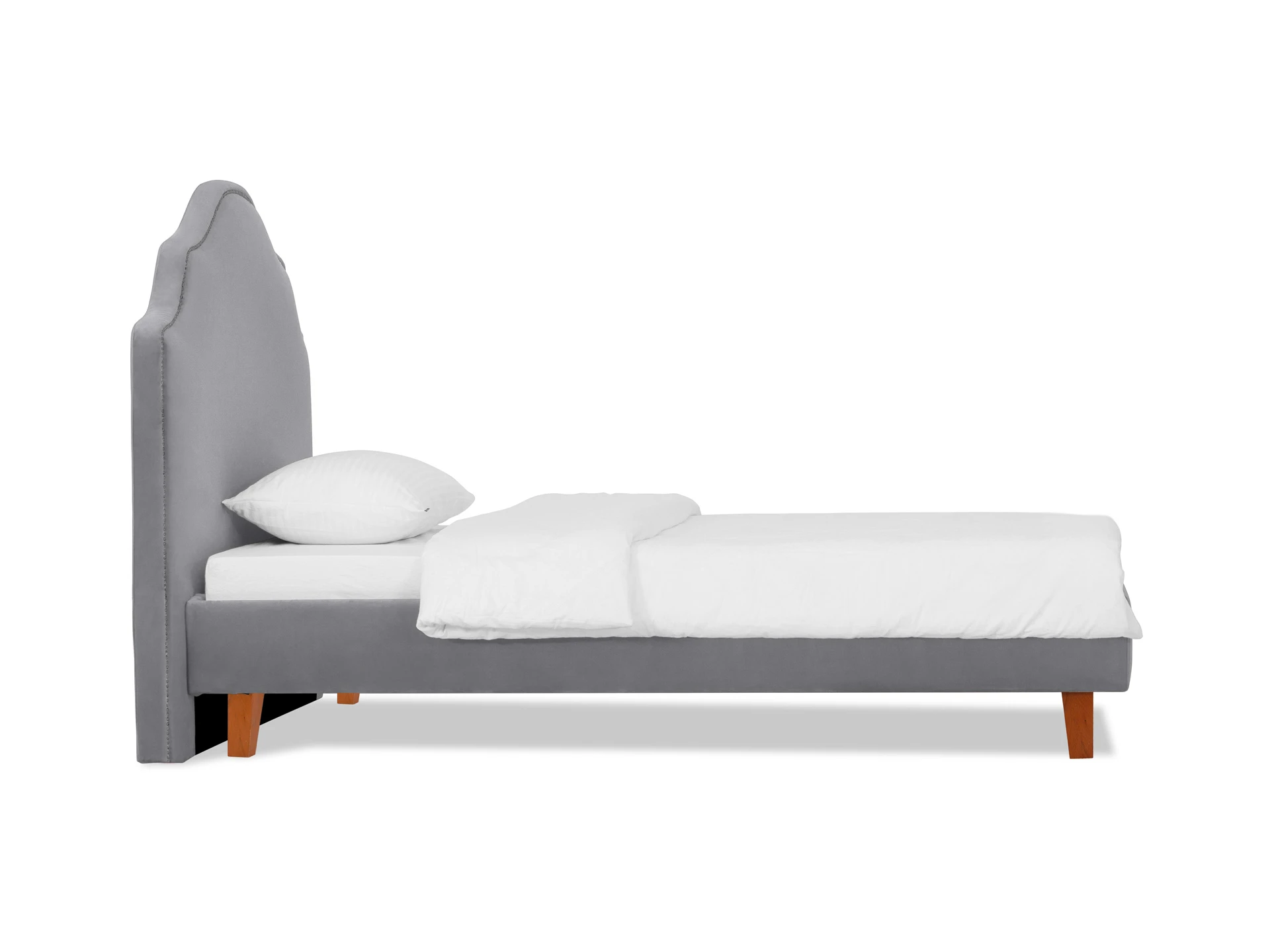Кровать односпальная. Спинка кровати декорирована молдингом, установлена на пластмассовые опоры. Основание установлено на ножки из массива дерева и обрамлено мягкими царгами. Размер спального места: 1200х2000 мм.
