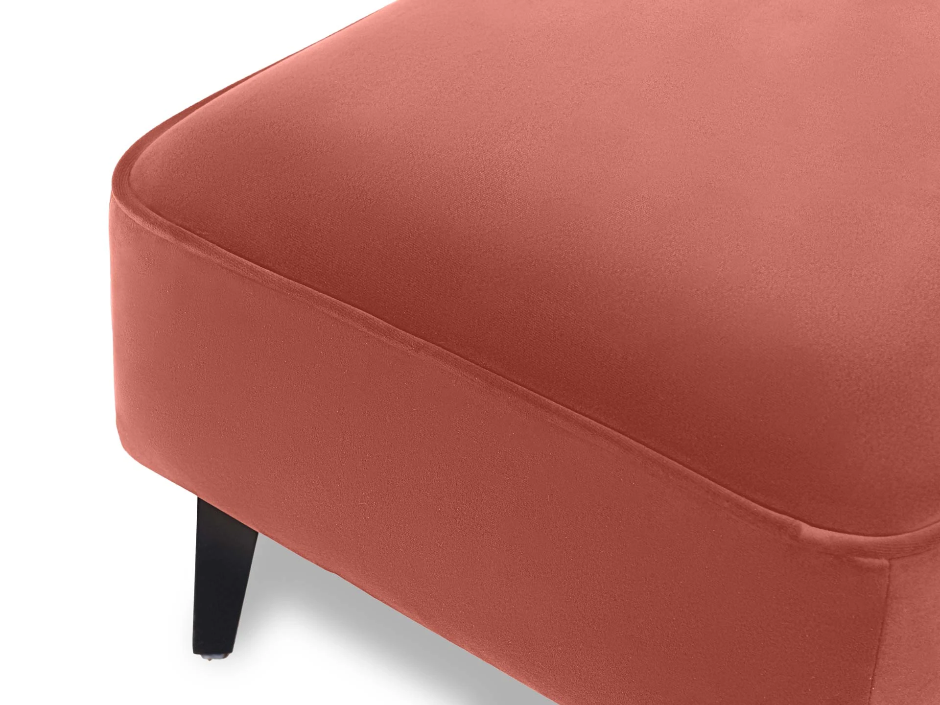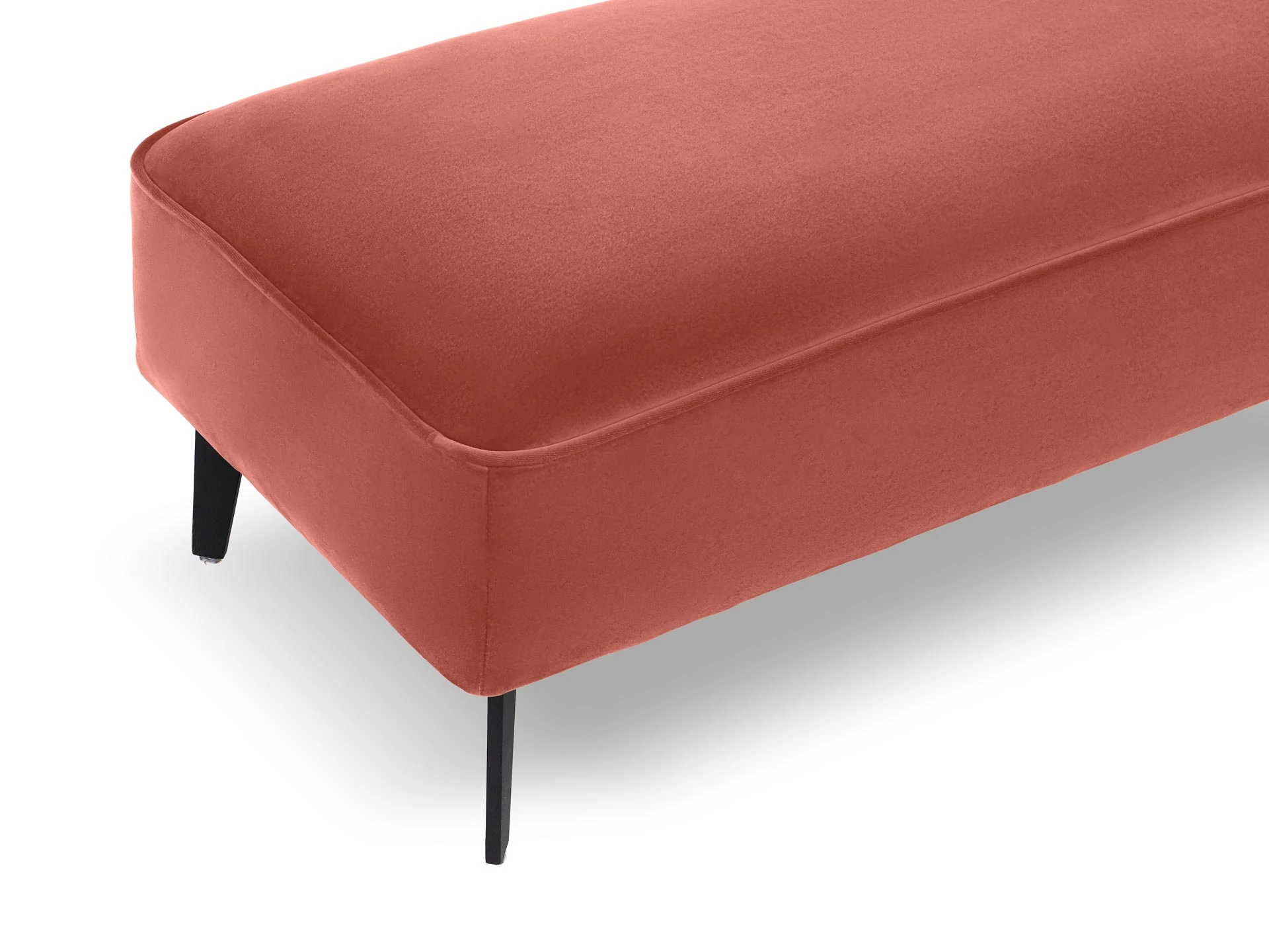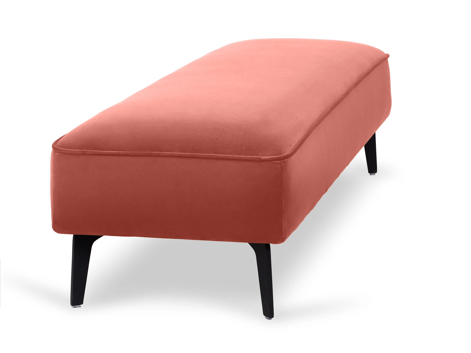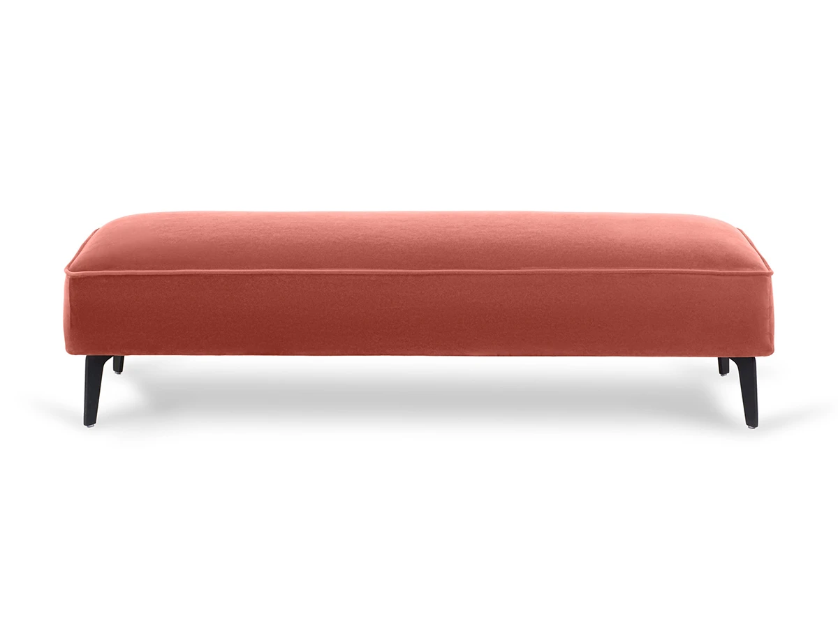 Лицевой чехол несъемный. В основании банкетки – металлические опоры высотой 150 мм, силиконовыми подпятниками, окрашены черной эмалью. В швы лицевого чехла по периметру вшит декоративный кант.