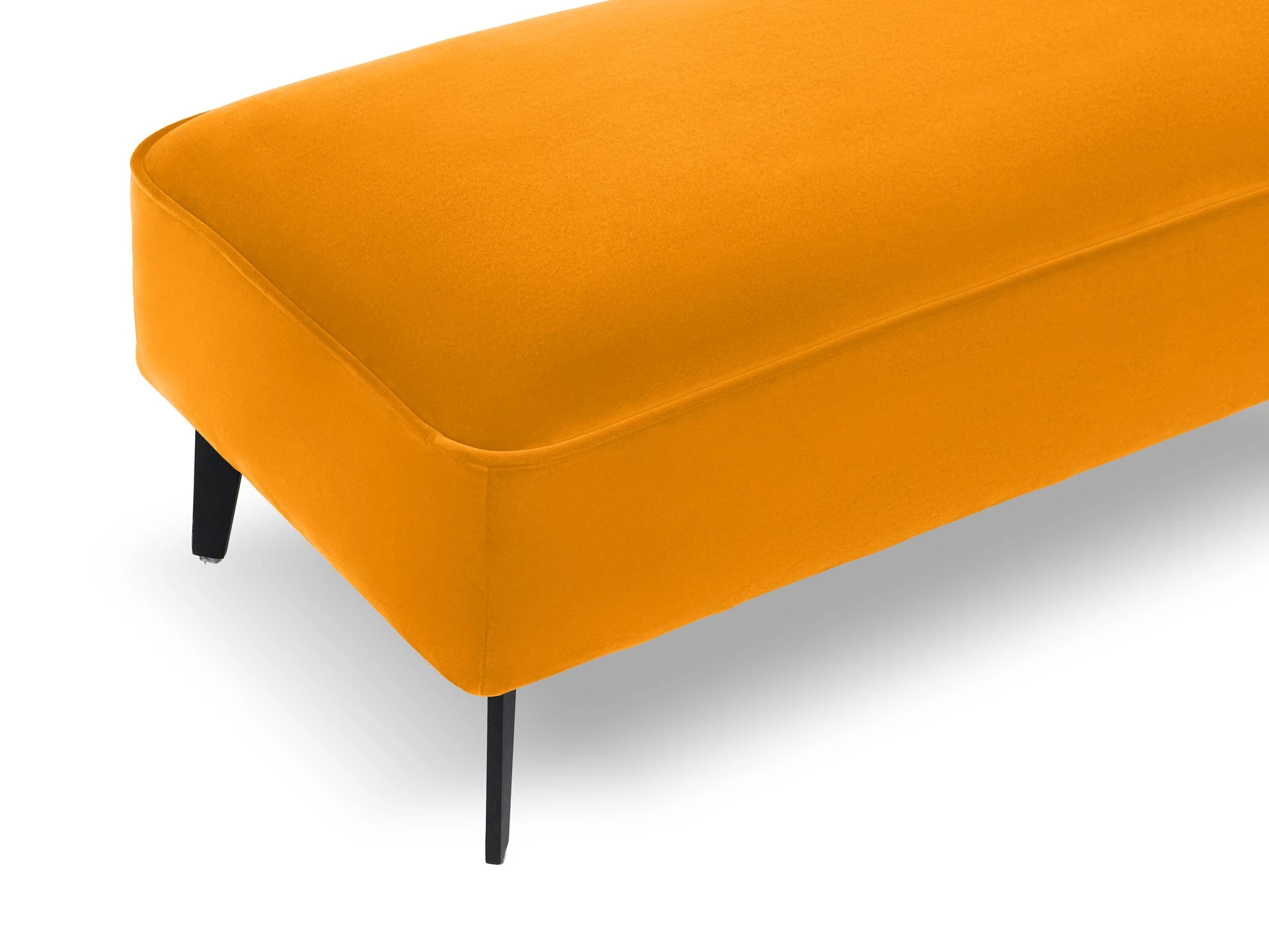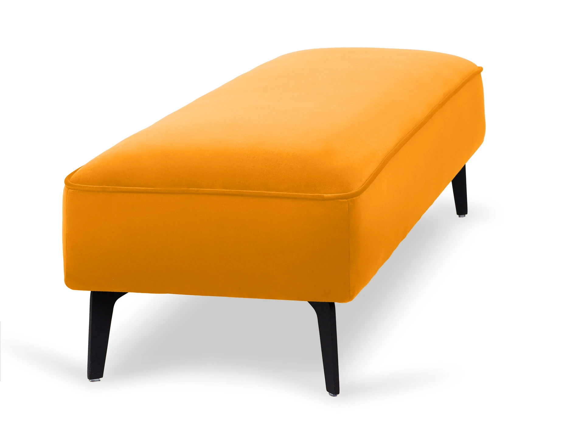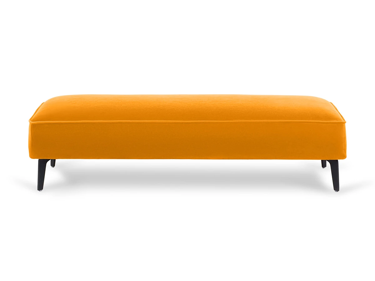 Лицевой чехол несъемный. В основании банкетки – металлические опоры высотой 150 мм, силиконовыми подпятниками, окрашены черной эмалью. В швы лицевого чехла по периметру вшит декоративный кант.