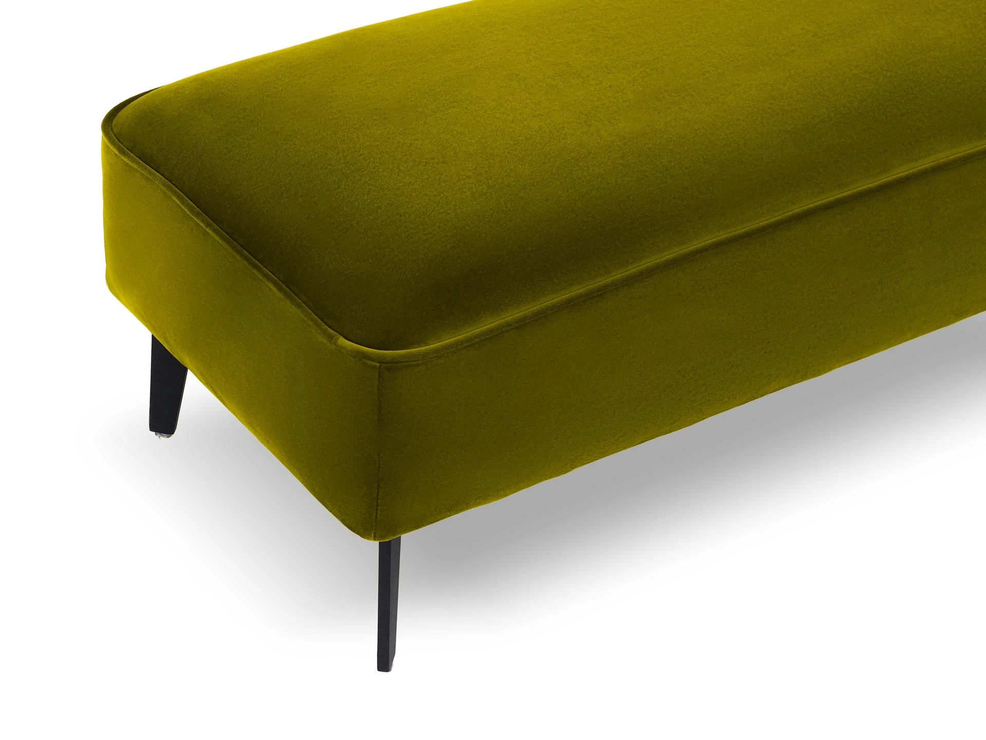 Лицевой чехол несъемный. В основании банкетки – металлические опоры высотой 150 мм, силиконовыми подпятниками, окрашены черной эмалью. В швы лицевого чехла по периметру вшит декоративный кант.