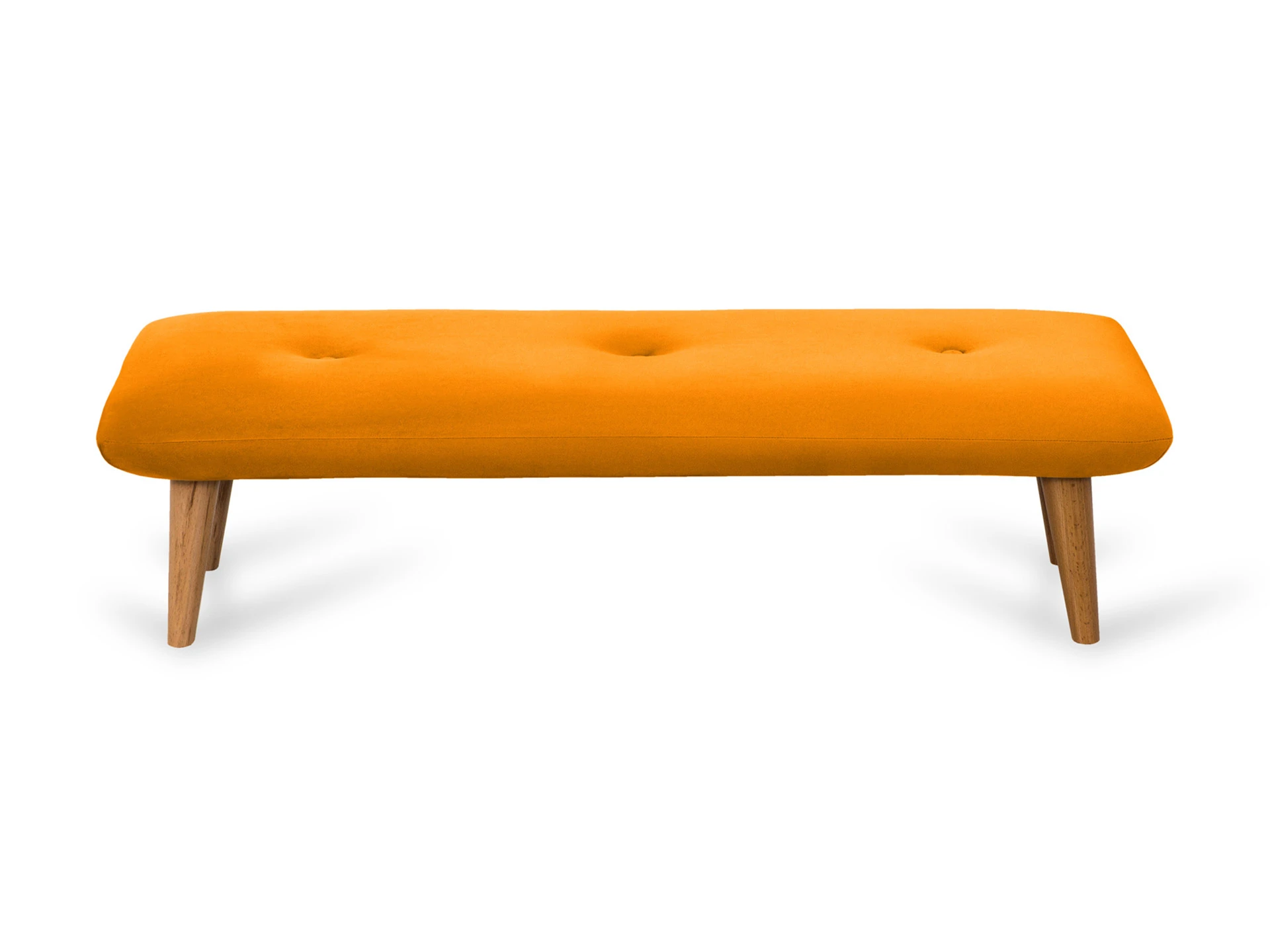 Банкетка Loa – красивая, простая внешне, с мягким сиденьем. Без спинки, так что подойдёт для установки как возле стены, так и в центре комнаты. Выполнена в современном стиле, прекрасно подойдёт для скандинавских и минималистичных интерьеров, лофт-пространств. Невысокие (200 мм) ножки изготовлены из массива бука, дополнены фетровыми подпятниками, благодаря которым они не царапают напольное покрытие. Каркас выполнен из брусков дерева хвойных пород. А для максимального комфорта сидящего мы добавили в качестве наполнителя пенополиуретан марки ST (22/36) и синтепон – упругие, удобные, не теряющие формы даже при активном использовании мебели. Чехол из приятной на ощупь фактурной ткани несъёмный, декорирован пуговицами. Ширина сиденья – 1200 мм, глубина – 420 мм. Общая высота банкетки вместе с опорами и сиденьем – 320 мм.
