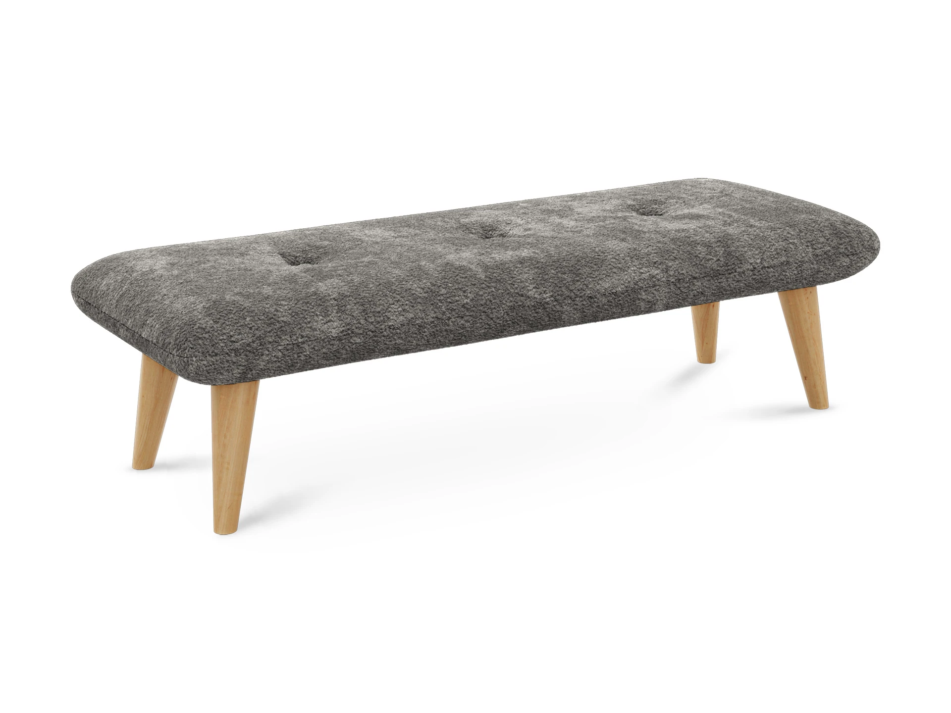 Банкетка Loa – красивая, простая внешне, с мягким сиденьем. Без спинки, так что подойдёт для установки как возле стены, так и в центре комнаты. Выполнена в современном стиле, прекрасно подойдёт для скандинавских и минималистичных интерьеров, лофт-пространств. Невысокие (200 мм) ножки изготовлены из массива бука, дополнены фетровыми подпятниками, благодаря которым они не царапают напольное покрытие. Каркас выполнен из брусков дерева хвойных пород. А для максимального комфорта сидящего мы добавили в качестве наполнителя пенополиуретан марки ST (22/36) и синтепон – упругие, удобные, не теряющие формы даже при активном использовании мебели. Чехол из приятной на ощупь фактурной ткани несъёмный, декорирован пуговицами. Ширина сиденья – 1200 мм, глубина – 420 мм. Общая высота банкетки вместе с опорами и сиденьем – 320 мм.