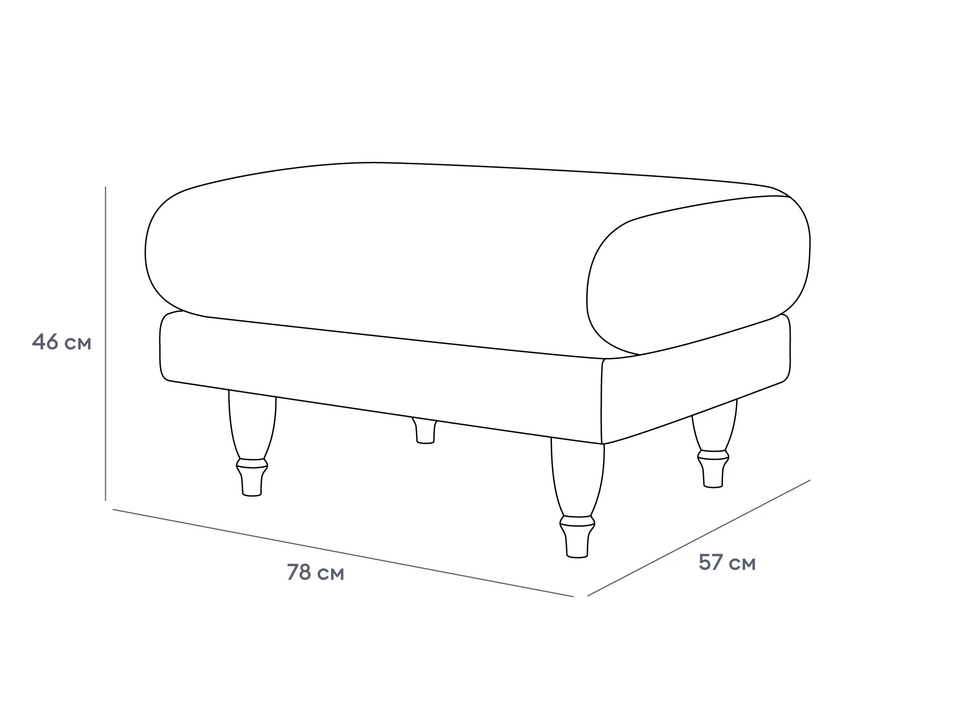 Классический прямоугольный мягкий пуф на деревянных ножках. Для гостиной, спальни, детской, прихожей. Выступает в качестве самостоятельного предмета мебели. Также прекрасно дополнит диван, кровать, кресло. Пуф мобильный, вы легко разместите его в любом уголке. Устойчивый, с комфортной высотой. Назначение – для сидения. Безопасный, так как имеет мягкие уголки, круглые ножки. Не отягощает пространство, точёные опоры создают эффект воздушности. |Основа каркаса - деревянные бруски хвойных пород. Максимальная нагрузка: 100 кг. Настил сиденья состоит из эластичных ремней, нескольких слоёв пенополиуретана, холлофайбера и синтепона. Материалы обеспечивают повышенную прочность и износоустойчивость изделия, делают его удобным для долгого сидения. Лицевой чехол основания несъемный, крепится к каркасу при помощи мебельных скоб, чехол подушки сиденья – съемный. Строчки швов сплошные и крепкие. Материал обивки – на ваш выбор.|Пуф Italia - практичный и оригинальный предмет мебели, со стильной модификацией и качественным исполнением. С ним вы создадите гармоничный и завершённый интерьер.