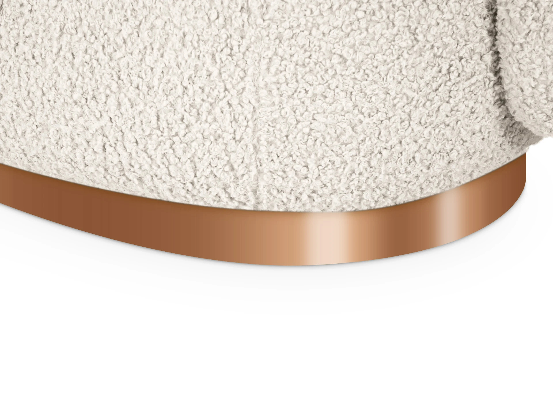 Коллекция диванов, кресел, кушеток, пуфов, дизайн которых сфокусирован на округлых мягких формах. Это и дань актуальным трендам, и стремление к позитивному «обволакивающему» пространству, располагающему к уютному отдыху. Смелые объемы, плавные линии привнесут в интерьер динамику, свежесть, пластичность. Закругленные элементы, фактурные обивки, естественные оттенки создают атмосферу комфорта и дружелюбного притяжения. Высокие спинки, плавно перетекающие в подлокотники, обеспечивают эргономичную поддержку и чувство безопасности, уединения. Эти великолепные модели подарят теплые тактильные ощущения. С помощью Lucca можно стильно оформить как домашнюю гостиную, спальню, детскую, так и креативное пространство, творческую студию, галерею, салон, лаундж-зону, бутик. Настоящее олицетворение гедонизма, красоты и элегантности. Предметы из коллекции гармонично комбинируются между собой, а также хорошо дружат с другими элементами разных стилистических направлений. Лицевой чехол изделий – несъемный. В основании изделия - металлическая лента из нержавеющей стали с разными цветами покрытий: матовое золото, медь, графит, никель. Опоры – пластиковые подпятники с фетровыми накладками.