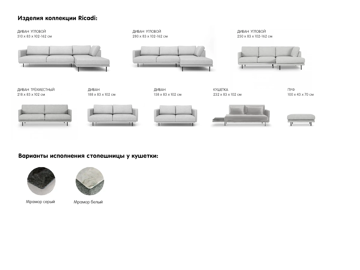 Дополнительная информация по мебели — Диван Ricadi угловой