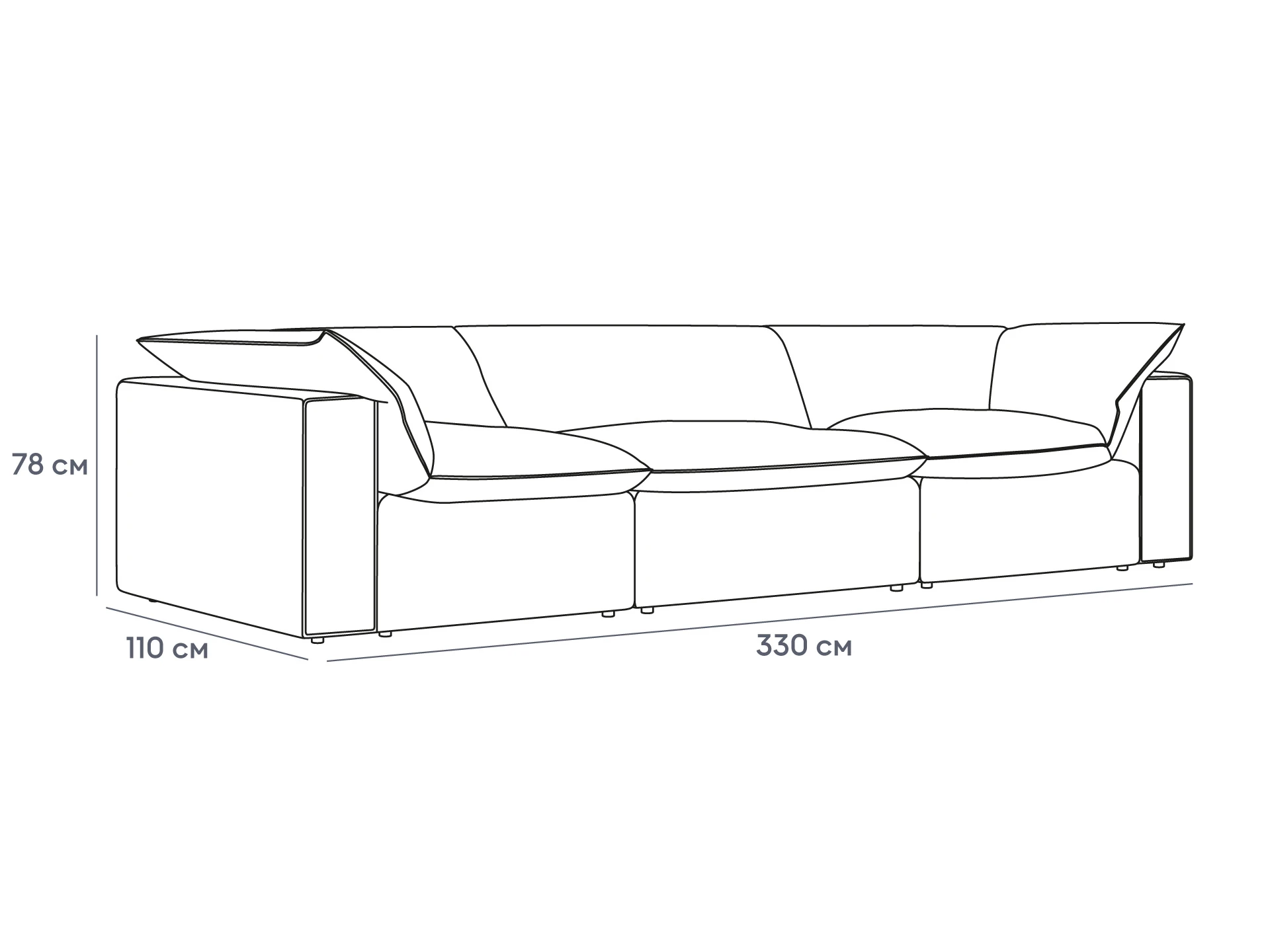Диван Rivoli — восхитительно мягкий диван, подушки которого имеют в составе пухоперьевой наполнитель. Материал, благодаря своей структуре, сохраняет тепло, обеспечивает максимально приятную на ощупь поверхность, а также воздухопроницаемость и упругость. Идеален для отдыха и релаксации. Rivoli — новая классика, выраженная в чистых линиях, гармонии элементов и высоком качестве материалов. В основе дизайна — софт-минимализм с гибкой универсальностью и выверенным сочетанием пропорций. Деликатное взаимодействие четких линий каркаса с мягкими подушками сиденья и спинки обеспечивает сбалансированный внешний вид, транслирующий непринужденную статусность, эффект «дорогой простоты». Поэтому диван гармонично подружится как со спокойными аранжировками, так и с парадными стилизациями. Можно организовать привлекательное место для отдыха большой компанией в просторной гостиной или камерную локацию на компактной площади. Диван Rivoli — не только превосходный уровень комфорта и эстетики вашего интерьера, но и ваша ежедневная тактильная радость! Диван «Rivoli» - модульный каркасный диван, состоящий из модулей, соединенных механизмом «крокодил». Каркас модулей монолитный, подлокотники не съемные. Каждый модуль комплектуется индивидуальной покровной подушкой, зафиксированной на карабины. Сидение дивана корпуса мягкое, дополнительную мягкость изделию придают верхние покровные мягкие перьевые подушки. Диван установлен на опору пластиковую со штырем – h 30мм. Лицевой чехол каркаса изделия - несъемный. Лицевой чехол покровных подушек- съемный, на молнии.