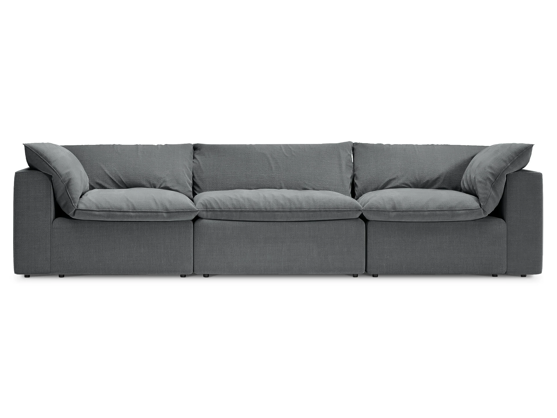 Диван Rivoli — восхитительно мягкий диван, подушки которого имеют в составе пухоперьевой наполнитель. Материал, благодаря своей структуре, сохраняет тепло, обеспечивает максимально приятную на ощупь поверхность, а также воздухопроницаемость и упругость. Идеален для отдыха и релаксации. Rivoli — новая классика, выраженная в чистых линиях, гармонии элементов и высоком качестве материалов. В основе дизайна — софт-минимализм с гибкой универсальностью и выверенным сочетанием пропорций. Деликатное взаимодействие четких линий каркаса с мягкими подушками сиденья и спинки обеспечивает сбалансированный внешний вид, транслирующий непринужденную статусность, эффект «дорогой простоты». Поэтому диван гармонично подружится как со спокойными аранжировками, так и с парадными стилизациями. Можно организовать привлекательное место для отдыха большой компанией в просторной гостиной или камерную локацию на компактной площади. Диван Rivoli — не только превосходный уровень комфорта и эстетики вашего интерьера, но и ваша ежедневная тактильная радость! Диван «Rivoli» - модульный каркасный диван, состоящий из модулей, соединенных механизмом «крокодил». Каркас модулей монолитный, подлокотники не съемные. Каждый модуль комплектуется индивидуальной покровной подушкой, зафиксированной на карабины. Сидение дивана корпуса мягкое, дополнительную мягкость изделию придают верхние покровные мягкие перьевые подушки. Диван установлен на опору пластиковую со штырем – h 30мм. Лицевой чехол каркаса изделия - несъемный. Лицевой чехол покровных подушек- съемный, на молнии.