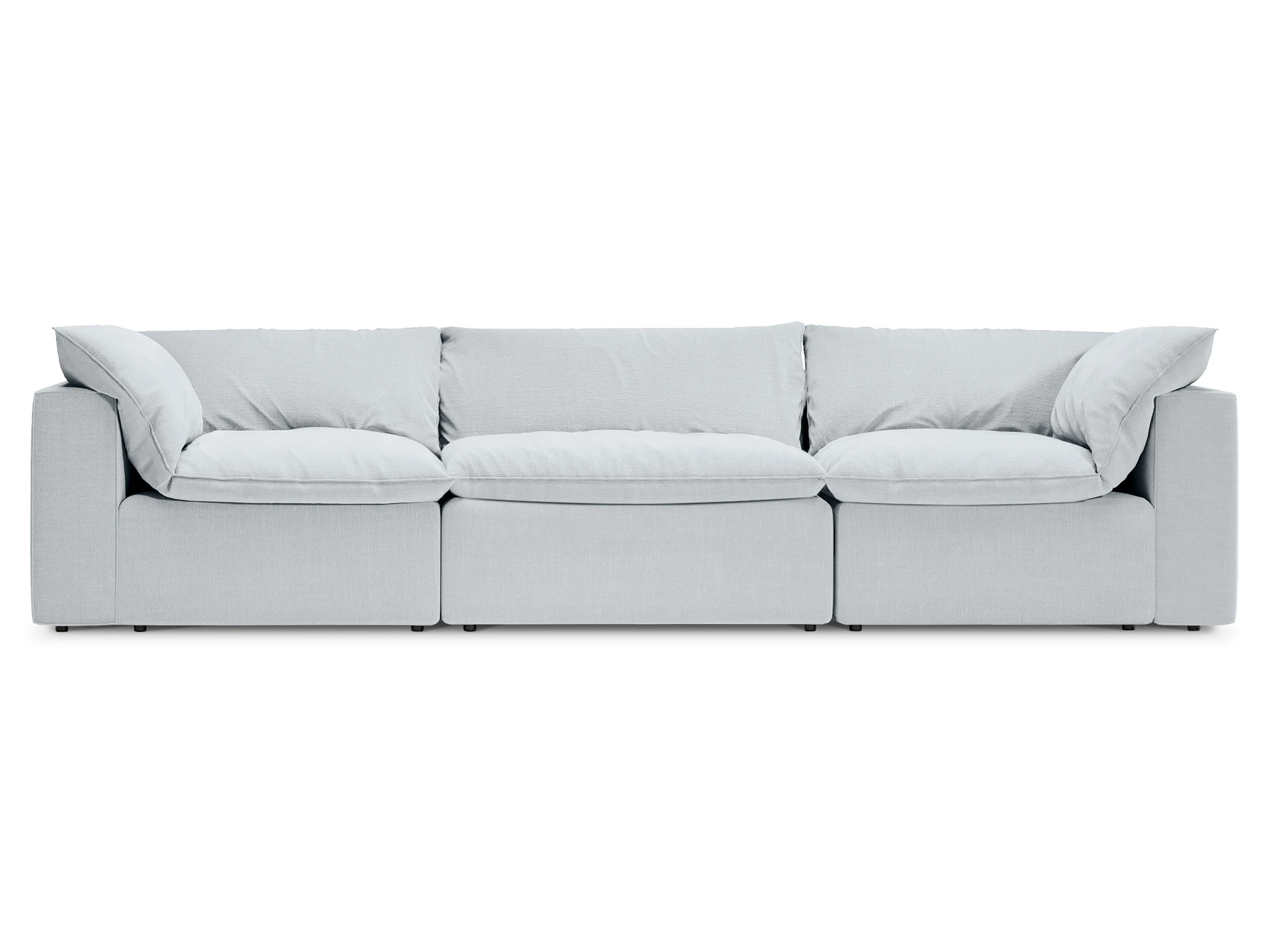 Диван Rivoli — восхитительно мягкий диван, подушки которого имеют в составе пухоперьевой наполнитель. Материал, благодаря своей структуре, сохраняет тепло, обеспечивает максимально приятную на ощупь поверхность, а также воздухопроницаемость и упругость. Идеален для отдыха и релаксации. Rivoli — новая классика, выраженная в чистых линиях, гармонии элементов и высоком качестве материалов. В основе дизайна — софт-минимализм с гибкой универсальностью и выверенным сочетанием пропорций. Деликатное взаимодействие четких линий каркаса с мягкими подушками сиденья и спинки обеспечивает сбалансированный внешний вид, транслирующий непринужденную статусность, эффект «дорогой простоты». Поэтому диван гармонично подружится как со спокойными аранжировками, так и с парадными стилизациями. Можно организовать привлекательное место для отдыха большой компанией в просторной гостиной или камерную локацию на компактной площади. Диван Rivoli — не только превосходный уровень комфорта и эстетики вашего интерьера, но и ваша ежедневная тактильная радость! Диван «Rivoli» - модульный каркасный диван, состоящий из модулей, соединенных механизмом «крокодил». Каркас модулей монолитный, подлокотники не съемные. Каждый модуль комплектуется индивидуальной покровной подушкой, зафиксированной на карабины. Сидение дивана корпуса мягкое, дополнительную мягкость изделию придают верхние покровные мягкие перьевые подушки. Диван установлен на опору пластиковую со штырем – h 30мм. Лицевой чехол каркаса изделия - несъемный. Лицевой чехол покровных подушек- съемный, на молнии.