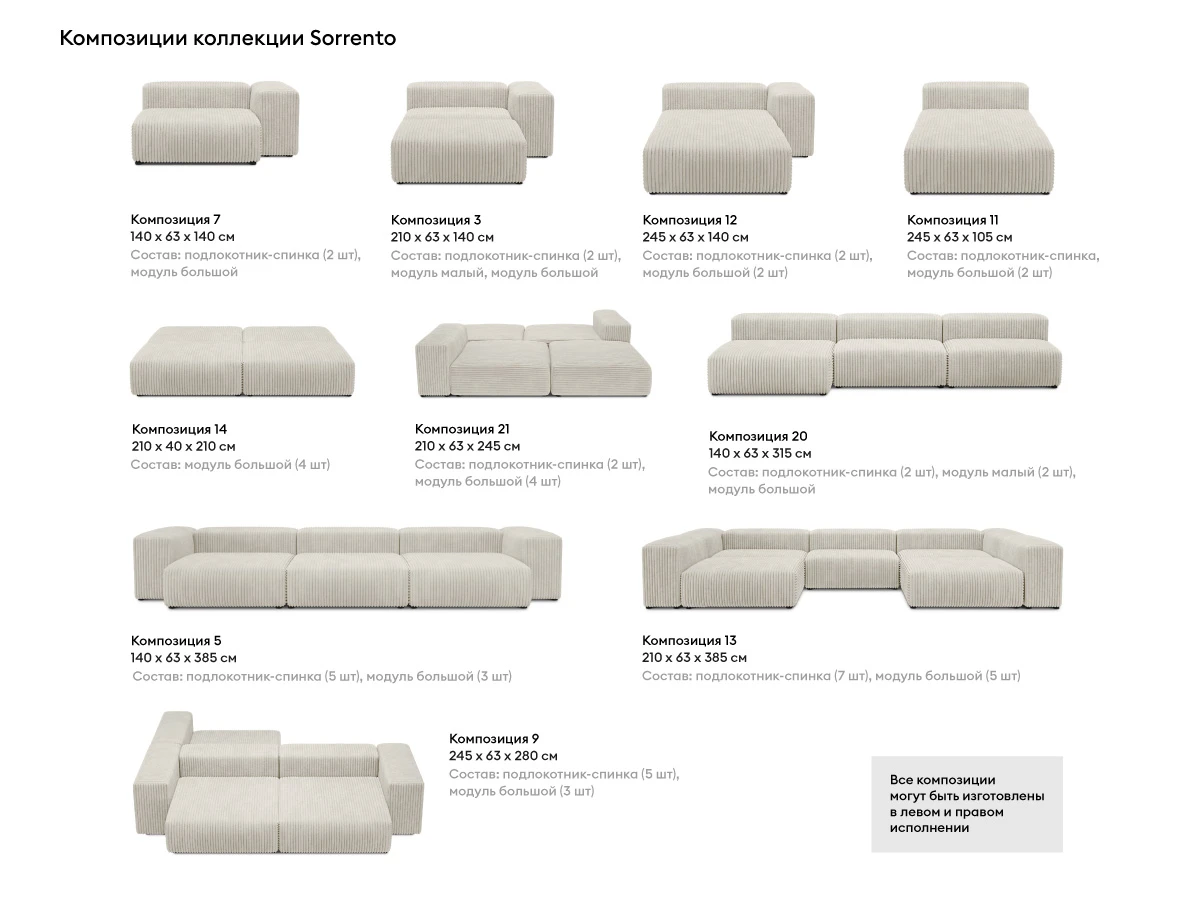 Дополнительная информация по мебели — Модульный диван Sorrento