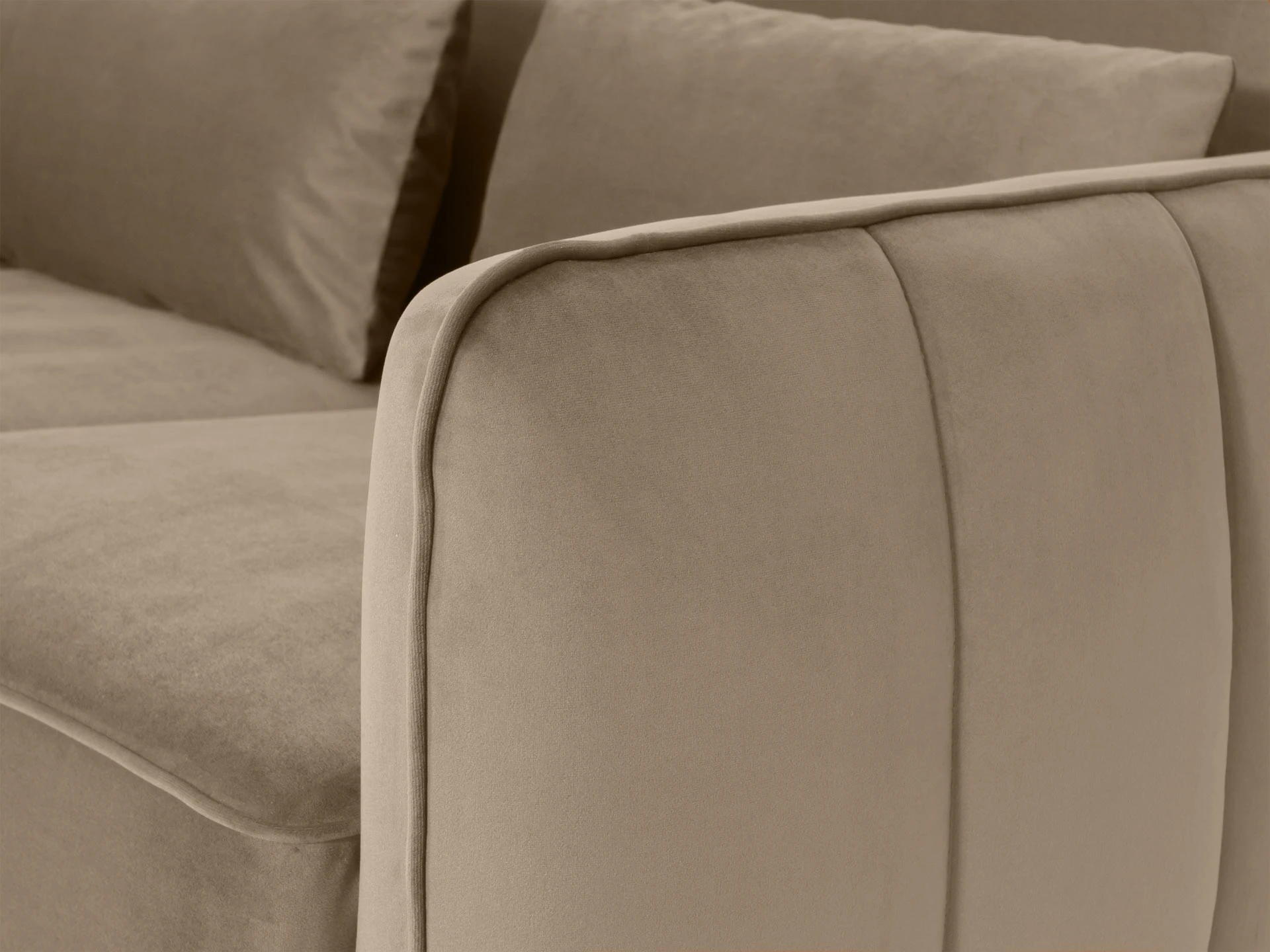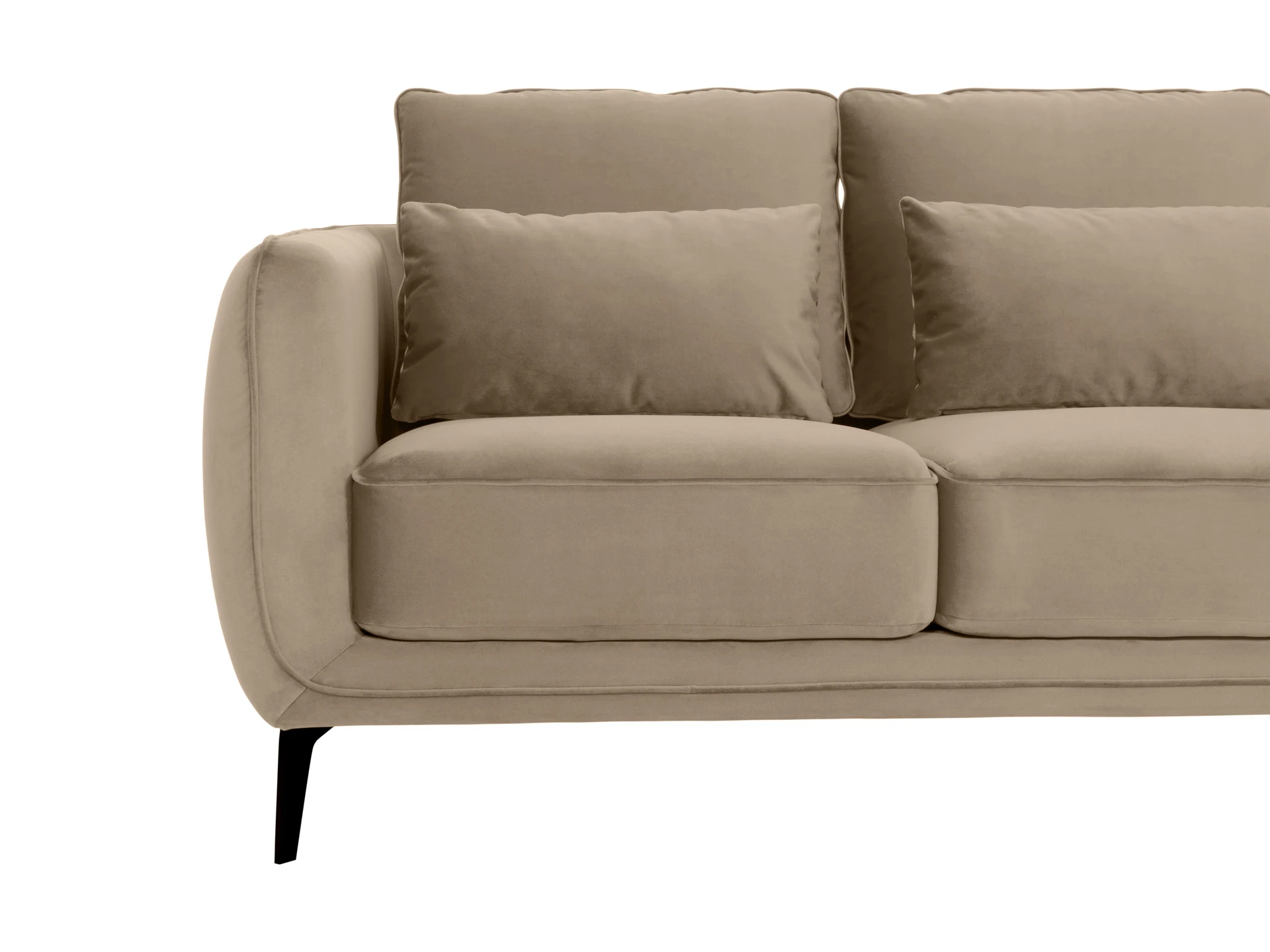 Элегантный диван с комфортной посадкой отличается безупречным стилем. Гармония лаконичных форм и мягких элементов. Сдержанный дизайн отлично впишется как в яркий интерьер, так и в помещение со строгой обстановкой. Спинка и подлокотники расположены на одном уровне. Такая конструкция создаёт границы уединённого пространства и отвечает за безмятежный отдых. Идеальным дополнением которого являются упругие подушки спинки.В основе каркаса – брус хвойных пород. Что обеспечивает надёжность и долгий срок службы дивана. За устойчивость отвечают металлические опоры высотой 150 мм, окрашенные эмалью. Имеет силиконовые подпятники, поэтому не оставят «следов» на напольном покрытии. Ножки смотрятся изящно. Благодаря им, легко делать уборку под основанием дивана. Диван укомплектован четырьмя подушками, которые входят. Подушки сиденья состоят из пружинного блока, войлочного настила, нескольких слоев пенополиуретана. Материал нового поколения гипоаллергенен и экологически безопасен. Его ячеистая структура обладает повышенной прочностью и «анатомической» памятью. Не проминается, моментально восстанавливает форму.Основной лицевой чехол несъёмный, чехлы подушек – съёмные. По периметру диван декорирован кантом, который придаёт завершённость его внешнему виду. Материал обивки – ткань с бархатной текстурой. Устойчива к истиранию, выпадению ворса. Смотрится благородно и подчёркивает уникальность модели. Диван Amsterdam – идеальное сочетание высокого качества материалов и эргономичности. Привнесёт в ваш дом чувство расслабления и уюта.