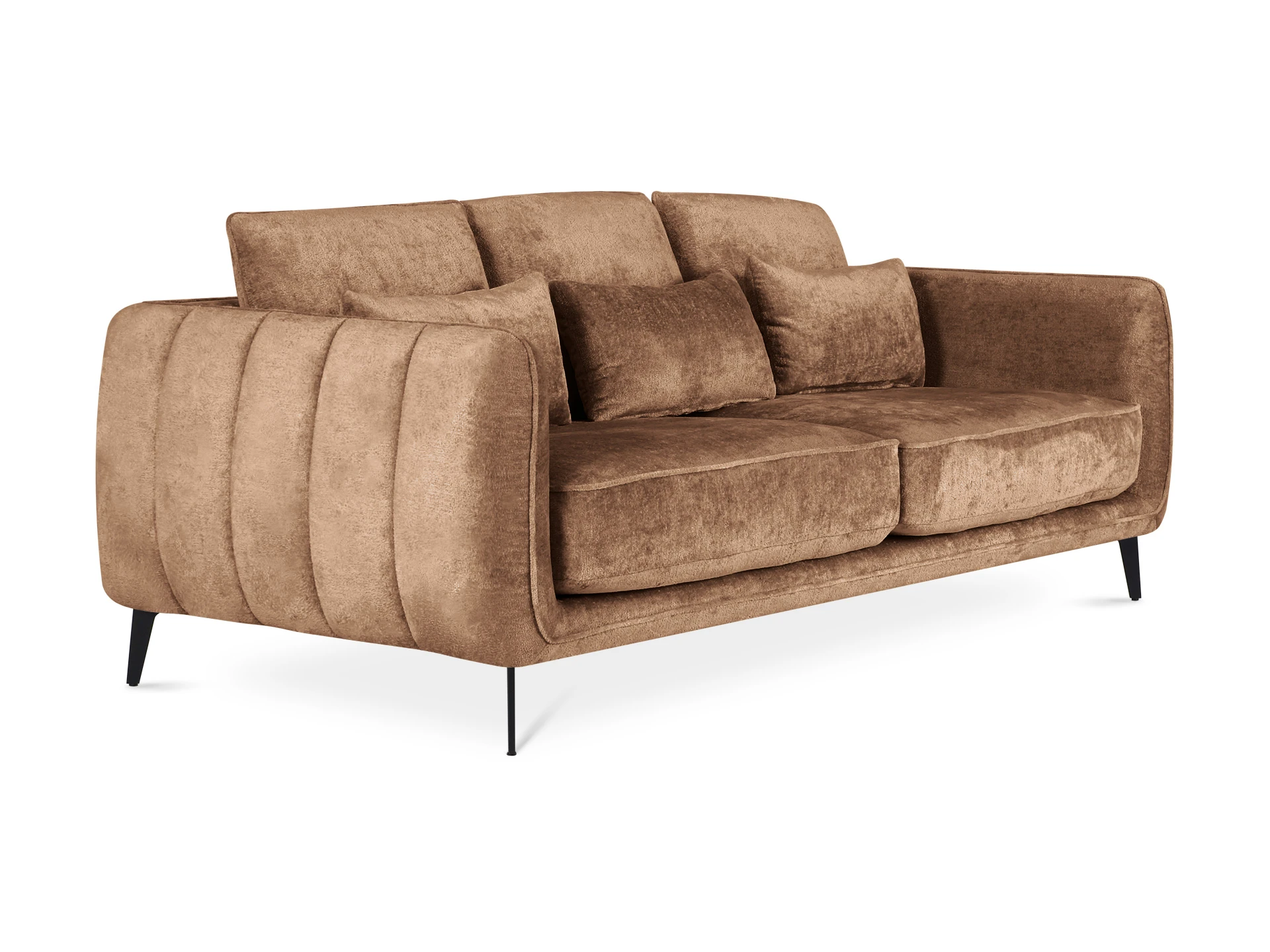 Элегантный диван с комфортной посадкой отличается безупречным стилем. Гармония лаконичных форм и мягких элементов. Сдержанный дизайн отлично впишется как в яркий интерьер, так и в помещение со строгой обстановкой. Спинка и подлокотники расположены на одном уровне. Такая конструкция создаёт границы уединённого пространства и отвечает за безмятежный отдых. Идеальным дополнением которого являются упругие подушки спинки.В основе каркаса – брус хвойных пород. Что обеспечивает надёжность и долгий срок службы дивана. За устойчивость отвечают металлические опоры высотой 150 мм, окрашенные эмалью. Диван укомплектован шестью подушками, которые входят. Имеют силиконовые подпятники, поэтому не оставят «следов» на напольном покрытии. Ножки смотрятся изящно. Благодаря им, легко делать уборку под основанием дивана.Подушки сиденья состоят из пружинного блока, войлочного настила, нескольких слоев пенополиуретана. Материал нового поколения гипоаллергенен и экологически безопасен. Его ячеистая структура обладает повышенной прочностью и «анатомической» памятью. Не проминается, моментально восстанавливает форму.Основной лицевой чехол несъёмный, чехлы подушек – съёмные. По периметру диван декорирован кантом, который придаёт завершённость его внешнему виду. Материал обивки – ткань с бархатной текстурой. Устойчива к истиранию, выпадению ворса. Смотрится благородно и подчёркивает уникальность модели. Диван Amsterdam – идеальное сочетание высокого качества материалов и эргономичности. Привнесёт в ваш дом чувство расслабления и уюта.