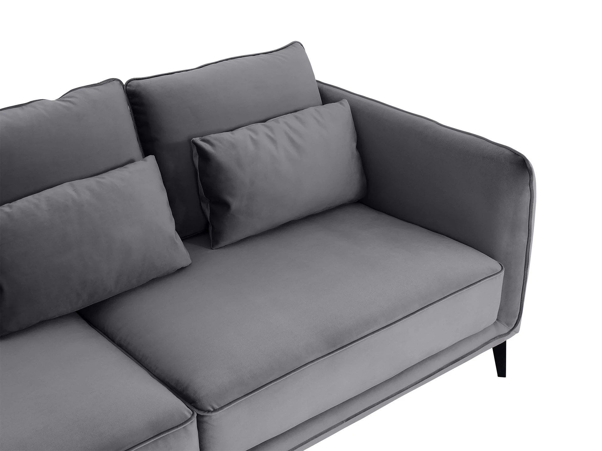 Элегантный диван с комфортной посадкой отличается безупречным стилем. Гармония лаконичных форм и мягких элементов. Сдержанный дизайн отлично впишется как в яркий интерьер, так и в помещение со строгой обстановкой. Спинка и подлокотники расположены на одном уровне. Такая конструкция создаёт границы уединённого пространства и отвечает за безмятежный отдых. Идеальным дополнением которого являются упругие подушки спинки.В основе каркаса – брус хвойных пород. Что обеспечивает надёжность и долгий срок службы дивана. За устойчивость отвечают металлические опоры высотой 150 мм, окрашенные эмалью. Диван укомплектован шестью подушками, которые входят. Имеют силиконовые подпятники, поэтому не оставят «следов» на напольном покрытии. Ножки смотрятся изящно. Благодаря им, легко делать уборку под основанием дивана.Подушки сиденья состоят из пружинного блока, войлочного настила, нескольких слоев пенополиуретана. Материал нового поколения гипоаллергенен и экологически безопасен. Его ячеистая структура обладает повышенной прочностью и «анатомической» памятью. Не проминается, моментально восстанавливает форму.Основной лицевой чехол несъёмный, чехлы подушек – съёмные. По периметру диван декорирован кантом, который придаёт завершённость его внешнему виду. Материал обивки – ткань с бархатной текстурой. Устойчива к истиранию, выпадению ворса. Смотрится благородно и подчёркивает уникальность модели. Диван Amsterdam – идеальное сочетание высокого качества материалов и эргономичности. Привнесёт в ваш дом чувство расслабления и уюта.