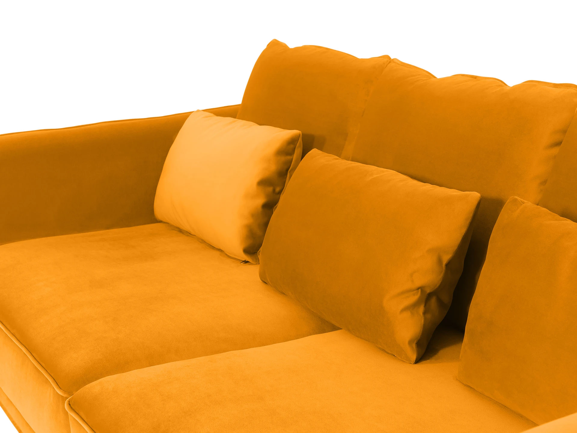 Элегантный диван с комфортной посадкой отличается безупречным стилем. Гармония лаконичных форм и мягких элементов. Сдержанный дизайн отлично впишется как в яркий интерьер, так и в помещение со строгой обстановкой. Спинка и подлокотники расположены на одном уровне. Такая конструкция создаёт границы уединённого пространства и отвечает за безмятежный отдых. Идеальным дополнением которого являются упругие подушки спинки.В основе каркаса – брус хвойных пород. Что обеспечивает надёжность и долгий срок службы дивана. За устойчивость отвечают металлические опоры высотой 150 мм, окрашенные эмалью. Диван укомплектован шестью подушками, которые входят. Имеют силиконовые подпятники, поэтому не оставят «следов» на напольном покрытии. Ножки смотрятся изящно. Благодаря им, легко делать уборку под основанием дивана.Подушки сиденья состоят из пружинного блока, войлочного настила, нескольких слоев пенополиуретана. Материал нового поколения гипоаллергенен и экологически безопасен. Его ячеистая структура обладает повышенной прочностью и «анатомической» памятью. Не проминается, моментально восстанавливает форму.Основной лицевой чехол несъёмный, чехлы подушек – съёмные. По периметру диван декорирован кантом, который придаёт завершённость его внешнему виду. Материал обивки – ткань с бархатной текстурой. Устойчива к истиранию, выпадению ворса. Смотрится благородно и подчёркивает уникальность модели. Диван Amsterdam – идеальное сочетание высокого качества материалов и эргономичности. Привнесёт в ваш дом чувство расслабления и уюта.
