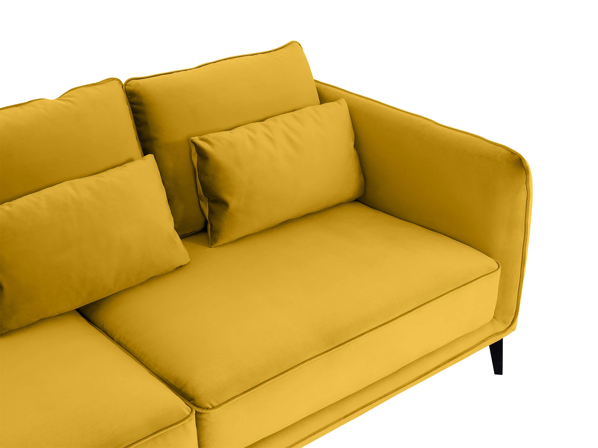 Элегантный диван с комфортной посадкой отличается безупречным стилем. Гармония лаконичных форм и мягких элементов. Сдержанный дизайн отлично впишется как в яркий интерьер, так и в помещение со строгой обстановкой. Спинка и подлокотники расположены на одном уровне. Такая конструкция создаёт границы уединённого пространства и отвечает за безмятежный отдых. Идеальным дополнением которого являются упругие подушки спинки.В основе каркаса – брус хвойных пород. Что обеспечивает надёжность и долгий срок службы дивана. За устойчивость отвечают металлические опоры высотой 150 мм, окрашенные эмалью. Диван укомплектован шестью подушками, которые входят. Имеют силиконовые подпятники, поэтому не оставят «следов» на напольном покрытии. Ножки смотрятся изящно. Благодаря им, легко делать уборку под основанием дивана.Подушки сиденья состоят из пружинного блока, войлочного настила, нескольких слоев пенополиуретана. Материал нового поколения гипоаллергенен и экологически безопасен. Его ячеистая структура обладает повышенной прочностью и «анатомической» памятью. Не проминается, моментально восстанавливает форму.Основной лицевой чехол несъёмный, чехлы подушек – съёмные. По периметру диван декорирован кантом, который придаёт завершённость его внешнему виду. Материал обивки – ткань с бархатной текстурой. Устойчива к истиранию, выпадению ворса. Смотрится благородно и подчёркивает уникальность модели. Диван Amsterdam – идеальное сочетание высокого качества материалов и эргономичности. Привнесёт в ваш дом чувство расслабления и уюта.