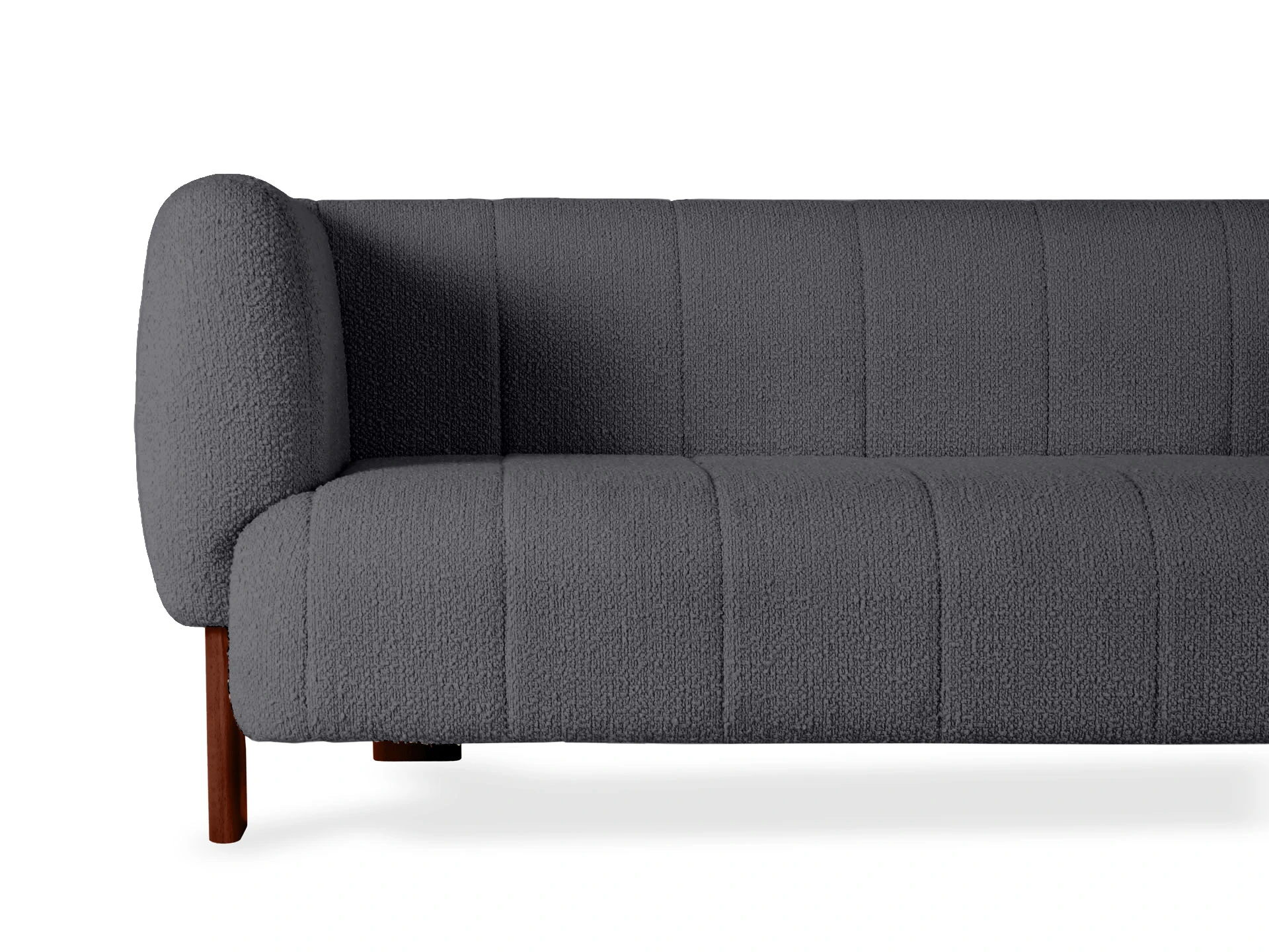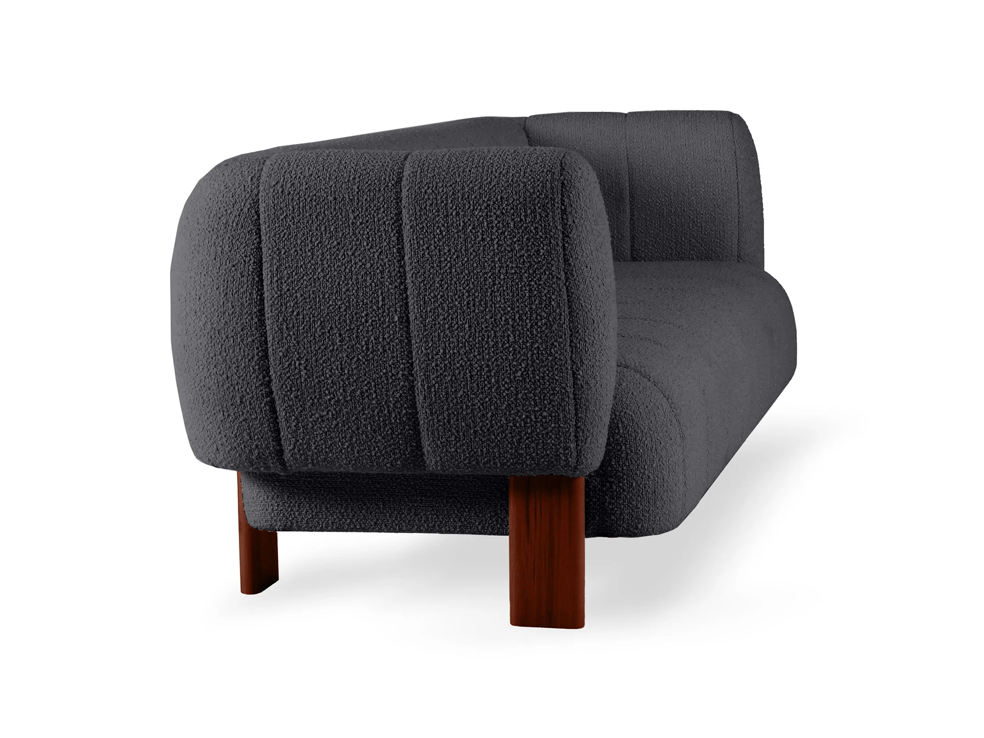 Диван Cassis — привлекательная минималистичная модель с объёмным силуэтом. Индивидуальность заключается в высоких подлокотниках, расположенных на одном уровне со спинкой. Такая конфигурация поддерживает большее ощущение комфорта, уединенности. Также поверхность дивана украшена отделочной вертикальной строчкой. «Стёжка» создает стильные геометрические акценты, добавляет плавности, округлых очертаний. И обеспечивает равномерное натяжение ткани по всему периметру. Это увеличивает износоустойчивость, срок службы материалов. Основательность и надежность кроется в каркасе из бруса хвойных пород. Сиденье состоит из пружин-змеек, нескольких слоев пенополиуретана и войлока. Материалы не деформируются, мгновенно восстанавливают форму. Обеспечат вам безмятежный отдых на идеальной поверхности. В меру упругой и мягкой. Опоры выполнены из бука. Упрощают уборку и поддерживают визуальную легкость конструкции. Диван Cassis легко адаптируется для различных пространств: как домашних, так и общественных. Вы можете выбрать цвет обивки и опор, создав индивидуальный дизайн, который гармонично впишется в ваш интерьер. Лицевой чехол изделия – простеганный, несъемный. Опоры выполнены из массива бука, представлены в трех цветах: светлый, черный, орех. Подпятники – пластиковые с фетровыми накладками.